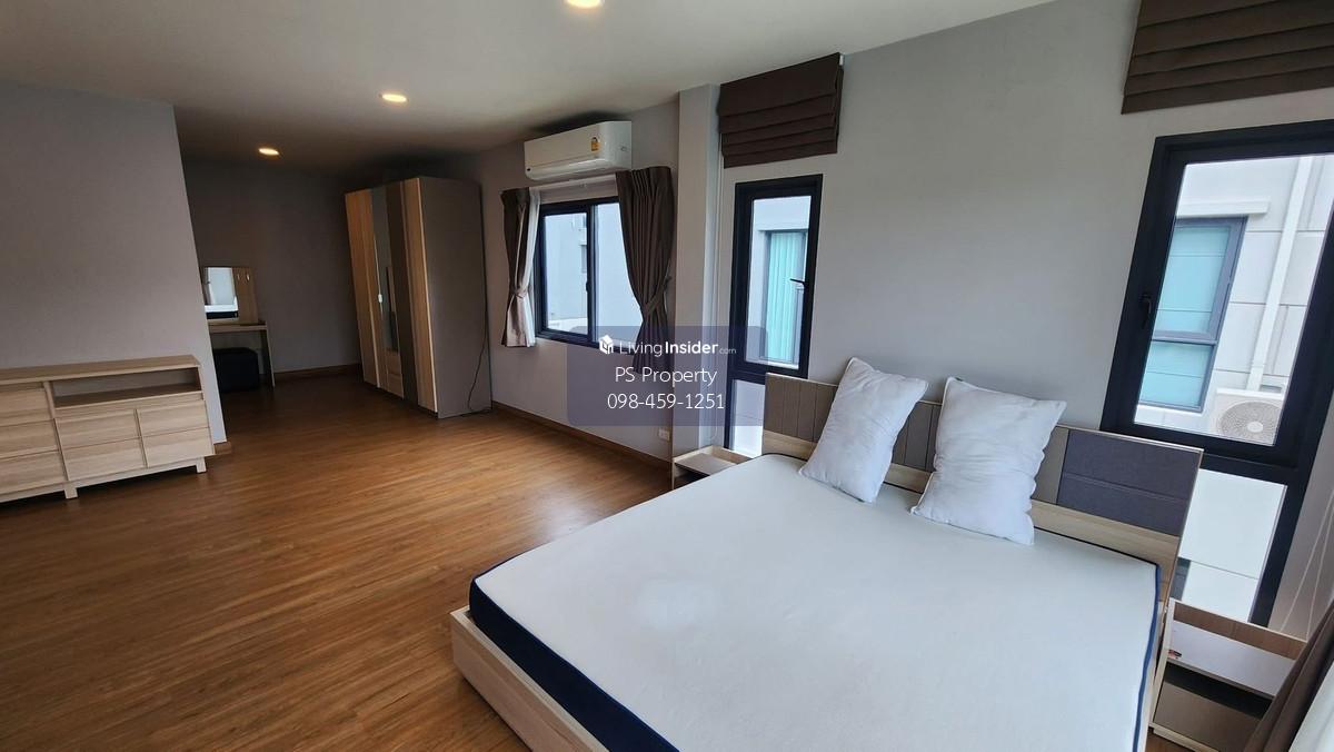 Price: 80,000 baht / month Usable area: 190 sq.m. Area: 50.8 sq.w. Floor: 2 4 bedrooms / 4 bathrooms / 1 living room / 2 parking spaces Amenities: CCTV, key card Access, fitness center, swimming pool, 24/7 security guard, co-working area, common area. Furniture included: TV, microwave, sofa, refrigerator, bed, air conditioner, water heater, Smoke Dispenser, shelf, TV cabinet, wardrobe, center table. House for rent! convenient transportation, near BTS, near the expressway, fully furnished Ready for viewing. Interested please contact: 📞Call center: Contact number 📱Hotline: Contact number 📲Whatsapp: Contact number 🖱️Line: @psproperty https://lin.ee/d8bpOBs Website: https://www.ps-property.co.th/