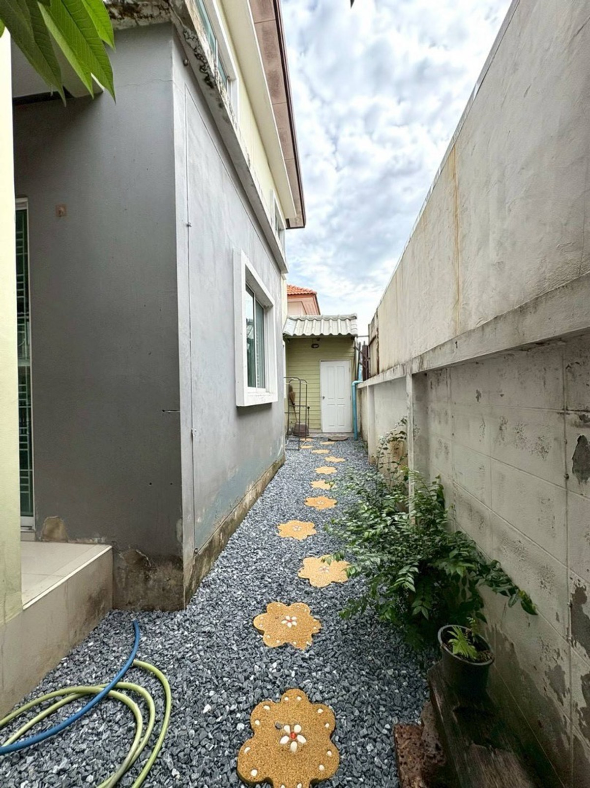 For rent, Bua Thong Thani Phase 17, corner house, has a shady side area, pets allowed , area 25 square wah, 3 bedrooms, 2 bathrooms , back on the edge. There is a shady area on the side where trees can be planted. Can raise animals Addition of kitchen and garage Can park 2 cars (in the house, 1 in front of the house, 1) There is a water pump + water reserve tank Curtains in every room 1 air conditioner in the large room Accepts 1-2 pets ✅ Dog 🐶 (Please dont bark too much) ✅ Little cat 😻 #Convenient transportation, there is a van queue. Siriraj, Chatuchak Ton Sai is in the village. There is a motorcycle taxi in front of the village Nearby places -Makro Bang Bua Thong -Lotus Bang Kruai-Sai Noi -Krungthai Hospital Western -Sombat Buri Market -Bang Bua Thong Market For rent 12,000 baht/month Minimum 1 year contract First entry, pay 1 month in advance, 2 month warranty Sell for 2.49 million (free transfer) 📞 Interested in making an appointment to see the place / request more information 📲 Line official : @dyaproperty Hun (Agent) call Contact number Dya (Agent) call Contact number