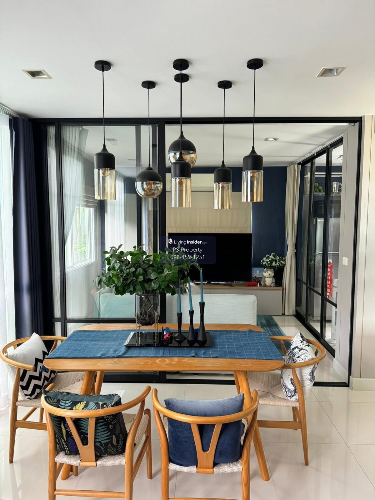 Price: 50,000 baht / month Usable area: 151 sq.m. Area: 42 sq.w. Floor: 2 3 bedrooms / 3 bathrooms / 1 living room / 2 parking spaces Amenities: CCTV, key card Access, fitness center, swimming pool, 24/7 security guard, co-working area, common area. Furniture included: TV, microwave, sofa, refrigerator, bed, air conditioner, water heater, Smoke Dispenser, shelf, TV cabinet, wardrobe, center table. House for rent! convenient transportation, near BTS, near the expressway, fully furnished Ready for viewing. Interested please contact: 📞Call center: Contact number 📱Hotline: Contact number 📲Whatsapp: Contact number 🖱️Line: @psproperty https://lin.ee/d8bpOBs Website: https://www.ps-property.co.th/