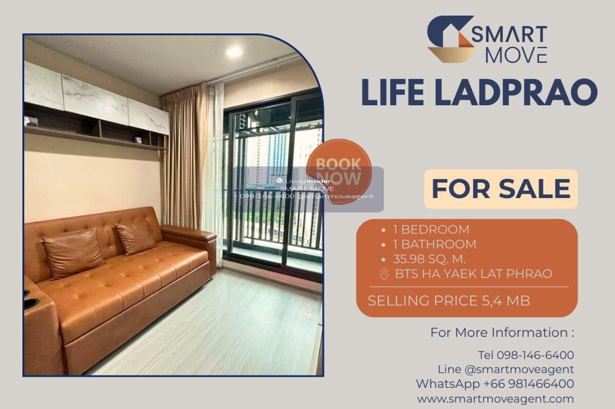 🔥 For Sale !! high floor 15++, East Facing!! 🔥 Code C Contact number..........Life Ladprao, 1 bedroom, 1 bathroom, furnished, Special Deal!!📣📣 @BTS Ha Yaek Lat Phrao🚌 Features & Description  - 1 bedroom 1 bathroom - usable area 35.98 Sq. M. - nice room - high floor 15++ - East Facing - nice decorations - fully furnished with all appliances  - selling price 5,400,000 THB The best deal guaranteed 💯💯 ……………………………………………………………………………………………………………… Viewing highly recommended.  Contact Smart Move today for more details or to arrange a viewing. 📞Tel: Contact number 📲Line ID: @smartmoveagent (https://lin.ee/JoQEx02) ✅Whatsapp: Contact number 🌐FB: https://www.facebook.com/SMARTMOVEAGENT 📩Email: Contact email ………………………………………………………………..………….………….…………. Smart Move accepts deposits, sales, rentals of condos along the BTS and MRT lines. ………………………………………………………………..………….………….…………. #SMARTMOVE #SMARTCHOICE #SMARTCONDO #SMARTAGENT #Rare room #Cheaper price #Guaranteed to be the cheapest #Condo next to the skytrain #Room for rent #condoforrent #Room for sale #condoforsale #nice condo #room for rent #rentcondo #sale room #salecondo #expat #Sukhumvit #Ratchada #Phayathai #Sathorn #Sukhumvit #Ratchada #Phayathai #Sathorn #condonearbts #condonearmrt #bangkok #condo #สifeladprao #btshayaeklatphrao
