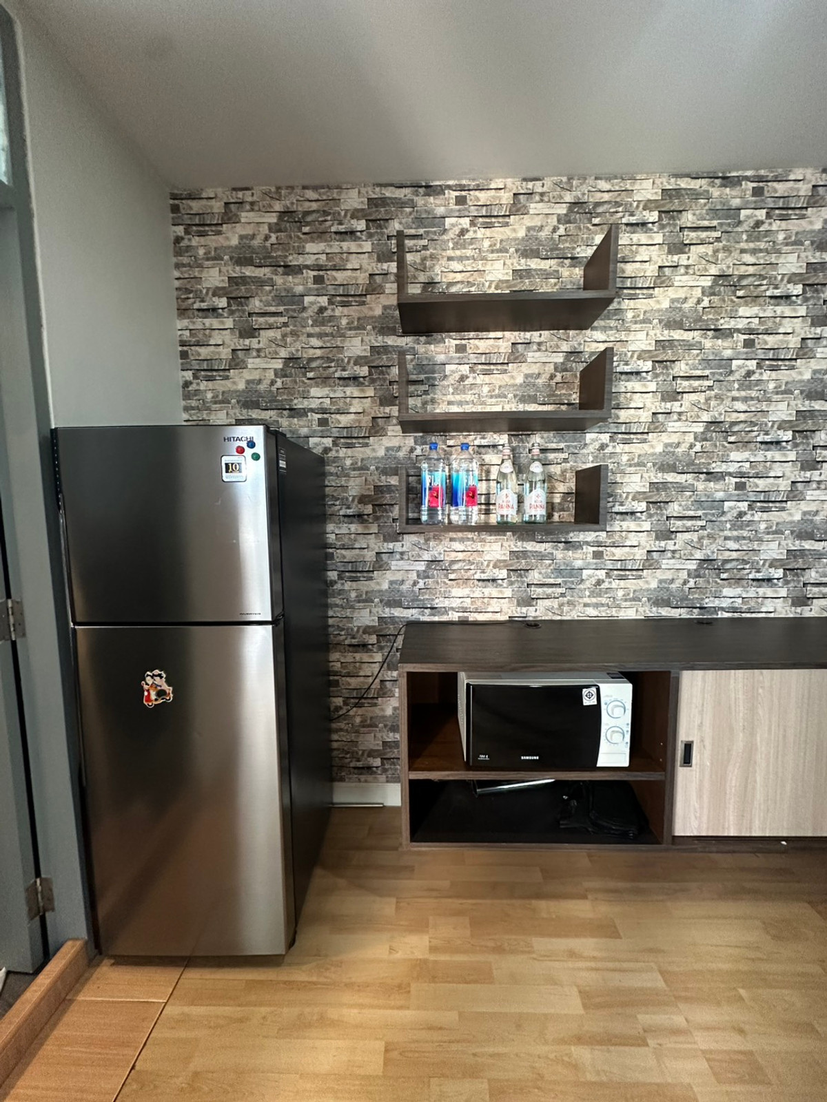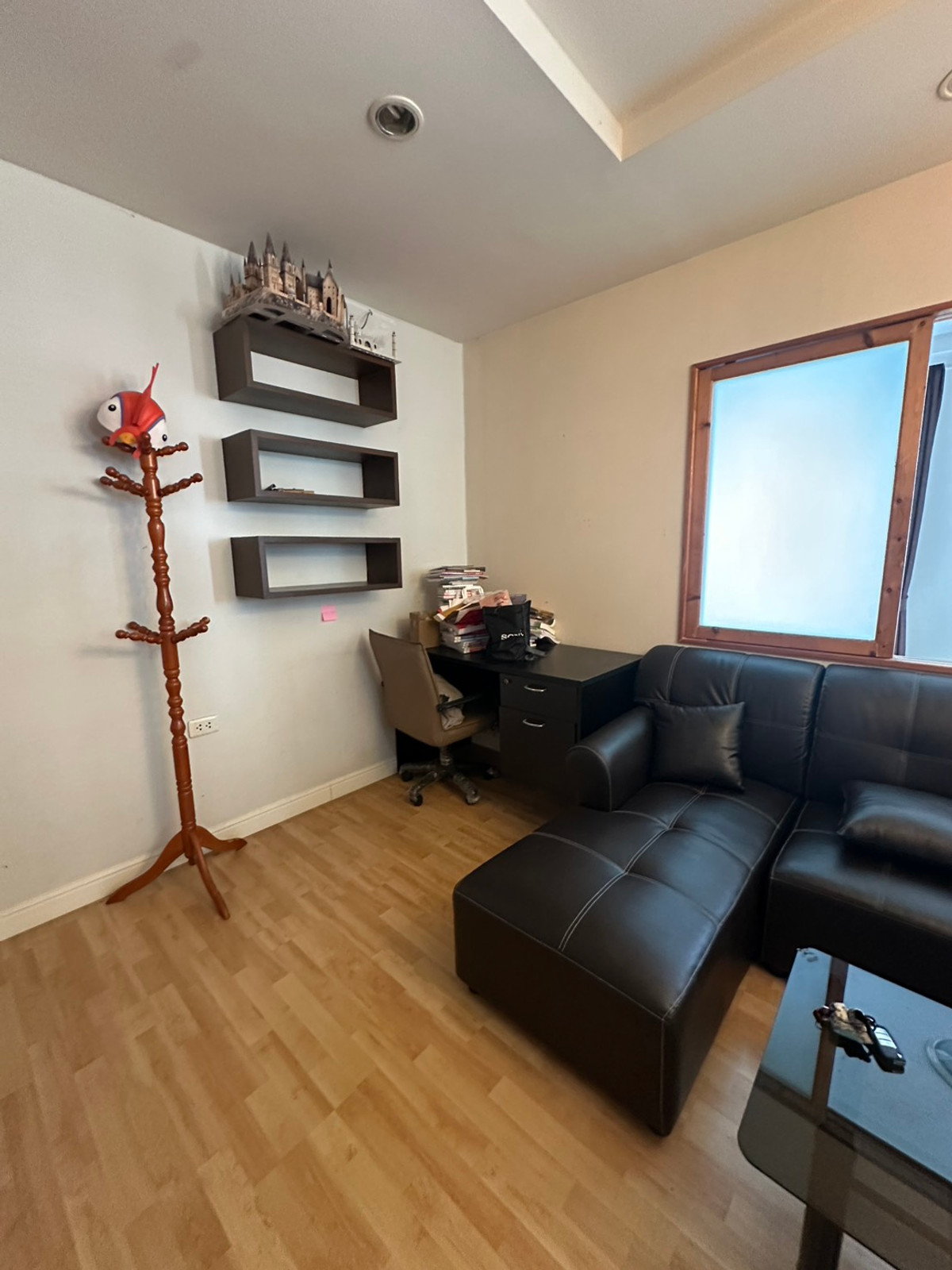 - working station corner, a comfortable work desk corner - floating shelves to keep books and things neat