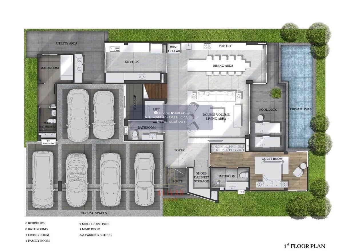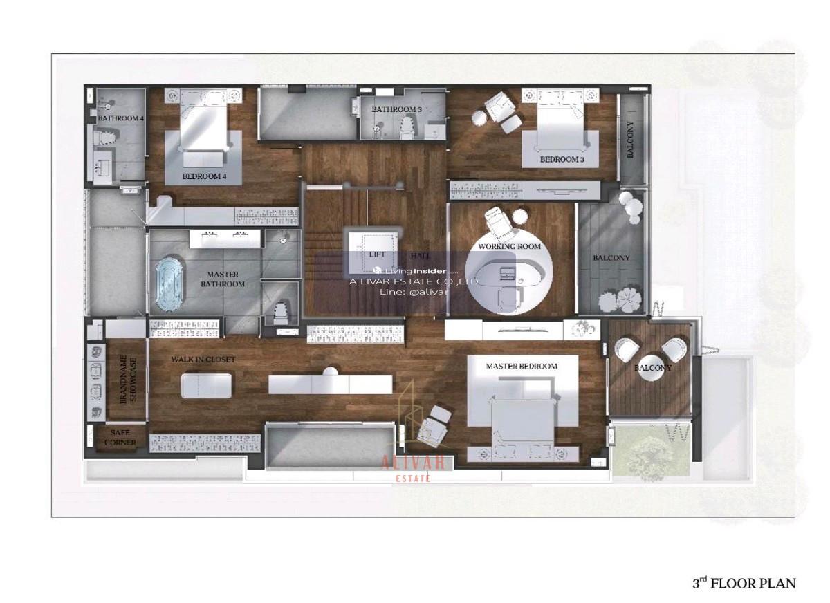 RH120425 For rent, new detached house, 3 floors, 8 bedrooms at THE HONOR Yothinpattana with Private Pool Villa Rent 650,000 baht/month Details: - Land 130 sq m. - Usable area 800 sq m - 8 bedrooms (2 Master Bed rooms with bathtub and 6 large bedrooms) - 7 bathrooms, 5 living rooms, Thai kitchen, Western kitchen - 1 air-conditioned maids room with separate bathroom - with elevator and large private swimming pool - fully furnished - South house- 6 parking spaces Nearby important places: Central Festival East Ville/ The Crystal Ekkamai-Ramindra - Chic Republic/ Crystal Design Center/ KIS International School - NIVA American International School/ Singapore International School of Bangkok Location : Soi Pho Kaew 3, Intersection 12, Khlong Chan Subdistrict, Bang Kapi District, Bangkok 10240 Contact Line: @alivar click https://line.me/R/ti/p/@180acmsu CALL : Contact number Email : Contact email Wechat : alivar2442 A LIVAR ESTATE CO.,LTD. Accepting consignment for sale-rent real estate