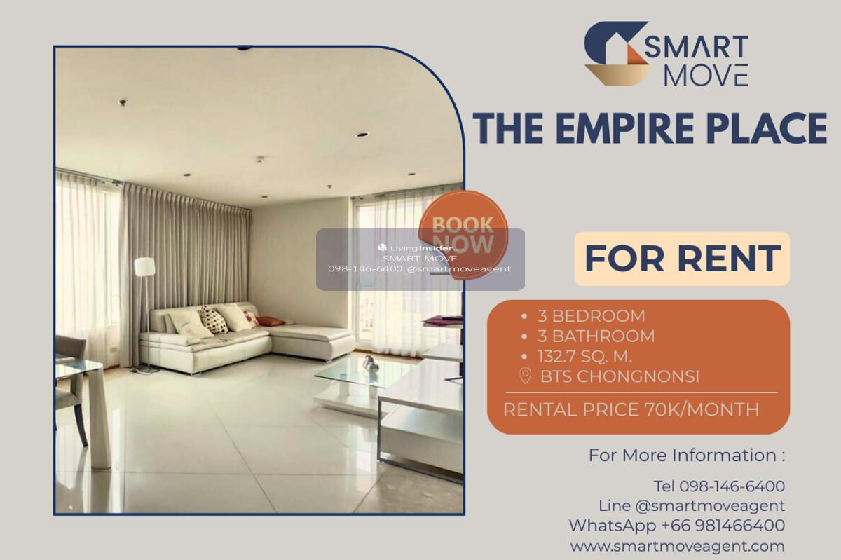 🔥 For Rent !! Wide living room, high floor 29++, Sathorn city view!! 🔥 Code C Contact number..........The Empire Place, 3 bedroom, 3 bathroom, furnished, ready to move in📣📣 @BTS Chongnonsi🚌 Features & Description  - 3 bedroom 3 bathroom - usable area 132.7 Sq. M. - Sathorn city view - big size - nice room - Wide living room - high floor 29++ - nice decorations - fully furnished with all appliances  - ready to move in - rental price 70,000 THB  per month The best deal guaranteed 💯💯 ……………………………………………………………………………………………………………… Viewing highly recommended.  Contact Smart Move today for more details or to arrange a viewing. 📞Tel: Contact number 📲Line ID: @smartmoveagent (https://lin.ee/JoQEx02) ✅Whatsapp: Contact number 🌐FB: https://www.facebook.com/SMARTMOVEAGENT 📩Email: Contact email ………………………………………………………………..………….………….…………. Smart Move accepts deposits, sales, rentals of condos along the BTS and MRT lines. ………………………………………………………………..………….………….…………. #SMARTMOVE #SMARTCHOICE #SMARTCONDO #SMARTAGENT #Rare room #Cheaper price #Guaranteed to be the cheapest #Condo next to the skytrain #Room for rent #condoforrent #Room for sale #condoforsale #nice condo #room for rent #rentcondo #sale room #salecondo #expat #Sukhumvit #Ratchada #Phayathai #Sathorn #Sukhumvit #Ratchada #Phayathai #Sathorn #condonearbts #condonearmrt #bangkok #condo #theempireplace #btschongnonsi