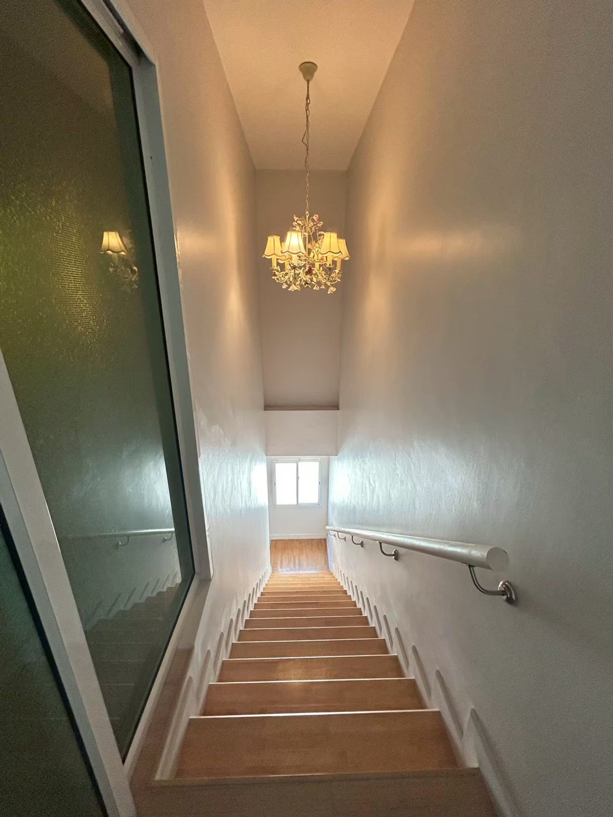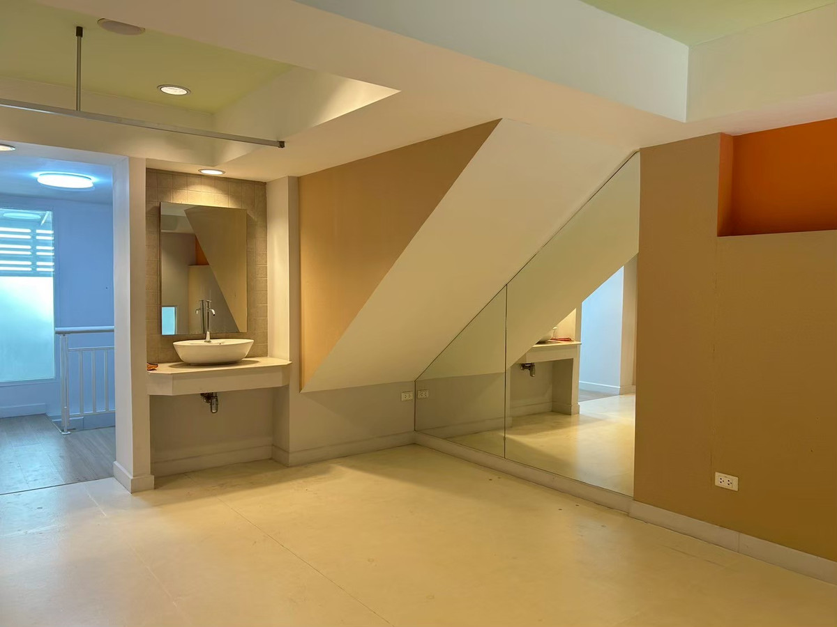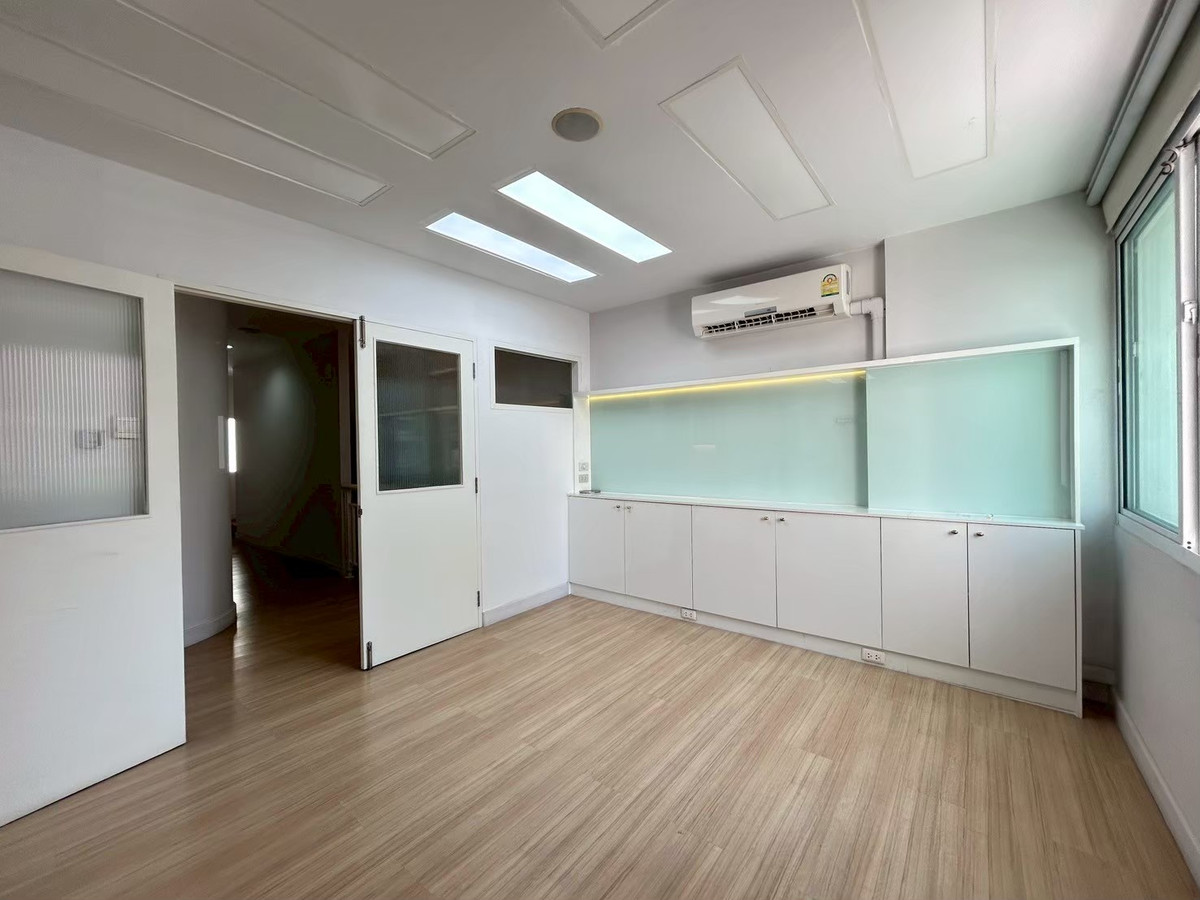 Commercial building for sale, 3 and a half floors, prime location, Thanommit Market, Watcharaphon , area 16.5 square meters , width 4 meters, depth 16.5 meters , 3 bedrooms, 3 bathrooms , 8 air conditioners , beautiful room. Very good location for rent for business. and living for rent 30,000 baht/month