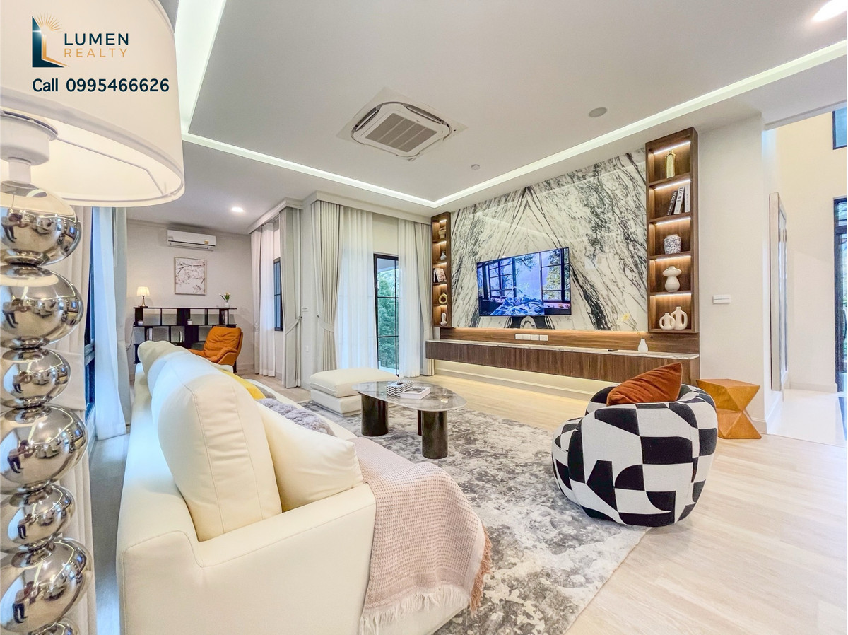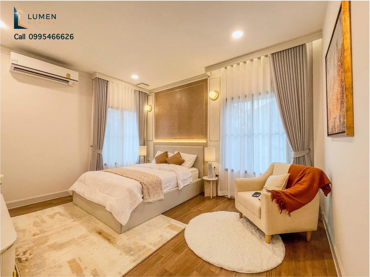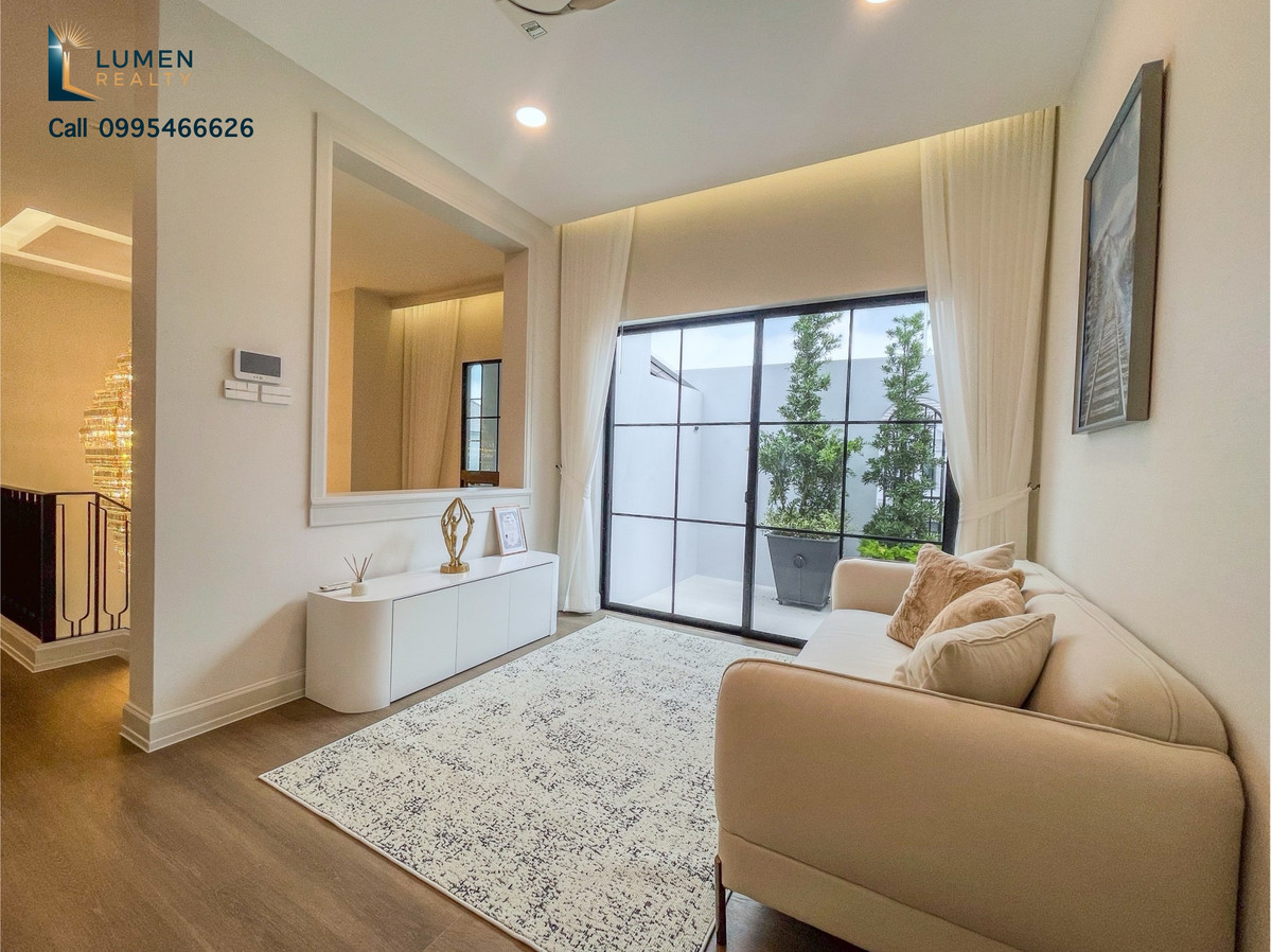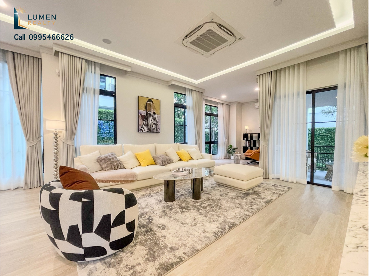 Experience the finest living at Nantawan Rama 9 - New Krungthepkreetha, a prestigious development on the highly sought-after New Krungthep Kreetha Road. This residence offers a "Hassle-Free" turnkey solution, fully furnished and ready for immediate occupancy. 🏆 Property Highlights: • Turnkey Luxury: Professionally furnished throughout. Ideal for expatriates or families looking for a seamless move-in experience. • Spacious Layout: Designed for comfort with a Grand Living Room for guests and a separate Family Room for private relaxation. • Exceptional Parking: Features extensive parking space for up to 6 vehicles (3 indoor + 3 outdoor)—a rare find in this area. • Functional Design: Comes with a Western Pantry for light dining and a separate heavy-duty Thai Kitchen. 🏡 Residence Specifications: • Bedrooms: 4 Bedrooms (All En-suite). • Bathrooms: 6 Bathrooms. • Living Zones: Large Reception Hall + Family Living Area. • Kitchens: 1 Thai Kitchen | 1 Western Kitchen. • Service Area: Maid’s quarters with attached bathroom. 📍 Prime Location (New Krungthepkreetha): • Top Schools: Surrounded by elite international schools: Brighton College, Wellington College, and Ruamrudee (RIS). • Connectivity: Excellent access to Rama 9 Road, Si Rat Expressway, and MRT Yellow Line (Si Kritha Station). 💸 Rental & Sale Terms: • Rental Price: 330,000 THB / Month (Minimum 1-year contract) • Selling Price: 53,000,000 THB 📞 For inquiries and viewing appointments, please contact: Call / WhatsApp: Contact number Line ID: pangproperties