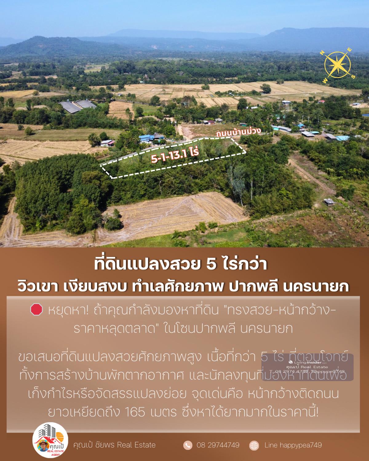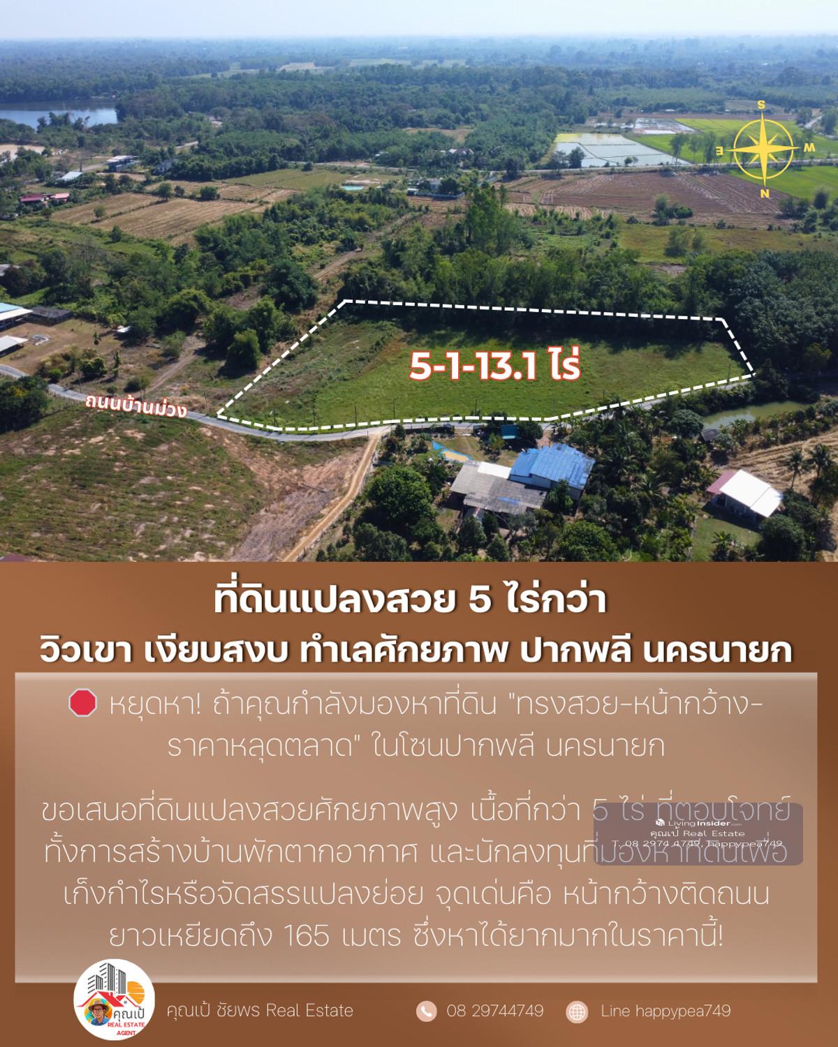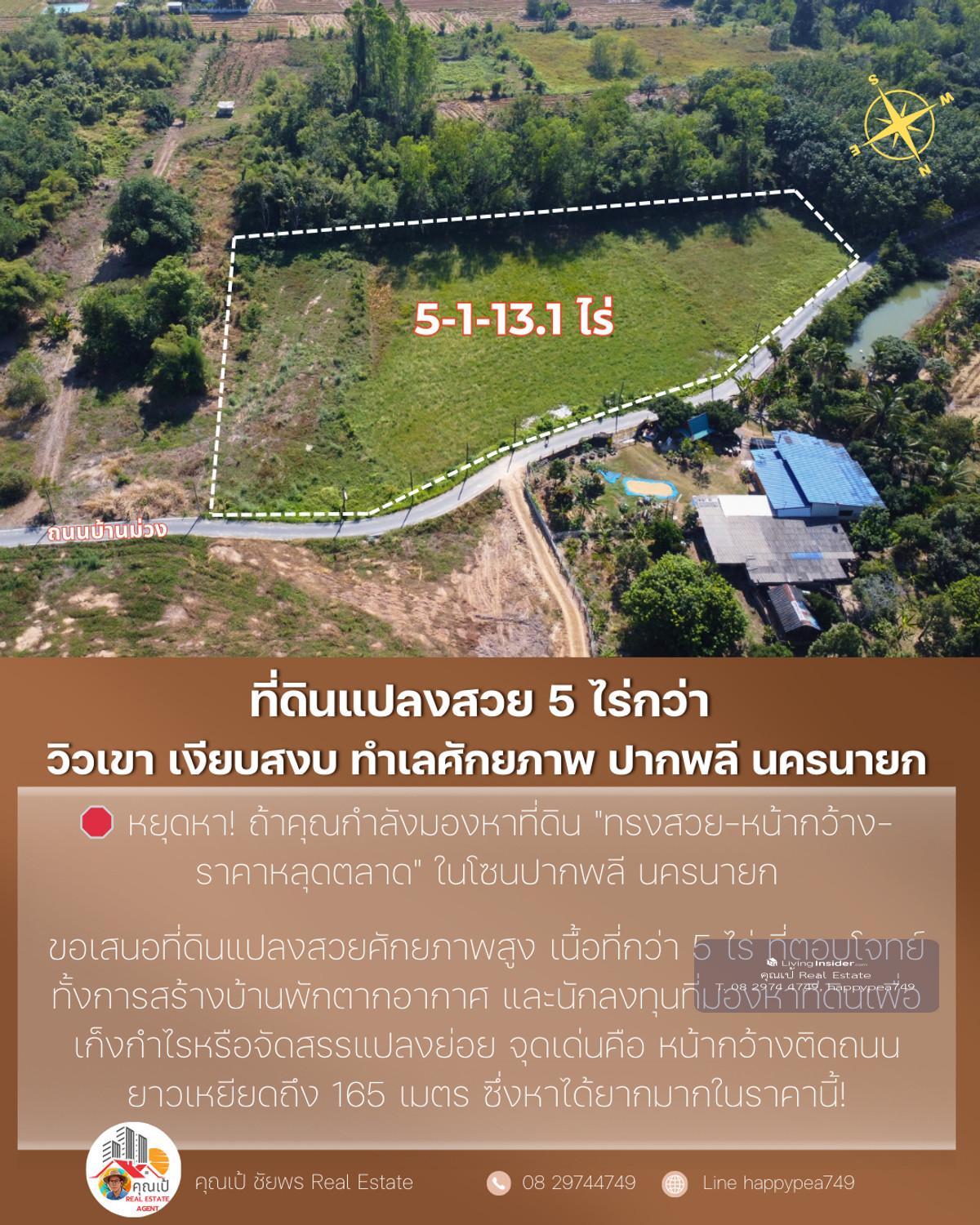 🔥 Best price in this zone. Suitable for building a house, building a resort and investing immediately! 🌟 A location like this...very hard to find! Land next to a paved road. Width over 165 meters with mountain views and surrounding nature , suitable for both "Build your dream house" and "make an investment project" without having to fill in more 📌 Property information (One-Stop Information) 🏷 Property type: Empty land next to a paved road (beautiful plot, good shape) 📐 Land size: 5-1-13.1 rai (total 2,113.1 sq m) 📏 Width - Depth: Width next to road approximately 165 meters, average depth 52 meters 📍 Location: Kok Kruat Subdistrict, Pak Phli District, Nakhon Nayok Province Coordinates: https://maps.app.goo.gl/1D9VhbzjDvhSn8vu5 (14.1834797, 101.3241487) 🗺 Urban planning / Land use: Green — Rural and agriculture (various types can be developed) 🌱 Suitable for: Building a garden house / vacation home Resort / Guesthouse Warehouse Product storage work Small allocation project Investment speculation Very good future land in Pak Phli zone 💰 Offering price: 4,490,337.50 baht (average only 850,000 baht per rai) — The best value in this area! 🌄 Overall location (Location Visioning) The highlight of the plot is "High privacy but very convenient travel" The area is surrounded by mountains, large trees and a community of garden houses. Good atmosphere like a resort Near the main road 3288, just a few minutes , near Rajamangala University of Technology , convenient entry into Nakhon Nayok city , not far from Wang Takrai Waterfall, Khao Chong Lom This zone has very good weather. The wind blows cool all year Suitable for people who want Private space, beautiful views and 100% natural peace 📊 Technical information for investors Productive development shape — width and length, suitable for building multiple housing units or allocating 5–10 plots next to a paved road + with electricity + access to tap water. Reduce development costs Green city plan, able to work on farms, homestays, resorts, houses Most of the area is flat. Reduce land filling costs Price per square wah is 15–25% lower than the market. Suitable for land bank speculation ⭐ 5 outstanding points that strike the hearts of real buyers ✅ Very wide frontage, 165 meters - not often found in this zone ✅ Beautiful mountain view, peaceful, suitable for building a house or resort ✅ Next to a paved public road. Very rare in large plots ✅ The cheapest price in the Pak Phli District zone at present ✅ Surrounded by nature, good water, good soil, good weather 📞 If interested in this plot, contact us immediately before anyone makes a reservation! Khun Pae Chaiphon 📲 Tel: Contact number 📩 Line: happypea749 Press https://line.me/ti/p/WbmkWfUuvu #Land for sale #Land for sale in Nakhon Nayok #Land in Nakhon Nayok #Land for investment #Pak Phli land #Beautiful land for sale #Mountain view land # Land next to a paved road #Cheap land #landforsale #real estate investment #large plot of land
