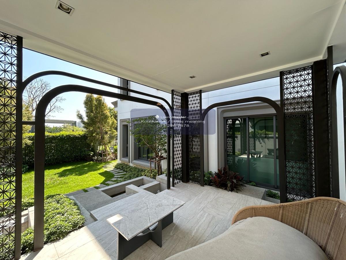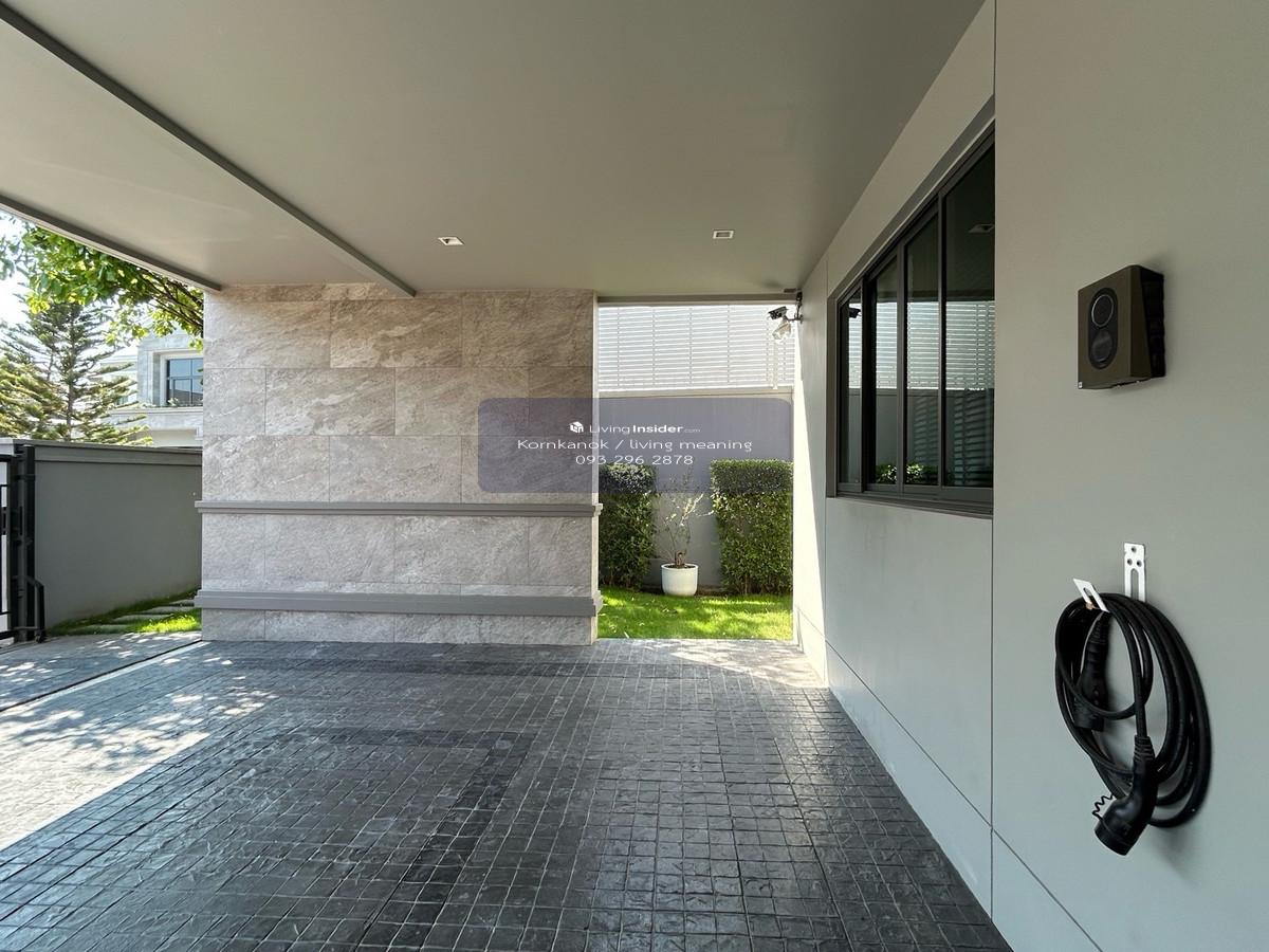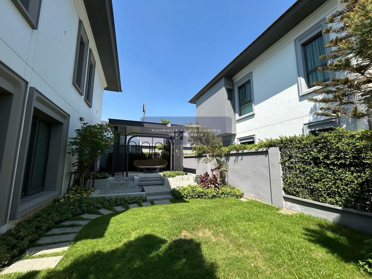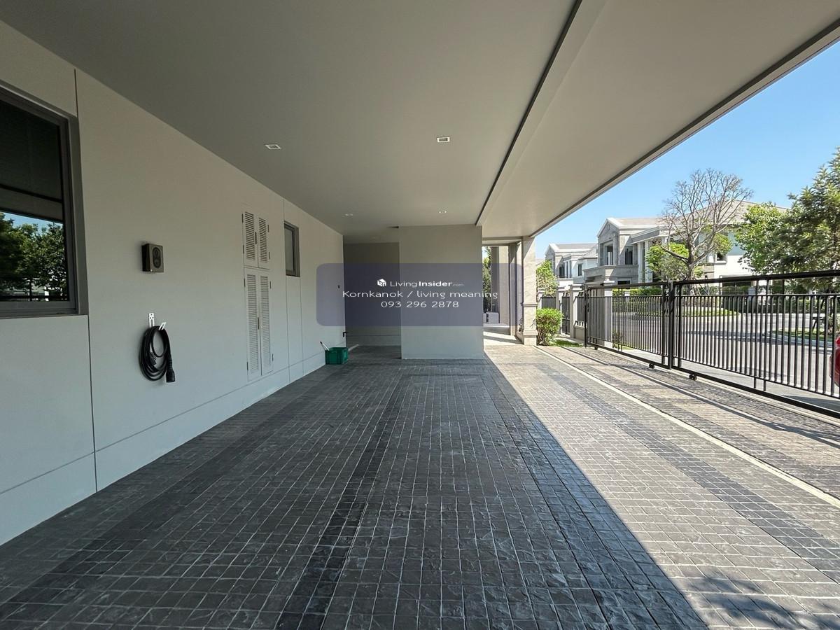 House for rent, Grand Bangkok Boulevard, Sukhumvit Srinakarin Rent 550,000 baht - 5 bedrooms, 6 bathrooms - 2 maids rooms - 5 parking spaces There is a swimming pool in front of the house. Opposite the clubhouse there is a karaoke room that has already been prepared. (There is a swimming pool in the project in front of the house.)