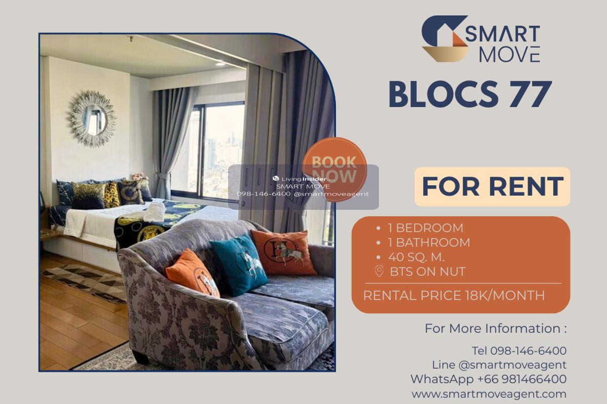 🔥 For Rent !! large room, river view / City view, high floor 22++, Good location!! 🔥 Code C Contact number..........Blocs 77, 1 bedroom, 1 bathroom, furnished, ready to move in📣📣 @BTS Onnut 🚌 There is a shuttle to BTS. Features & Description  - 1 bedroom 1 bathroom - usable area 40 Sq. M. - large room - river view / City view - nice room - high floor 22++ - nice decorations - Good location - fully furnished with all appliances  - ready to move in - rental price 18,000 THB  per month The best deal guaranteed 💯💯 ……………………………………………………………………………………………………………… Viewing highly recommended.  Contact Smart Move today for more details or to arrange a viewing. 📞Tel: Contact number 📲Line ID: @smartmoveagent (https://lin.ee/JoQEx02) ✅Whatsapp: Contact number 🌐FB: https://www.facebook.com/SMARTMOVEAGENT 📩Email: Contact email ………………………………………………………………..………….………….…………. Smart Move accepts deposits, sales, rentals of condos along the BTS and MRT lines. ………………………………………………………………..………….………….…………. #SMARTMOVE #SMARTCHOICE #SMARTCONDO #SMARTAGENT #Rare room #Cheaper price #Guaranteed to be the cheapest #Condo next to the skytrain #Room for rent #condoforrent #Room for sale #condoforsale #nice condo #room for rent #rentcondo #sale room #salecondo #expat #Sukhumvit #Ratchada #Phayathai #Sathorn #Sukhumvit #Ratchada #Phayathai #Sathorn #condonearbts #condonearmrt #bangkok #condo #blocs77 #btsonnut
