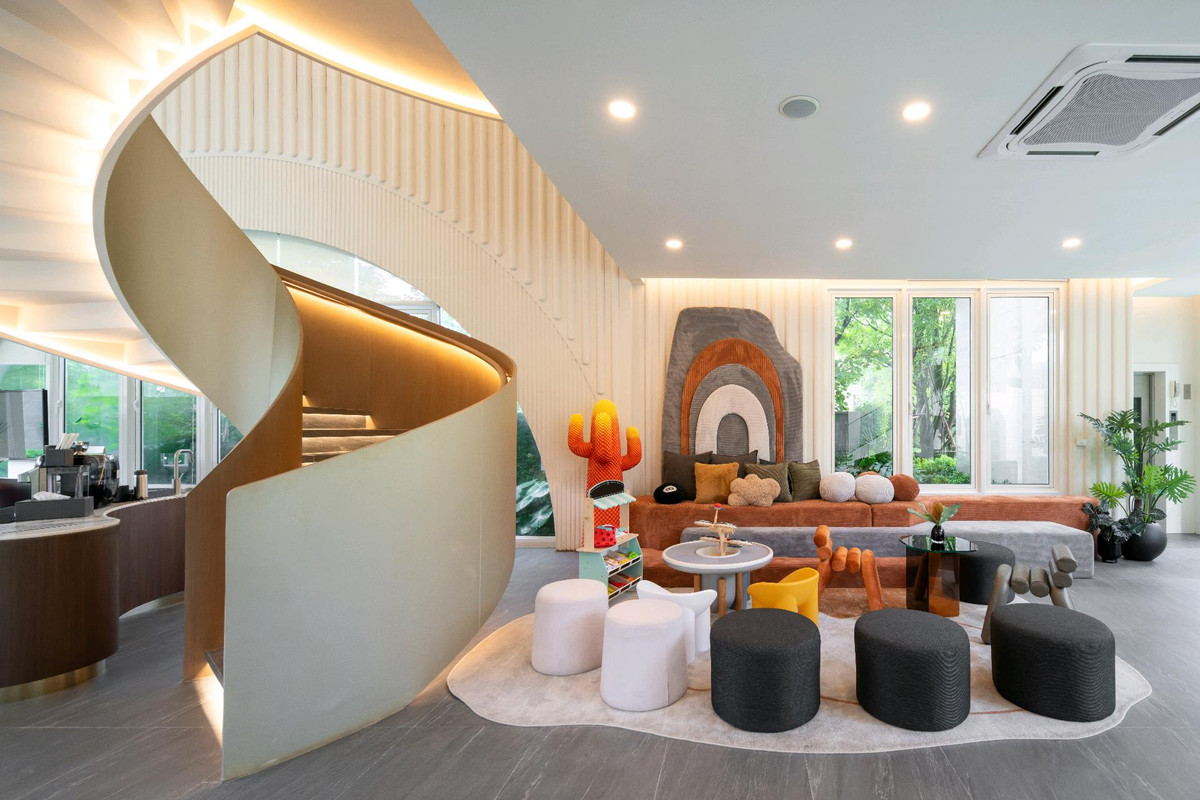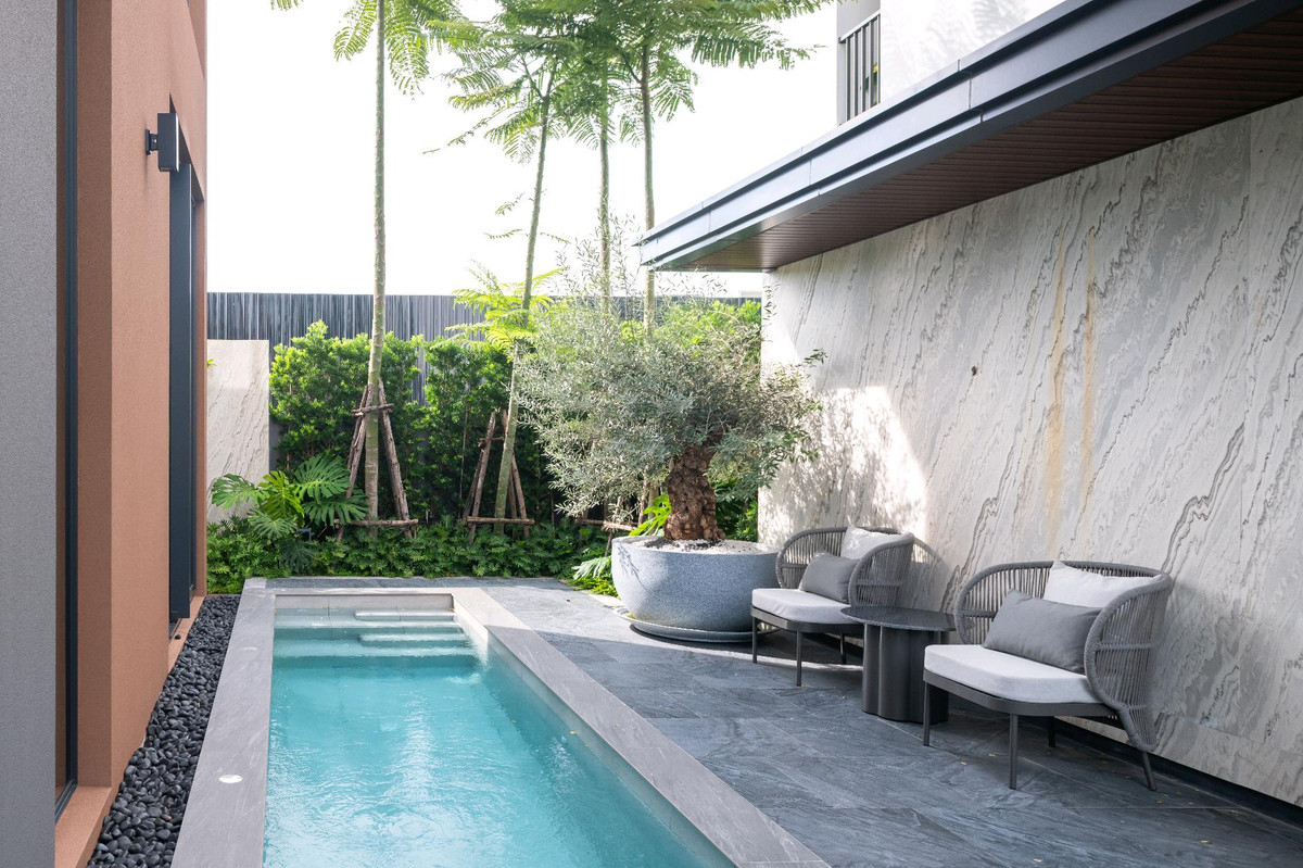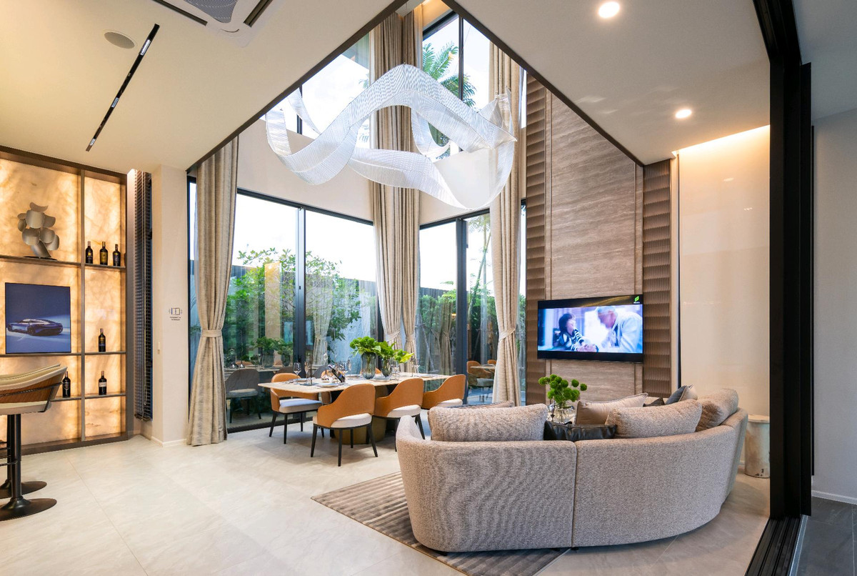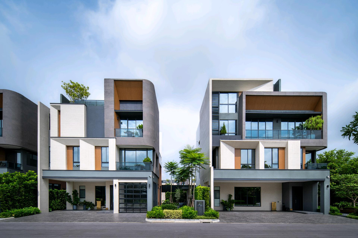 🏡 3-storey detached house, luxury level. With a private elevator in every house. The Palm Pattanakarn – Nomadic Villa ✨ Details of the house design • Usable area 421–500 sq m. • Function: 4 bedrooms /