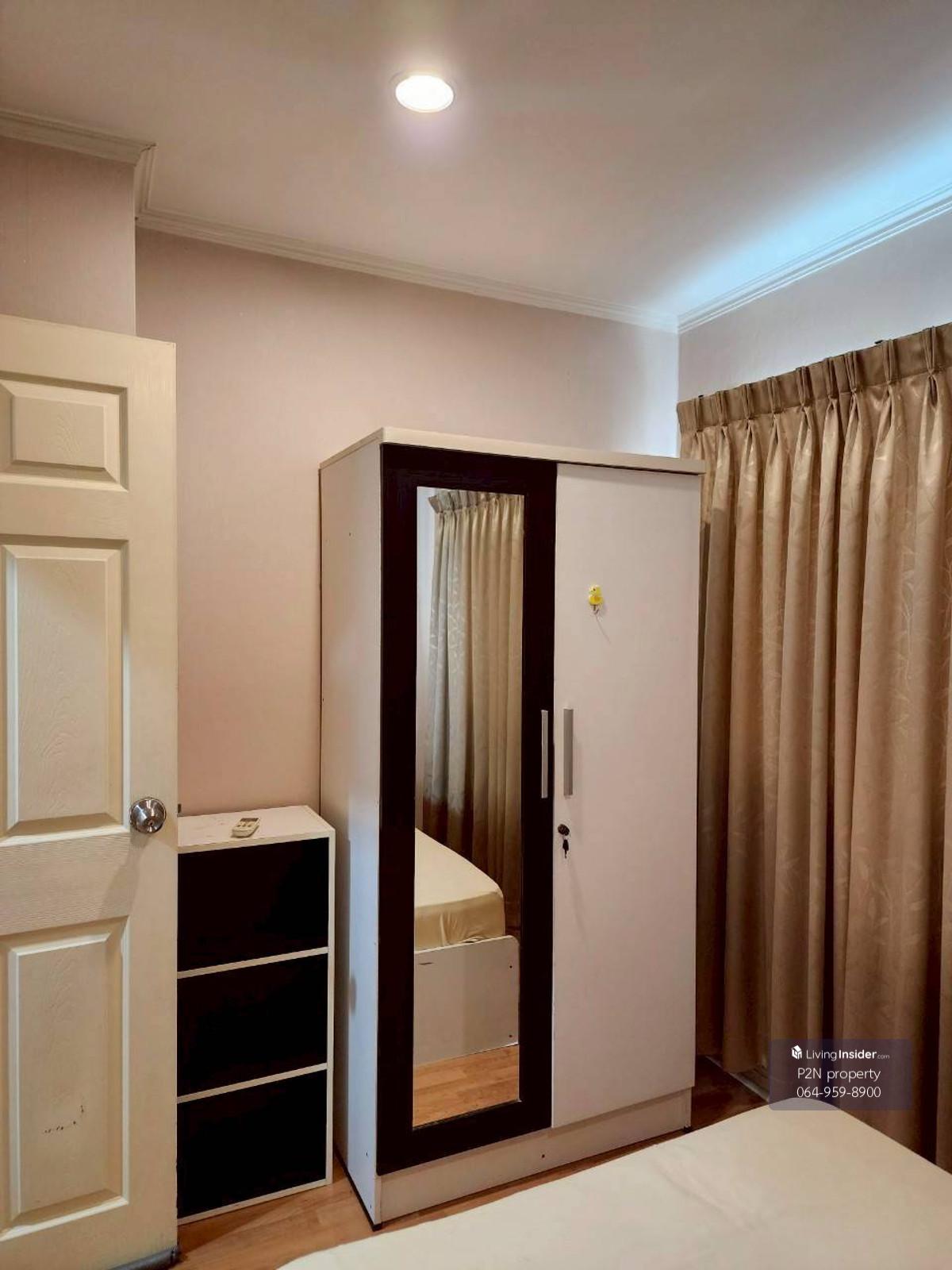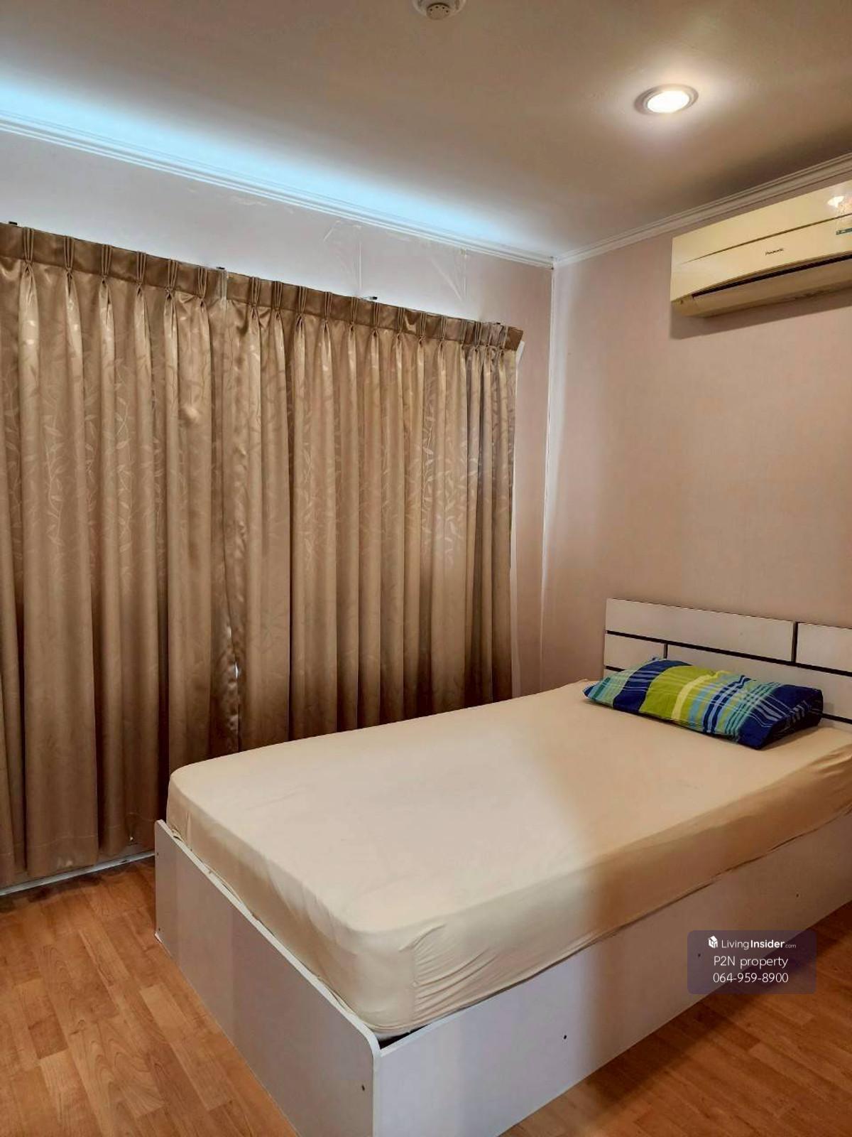 LPNV126 Condo for rent, Lumpini Ville Cultural Center, 8th floor, Building B1, city view, 62 sq m, 2 bedrooms, 2 bathrooms, 20,000 baht. Furniture and appliances included: - Bed with mattress - Wardro