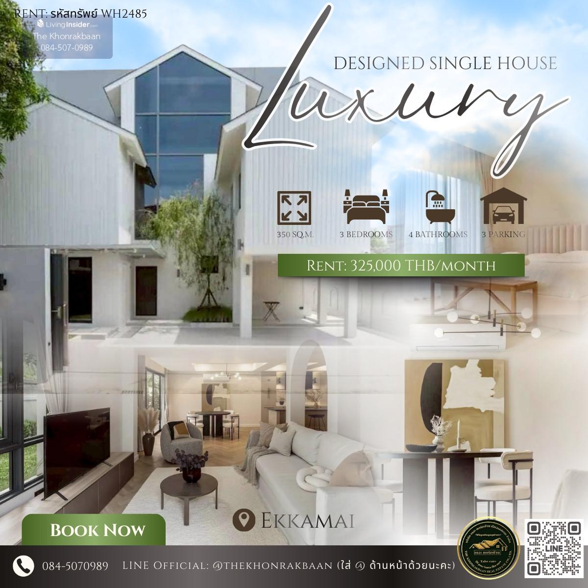 RENT: Property Code WH2485🏡 Luxury design detached house, 350 sq m, near Ekamai — corner house, maximum privacy , work designed by Famous architect 💰 Rent 325,000 baht/month ⚠️ Does not include withholding tax — paid by the tenant ✨ Pet Friendly has a dog bath + Walk-in Closet ⭐ House details • Usable area 350 sq m • 3 bedrooms • 4 bathrooms • Multi-purpose room • Maids room • Western Kitchen • Near the expressway / Sansiri Backyard 💰 Rent: 325,000 THB/month ⚠️ Excluding withholding tax — tenant pays 🏡 350 sq.m. Architect-designed Corner Home near Ekkamai High privacy, premium design ✨ Pet Friendly with dog shower area + walk-in closet ⭐ Property Details • 350 sq.m. usable area • 3 Bedrooms • 4 Bathrooms • Multipurpose room • Maid’s room • Western kitchen • Close to expressway & Sansiri Backyard ------------------------------------------- 🏢 The Home Lover Company Real Estate Co., Ltd 🌍The Khonrakbaan Real Estate Co., Ltd 📍After-rent service throughout the contract | Full after-rent support throughout the lease ⚠️ Rent at owners price ⚠️ 💁♀️ Accepting orders / accepting rental deposits / renting out | Property sourcing / consignment / leasing services 📅 Appointment required 1 day in advance | Appointment required 1 day in advance 👇 Contact Agent📞 Tel: Contact number 🌍 Facebook: The Khon Rak Baan Real Estate Co., Ltd. 📱 Wechat: @thekhonrakbaan 💬 LINE Official: @thekhonrakbaan (insert @ in front too)
