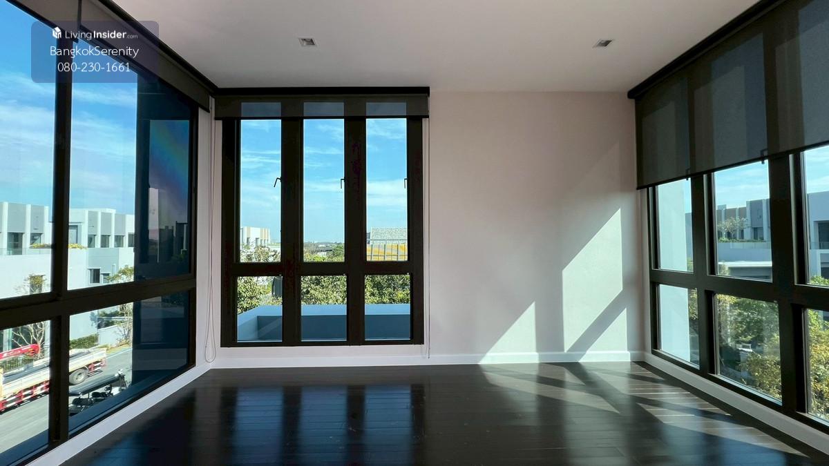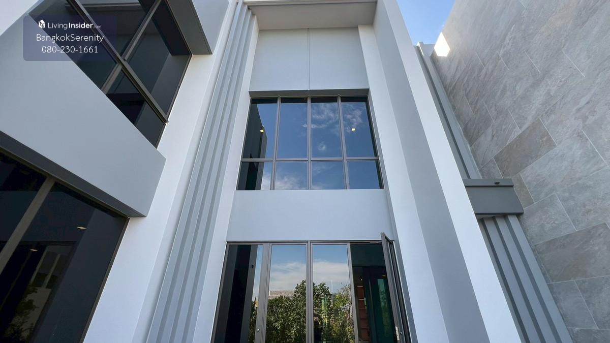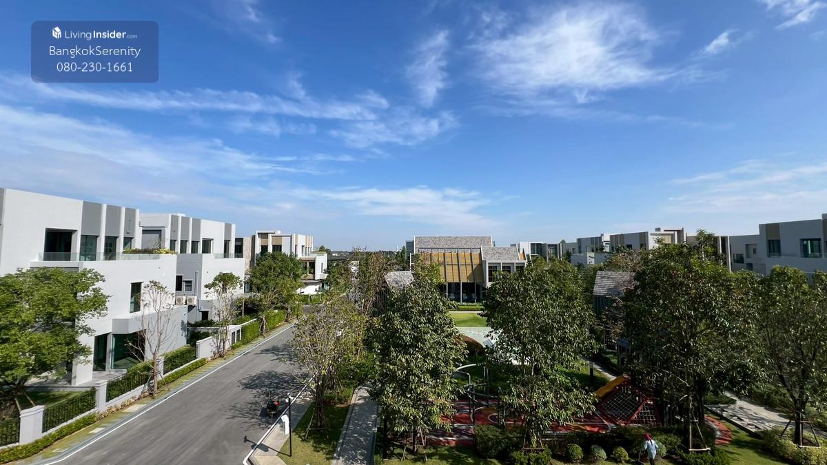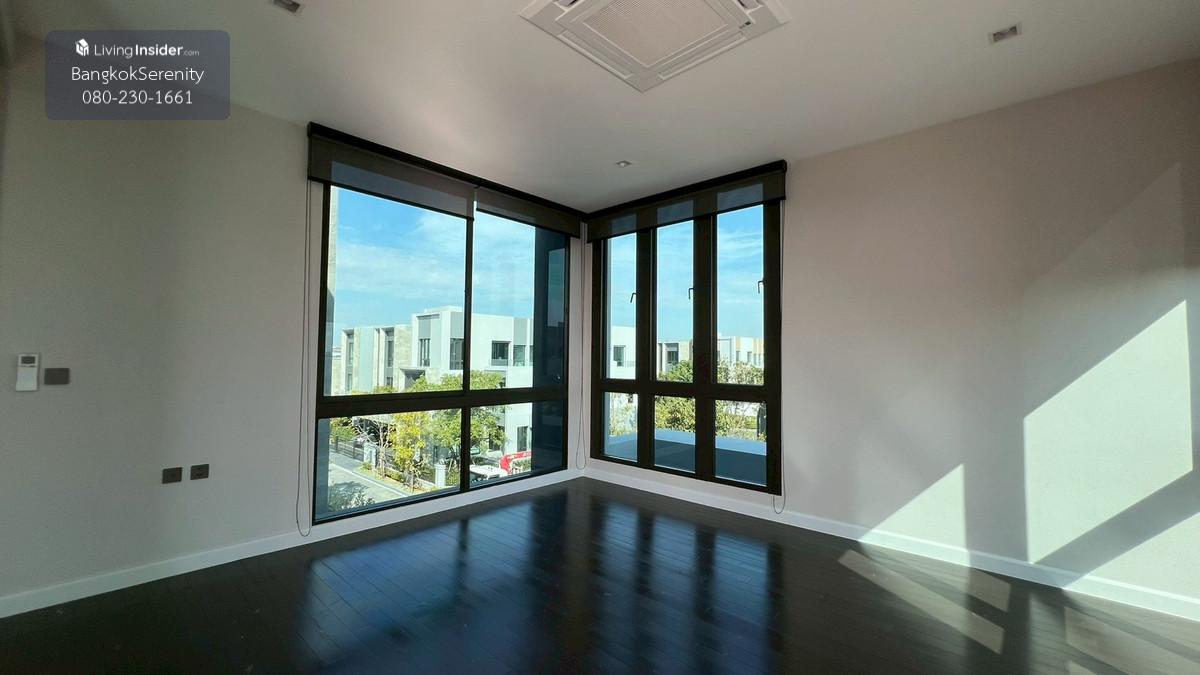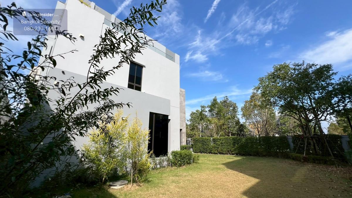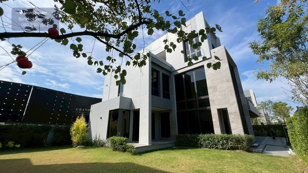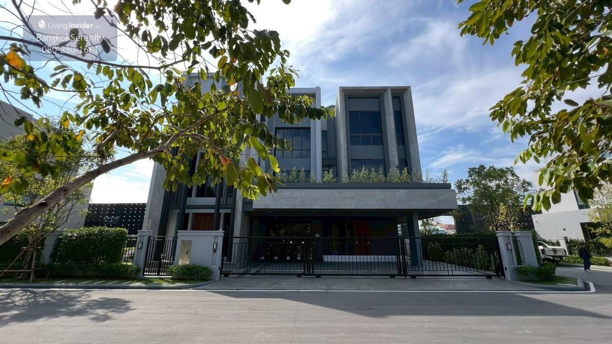 Luxury House for Rent at Grand Bangkok Boulevard Krungthep Kreetha (Biggest Type • Corner Plot • Faces Garden & Clubhouse) This exceptional luxury 3-storey house for rent at Grand Bangkok Boulevard Krungthep Kreetha is the largest house type in the entire project, situated on the most desirable corner plot, directly facing the clubhouse and landscaped gardens. The property offers more than 600 sq.m. of living space, complete with a private lift, spacious indoor/outdoor living, and premium functionality for large families. The first floor features an impressive double-volume living area, a large dining area, and both a European kitchen and separate Thai kitchen. A spacious ensuite bedroom with soft flooring is perfect for elderly family members or guests, providing easy access and comfort. The second floor includes 2 bedrooms and 2 bathrooms, plus a large open balcony accessible from the walkway, offering a relaxing view of the clubhouse and garden. The top floor is dedicated to the expansive master suite, featuring a huge bedroom, a large walk-in closet, and a luxurious master bathroom with jacuzzi bathtub. A separate glass-walled function room offers additional space for a private lounge, office, gym, or relaxation area. This home is ideal for large families, especially those with children studying at Wellington College Bangkok or Brighton International School, both located just minutes away. 📌 Property Details Living area: 600+ sq.m. 3-storey luxury home 5 bedrooms, 6 bathrooms Private lift Double-volume living area European & Thai kitchens Corner plot facing clubhouse & gardens Large balcony + glass function room Maid room Fully furnished upon request 💰 Rent: 400,000 THB/month