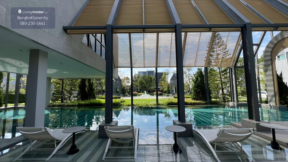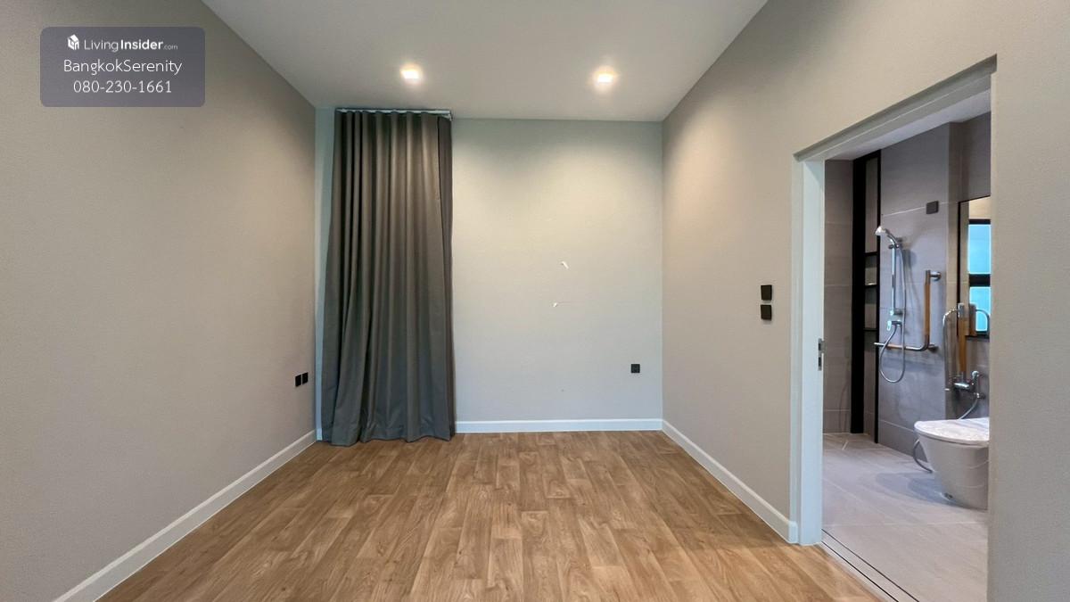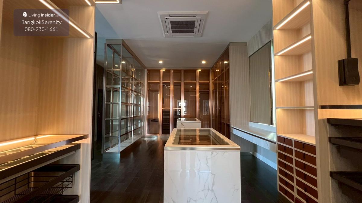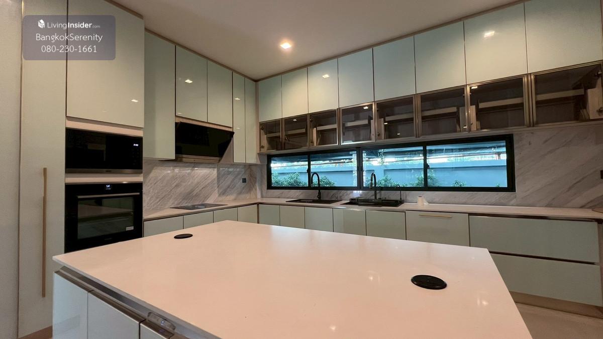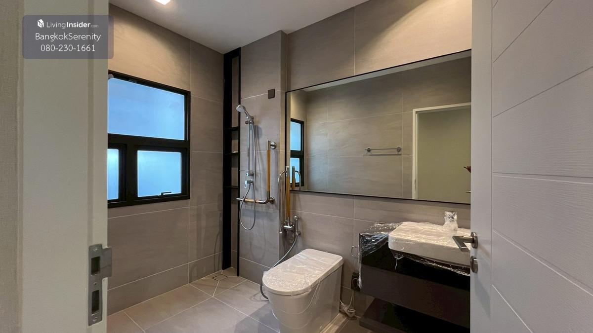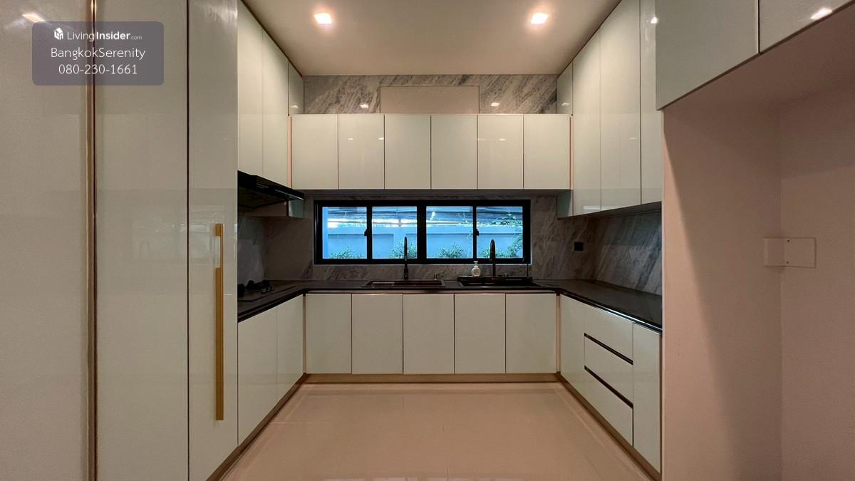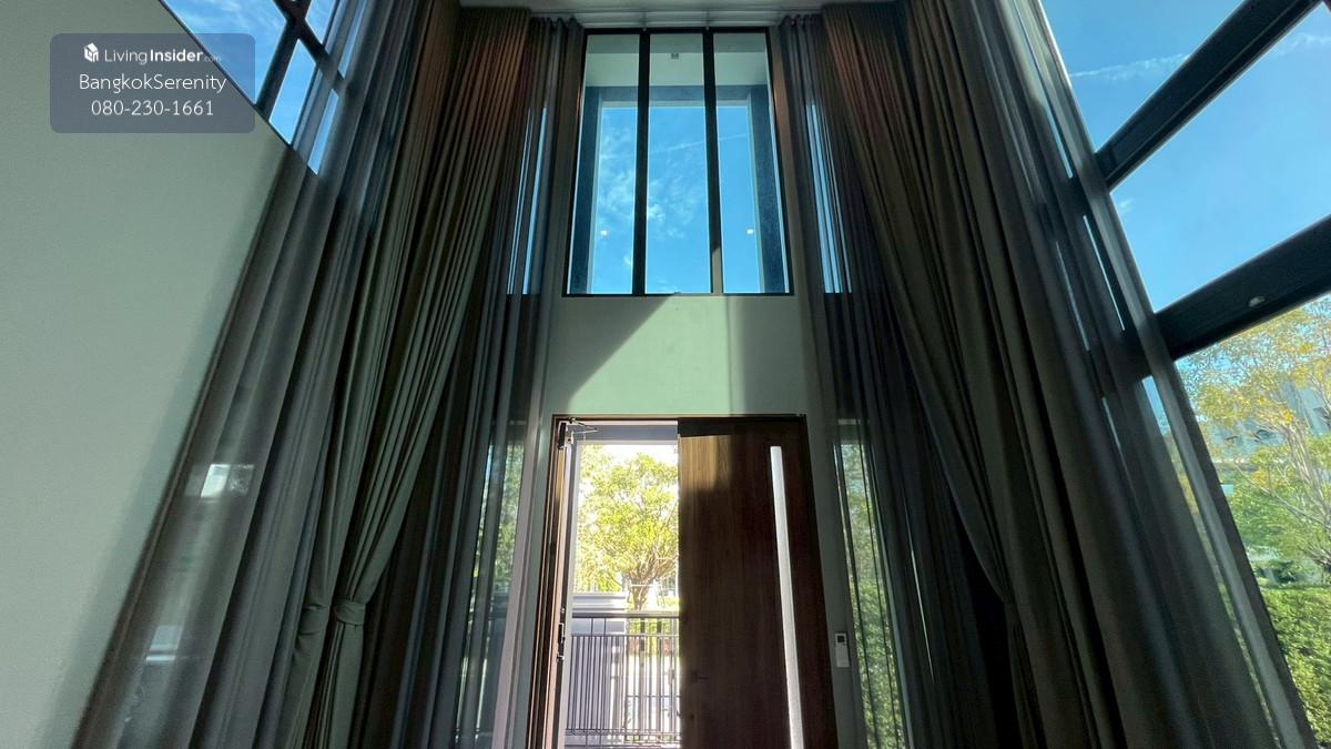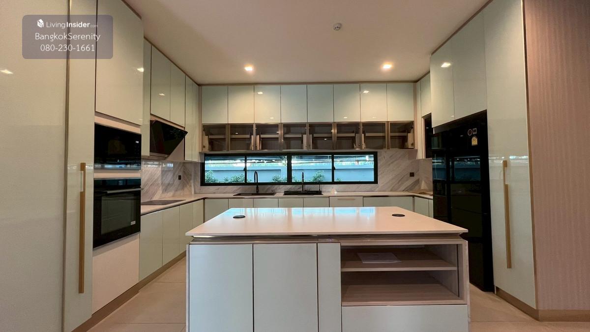 Luxury House for Rent at Grand Bangkok Boulevard Krungthep Kreetha (Biggest Type • Corner Plot • Faces Garden & Clubhouse) This exceptional luxury 3-storey house for rent at Grand Bangkok Boulevard Krungthep Kreetha is the largest house type in the entire project, situated on the most desirable corner plot, directly facing the clubhouse and landscaped gardens. The property offers more than 600 sq.m. of living space, complete with a private lift, spacious indoor/outdoor living, and premium functionality for large families. The first floor features an impressive double-volume living area, a large dining area, and both a European kitchen and separate Thai kitchen. A spacious ensuite bedroom with soft flooring is perfect for elderly family members or guests, providing easy access and comfort. The second floor includes 2 bedrooms and 2 bathrooms, plus a large open balcony accessible from the walkway, offering a relaxing view of the clubhouse and garden. The top floor is dedicated to the expansive master suite, featuring a huge bedroom, a large walk-in closet, and a luxurious master bathroom with jacuzzi bathtub. A separate glass-walled function room offers additional space for a private lounge, office, gym, or relaxation area. This home is ideal for large families, especially those with children studying at Wellington College Bangkok or Brighton International School, both located just minutes away. 📌 Property Details Living area: 600+ sq.m. 3-storey luxury home 5 bedrooms, 6 bathrooms Private lift Double-volume living area European & Thai kitchens Corner plot facing clubhouse & gardens Large balcony + glass function room Maid room Fully furnished upon request 💰 Rent: 400,000 THB/month
