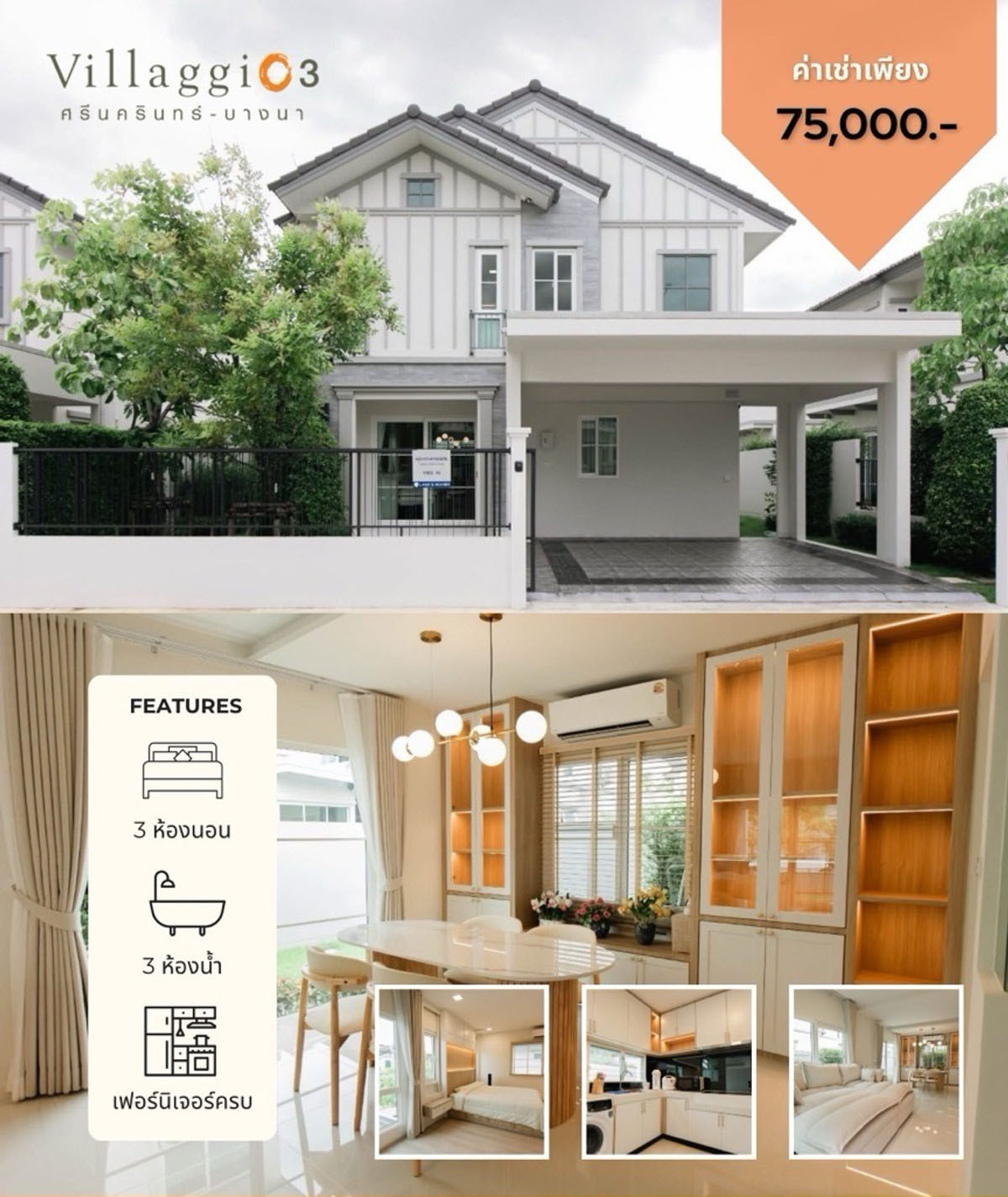 For rent, luxury house with furniture, beautifully decorated, Bang Kaeo-Bang Na 2 floors, 3 bedrooms, 3 bathrooms, size 100 sq m., usable area 250 sq m. parking for 2 cars, house with furniture as in the picture . Nearby places Synphaet Hospital, Theparak 3.3 km. Prince Suvarnabhumi Hospital 4.5 km. Big C Srinakarin 4.9 km. Makro Srinakarin 5.1 km. Thai Watsadu Bangna Branch 5.6 km. Mega Bangna 5.7 km. Lotus Bangna-Trad 6 km. . 75,000 baht/month (minimum contract 1 year) Initial deposit 2 months, 1 advance. Month . Ask for more information. or interested in making an appointment to view Please contact Line ID : @waiwai.pm Link Line : https://lin.ee/HOx9JBr Tel : Contact number . See more beautiful properties that we have selected at https://www.facebook.com/waiwai.propertymagic/ . Join the group of houses, townhomes - buy-sell-rent - Bangkok, surrounding area, post for free https://www.facebook.com/groups/northbkk.house.yourestate Group Ratchada, Huai Khwang, Rama 9, Chatuchak - buy-sell-rent House https://www.facebook.com/groups/phahonbkk.house.yourestate ---------------------------------------------------------------------------------- Luxury house for rent, fully furnished, beautifully decorated, Bang Kaeo-Bang Na. 2 stories, 3 bedrooms, 3 bathrooms, 100 sq wah (approximately 100 sq m), usable area 250 sq m. Parking for 2 cars, furnished as shown. Nearby places: Sinphaet Hospital Theparak 3.3 km Prince Suvarnabhumi Hospital 4.5 km Big C Srinakarin 4.9 km Makro Srinakarin 5.1 km Thai Watsadu Bangna Branch 5.6 km Mega Bangna 5.7 km Lotus Bangna-Trad 6 km 75,000 baht/month (Minimum 1 year contract) 2 months deposit, 1 month advance. . Please feel free to contact me if you need any further information. Line ID : @waiwai.pm Link Line : https://lin.ee/HOx9JBr Tel : Contact number . For more properties, please click https://www.facebook.com/waiwai.propertymagic/ . Nonthaburi, Bangkok house for rent group, please join https://www.facebook.com/groups/northbkk.house.yourestate Ratchada, Huai-Kwang, Latprao house for rent-Sale Group https://www.facebook.com/groups/phahonbkk.house.yourestate