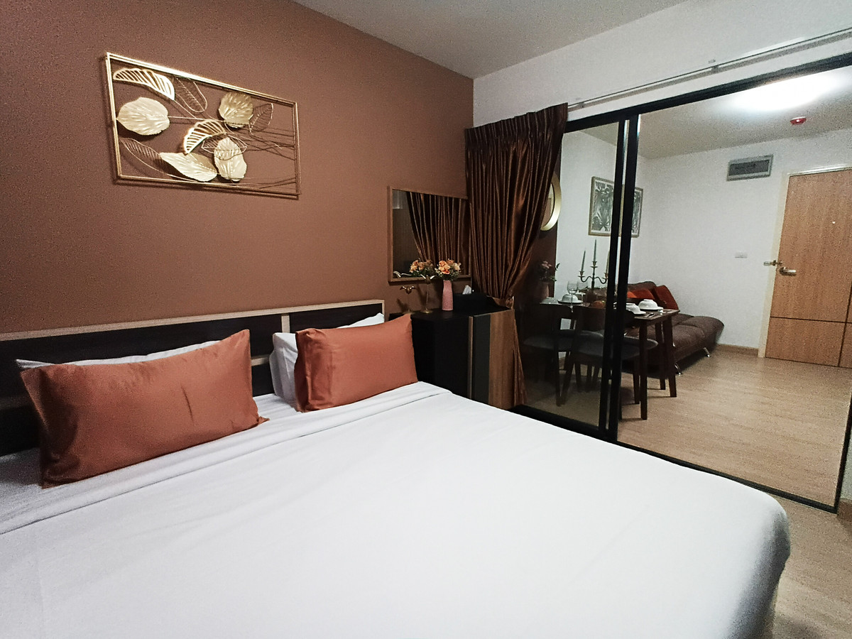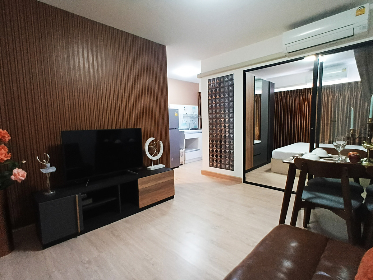 Tired of the headache of hiring a contractor for built-in furniture after buying a condo? End that problem with this unit! 🏢 Plein Plein Condominium Chaengwattana-Pak Kret ✨ Why choose this unit? ✅ Spacious: 32.26 sq.m., well-proportioned, not cramped like a box. ✅ Fully furnished and beautifully decorated: Full built-in furniture and complete set of furniture in pristine condition (save hundreds of thousands on interior decorating costs!). ✅ 8th Floor (Top Floor): Top floor, private, no noise from the floor above. ✅ Ample parking: No more searching for parking; this brand provides plenty of parking spaces. 📍 Great location with plenty of food options: Near Pak Kret intersection, Major Cineplex, Central Chaengwattana, and multiple access routes. 💰 Price: Only 1.39 million baht (amazing value for what you get!). Monthly payments starting from 6,xxx - 7,xxx baht/month (cheaper than renting!). 📲 Schedule a viewing today! Absolutely beautiful and exactly as pictured. Call: Contact number (Khun San) Line: sandezth #PleunPleunCondo #ChaengwattanaCondo #PakKretCondo #GoodConditionUsedCondo #ReadyToMoveInCondo #CondoForSale