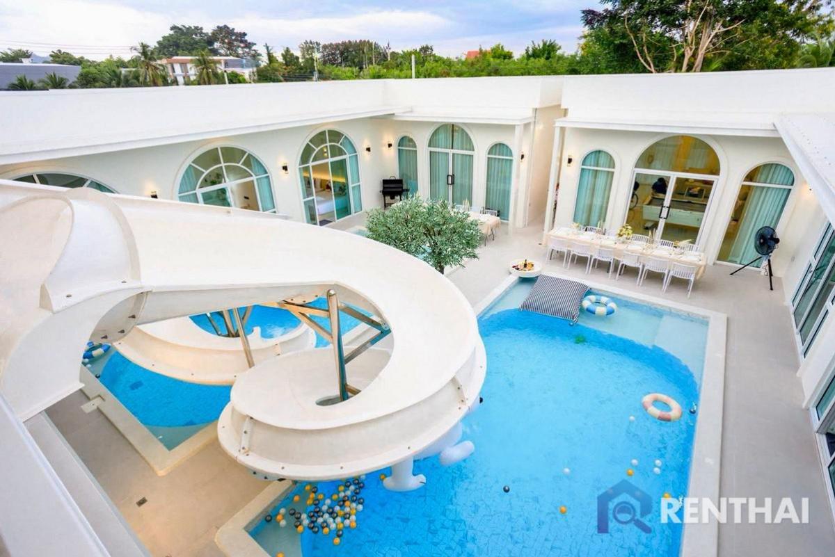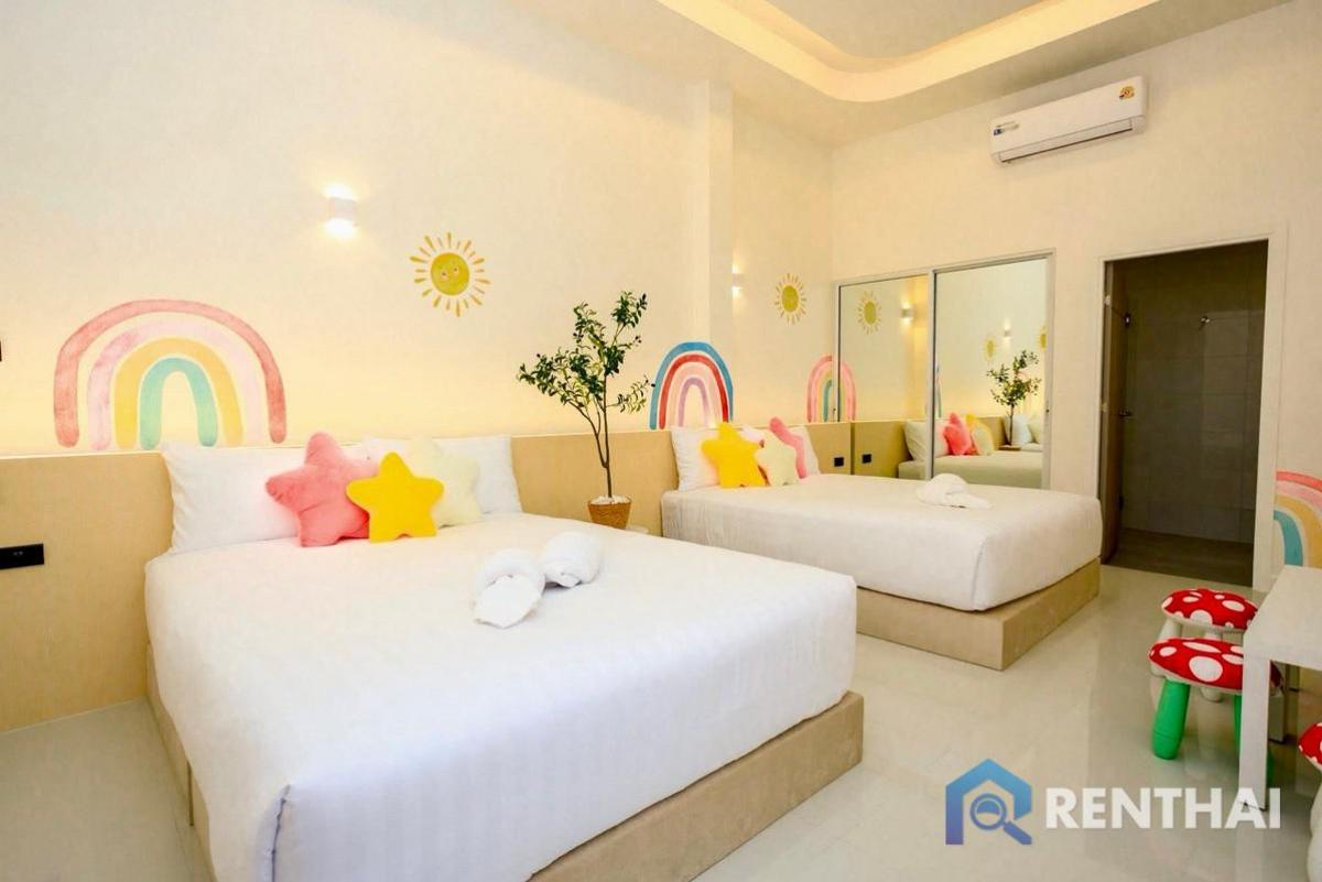 Listing code: #RT04062 This newly completed twin-house property is offered at 20.5 million THB with a guaranteed rental income of 190,000 THB per month for 3 years. Transfer fees and taxes are shared 50/50 between buyer and seller. The total land size is 184 square wah (92 + 92). The property includes 9 bedrooms, 11 bathrooms, two built-in kitchens, parking for four cars, and is fully furnished with built-in furniture, beds, water heaters, air conditioners, TVs, refrigerators, a pool table, and a large slider. It is located in a very convenient area, only 500–600 meters from 7-Eleven, CJ, Big C, and Lotus. Jomtien Beach is 7.1 km away, and the Huai Yai motorway is only 6.9 km away. This is a great option for both living and investment with strong rental returns. Sale price: 20,500,000 baht - 9 bedrooms, 11 bathrooms - Land size 184 sq.w. - Usable area 650 sq.m. - 1 floor - Pool view - Thai quota - Fully furnished Facilities: - Pet friendly - Private pool - Pool Access - Private Garden - European kitchen - Bathtub - Washing Machine Location: Huai Yai, Pattaya For more details feel free to contact us by Tel: Contact number WhatsApp: Contact number Line ID: Contact number https://line.me/ti/p/Wxzj0pWuEa (click the link to add line) ……………………………………………………………………… Website: https://renthai.com Facebook Page: https://www.facebook.com/renthai.pattaya Line Official: @renthai Email: Contact email Renthai - your reliable assistant in buying, selling and investing in real estate in Pattaya.