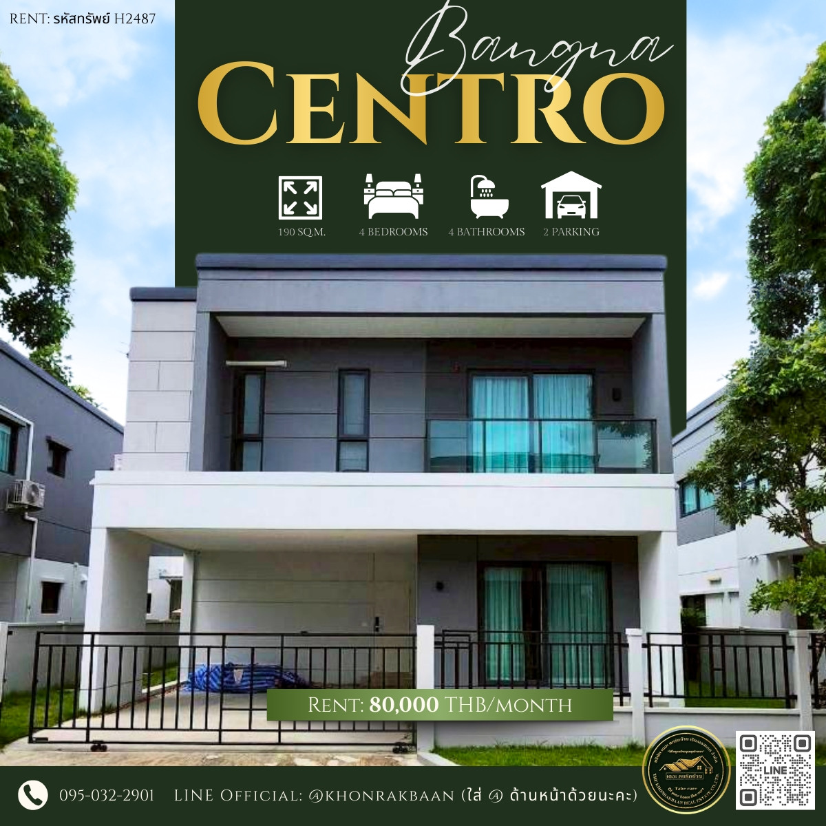 RENT: Property Code H2487 🏡 Centro Bangna Prime Location Next to Mega Bangna 💰 Rent: 80,000 THB/month 📌 Property Details • Land size: 50.8 sq.w. • Usable area: 190 sq.m. • Facing South • 4 Bedrooms |