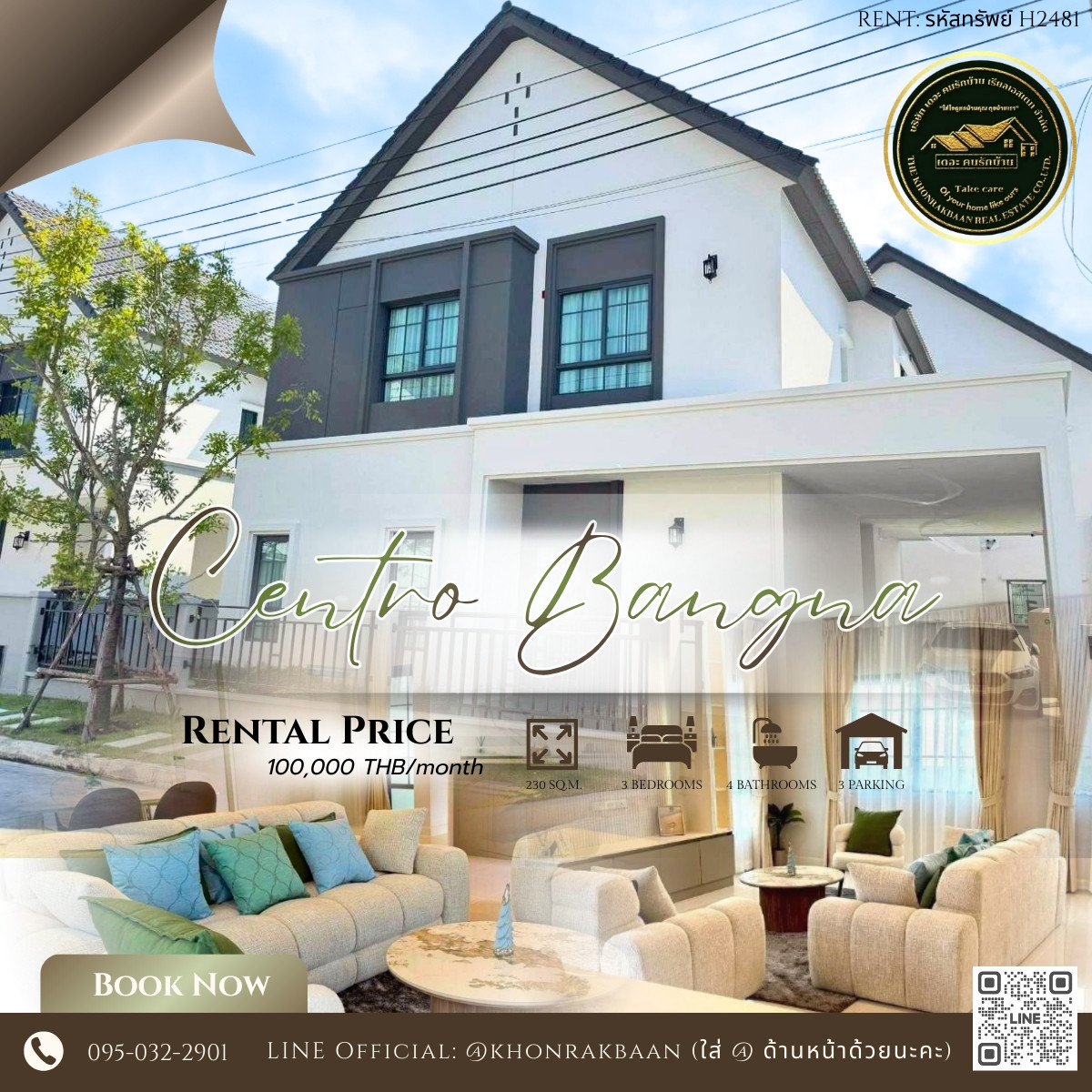 RENT: Property Code H2481🏡 Centro Bangna — Single House Next to Mega Bangna ✨ Ready to move in🐶 Pet friendly 💵 Rental Price: 100,000 THB/month • Usable area: 230 sq.m. • Land area: 52.60 sq.w. ⭐ Property Details • 3 Bedrooms • 4 Bathrooms • 2 Living rooms • 1 Small room (Maid room / Working room) • 2 Parking spaces • North-facing house — good ventilation, not hot • Fully furnished • Electrical appliances included: TV, refrigerator, washing machine, microwave 📍 Excellent location — right next to Mega Bangna Facilities Swimming pool Fitness center Sauna / Steam room Meeting room / Co-working space Lobby Garden area 24-hour security & CCTV Parking 🏡 Centro Bangna – Single house next to Mega Bangna ❗️Ready to move in Accept pets 💵 Rent 100,000 Baht/month Usable area 230 sq m Land 52.60 sq m ⭐ House details • 3 bedrooms • 4 bathrooms • 2 living rooms • 1 small bedroom (maids room/office room) • 2 parking spaces • The front of the house faces north, gets good wind, not hot • Fully furnished • Complete electrical appliances: TV / refrigerator / washing machine / microwave 🐶 Pets allowed 📍 Location next to Mega Bangna, very convenient to travel Central area. Swimming pool Fitness Sauna / Steam room Meeting room / Co-working space Lobby Common garden 24 hrs. security system + CCTV Parking ┏━━━━━━━━━━━━━━━━━━━┓ 🏢 The Khonrakbaan Real Estate Co., Ltd 📍After-rent service throughout the contract | Full after-rent support throughout the lease ⚠️ Rent at owners price ⚠️ 💁♀️ Accepting orders / accepting rental deposits / renting out | Property sourcing / consignment / leasing services 📅 Appointment required 1 day in advance | Appointment required 1 day in advance 👇 Contact BEE (Thai/Eng) 👇 📞 Tel: Contact number 📱 WhatsApp: Contact number 💬 LINE Official: @khonrakbaan (put @ in front too) 📩 Mail: Contact email ┗━━━━━━━━━━━━━━━━━━━┛ #CentroBangna #BangnaHouseForSale #BangnaHouseForRent #MegaBangna #BangkokProperty #LuxuryHomeBangna #PetFriendlyHome #FullyFurnishedHouse #ThailandProperty #BangnaLiving #HouseForRent #HouseForSale