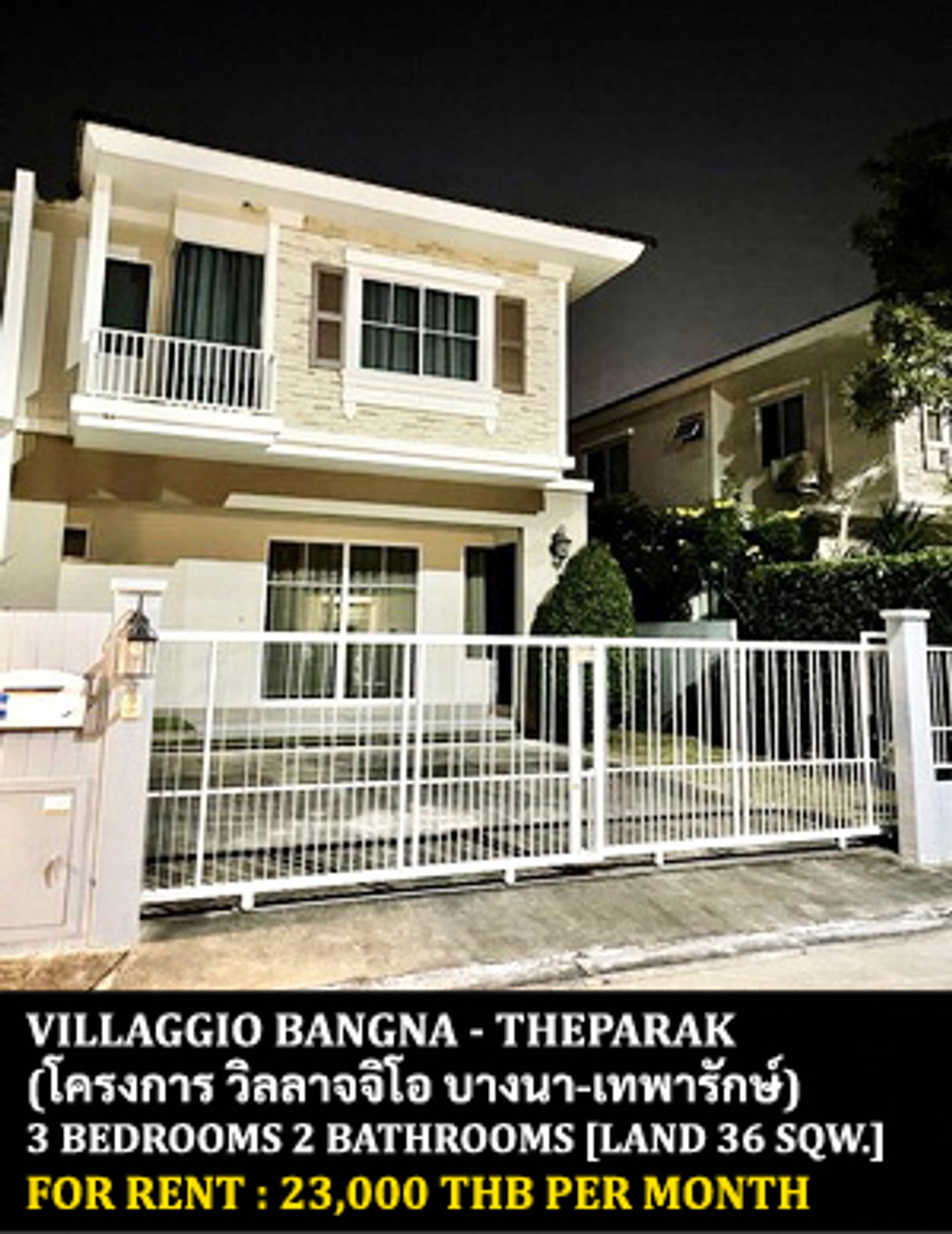 HOUSE FOR RENT PROPERTY PROJECT : Villaggio Bangna - Theparak LOCATED : Tumru-Bangphli Rd. , Bangphli Yai , Bangphli , Samut Prakarn PROPERTY TYPE : Semi Detached House BEDROOMS / BATHROOMS : 3 Bedrooms 2 Bathrooms LAND SIZE : 36 Sq.w. USABLE AREA : 134 Sq.m. CONDITION : Fully furnished NEARBY : - Wat Bangphli Yai - Homepro Suvarnabhumi - Suvarnabhumi Airport ------------------------------------------------------- RENTAL PRICE : 23,000 Baht / Month ------------------------------------------------------- Please contact us for viewing or more details CALL : Contact number Nat [Nathan] LINE ID : @roomfinderthailand [Put @ Front ID] WHAT'S APP : Contact number WECHAT : saintz69 EMAIL : Contact email llllllllllllllllllllllllllllllllllllllllllllllllllllllllllllllllllllllllllllllllllllllll ROOMFINDER (THAILAND) CO.,LTD. PROPERTY AGENTS HOMEPAGE : www.facebook.com/roomfinderthailand ------------------------------------------------------- บริษัท รูมไฟเดอร์ (ไทยแลนด์) จำกัด ตัวแทนรับฝาก ขาย เช่า อสังหาริมทรัพย์ทุกชนิด