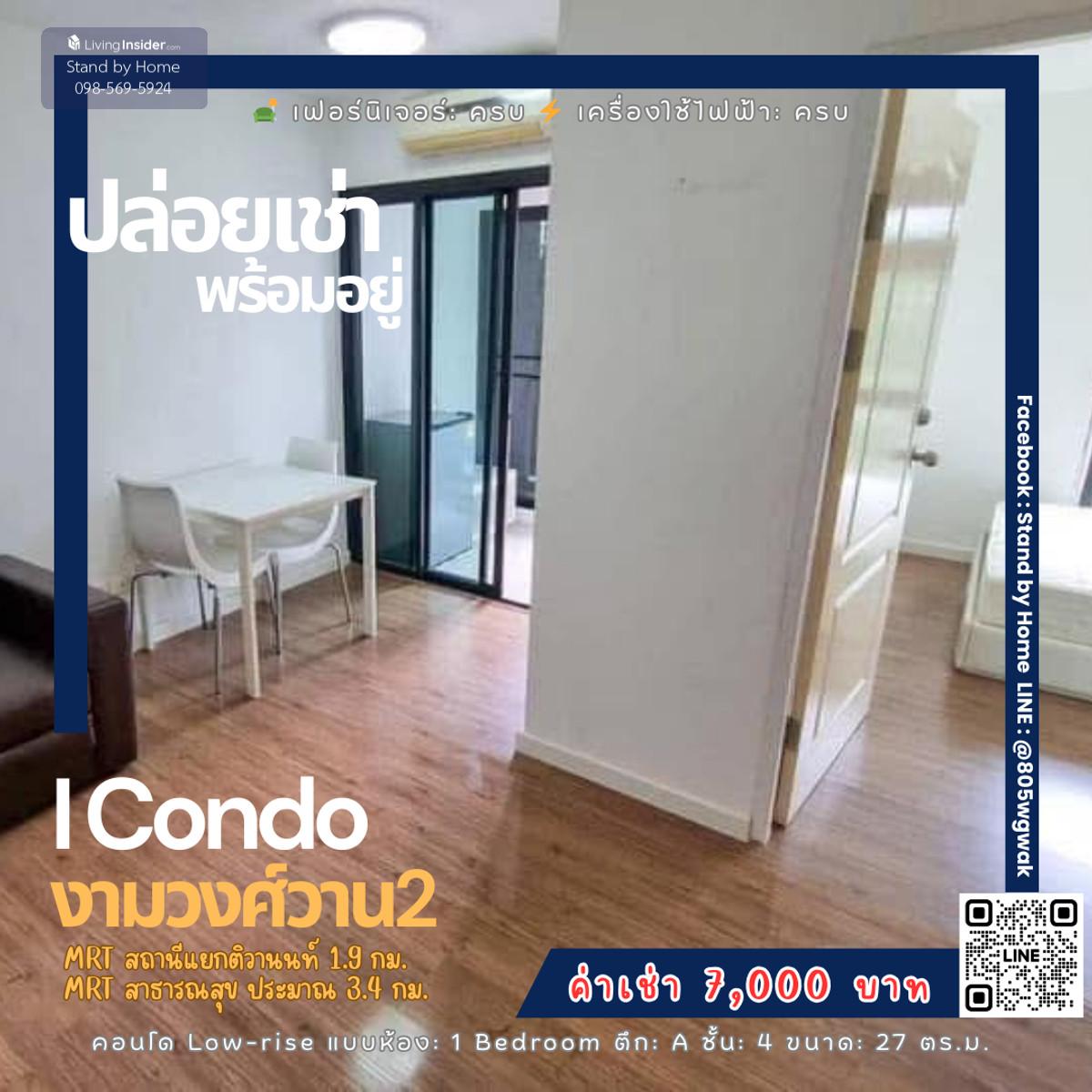 For rent! I Condo Ngamwongwan 2 — 1 bedroom, low price.