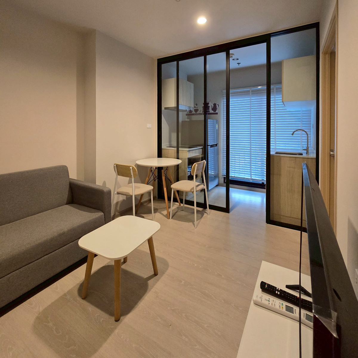 1 bedroom, 26 square meters, 4th floor, east side furniture + electrical appliances, ready to move in list of electrical appliances provided 1. 2 air conditioners 2. Smart TV 45 inches 3. Electric stove+hood 4. Microwave 5. 2 door refrigerator 6. Washing machine 7. Water heater Price negotiable If interested, contact ID Line: alis.l