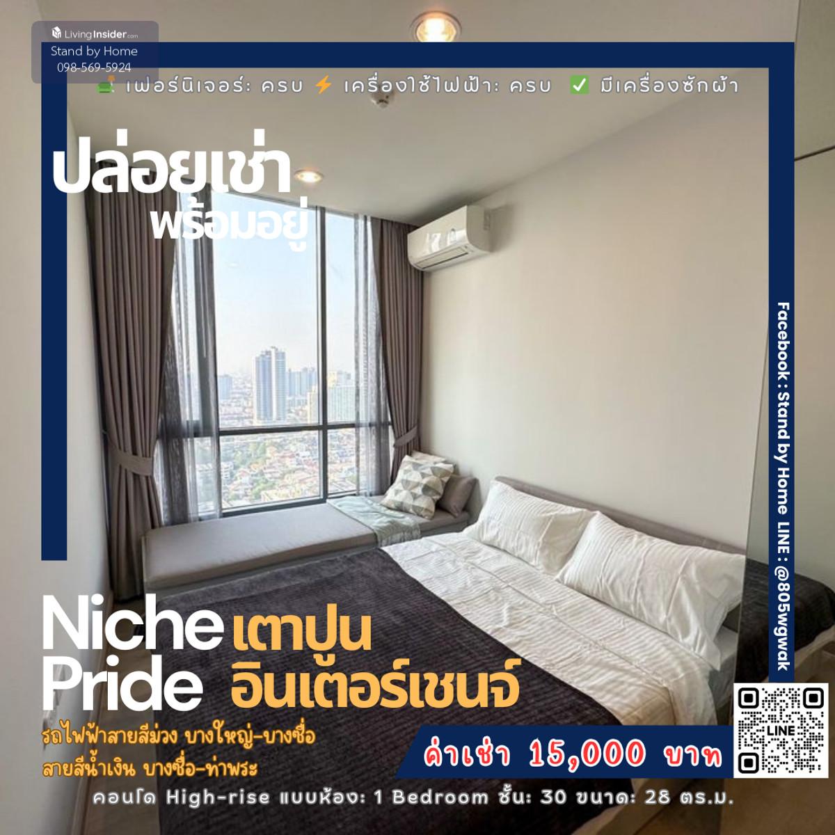 urgent! New room, beautiful, high floor, good view, location next to the real interchange - like this, it gets leaked very quickly Walk to MRT Tao Poon, connected to both blue + purple, very comfortable travel 📍 Project: Niche Pride Tao Poon Interchange 🚆 Near: 2 MRT lines (purple + blue) 🏢 Floor: 30 📏 Size: 28 Sq m 🛏️ Room type: 1 Bedroom 🏙️ Condo: High-rise 💰 Rent: 15,000 baht/month 📄 Contract: Minimum 1 year 🔐 Conditions: 2 month insurance + 1 month in advance 🛋️ Fully furnished Ready to move in ⚡ Complete electrical appliances including washing machine You can move in immediately ✔️ 💬 High floor room + location next to the interchange = Not available for a long time If you like it, hurry up and reserve an appointment to see the room — the viewing queue is getting crowded 🔥 📱 Contact number (Pay) LINE 💚 @805wgwak