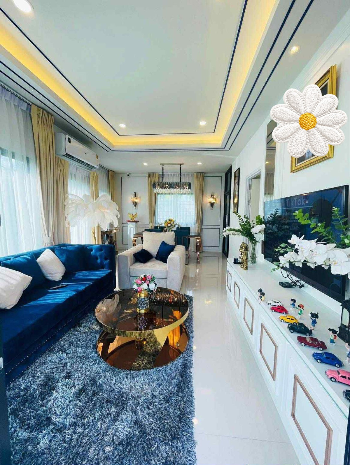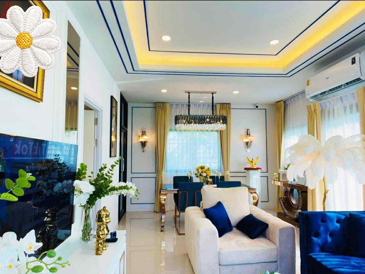 Single house for sale, decorated and ready to move in Grand Britannia Ramindra Ring Road, large land Near Chatuchot Expressway Bibury house type: usable area 160 sq m 4 bedrooms, 4 bathrooms, 1 living room, 1 family room 2 parking spaces, land 76 square meters, beautiful location plot, Phase 1 If interested, contact to make an appointment to see Khun Pipims house. Contact number
