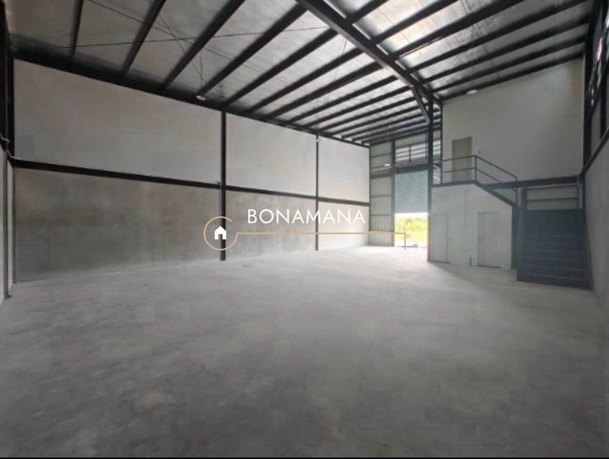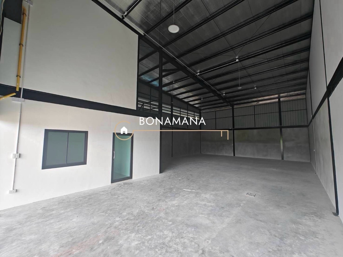 Warehouse for rent with home office (warehouse + office + residence) Phutthamonthon Sai 4 Newly built warehouse The front is next to the road , good location, can open a storefront or make an office wide and convenient parking space in front. Parking area 100-120 sq m., parking for 6-8 cars, accommodating large cars, container vans Total usable area approximately 282 sq m. Office space, 2 floors, 20 sq m each, total 40 sq m. Warehouse width 9 meters × depth 18 meters, no central pillar 2 bathrooms Rental price/month: 37,000 baht 2 months deposit, 1 month advance 3 year contract Rental price includes land and building taxes No common fees Water, electricity, regular royalty payments 3-phase electricity Warehouse height: 7.5m, clear, well ventilated Office height: 2.8 - 3m Spacious CCTV system around the warehouse Floor can support a weight of 1.5 tons Near the transportation center, Line 5, Line 4, Line 3 Entrance and exit roads can connect to many routes Connect Phutthamonthon Sai 4-5, Petchkasem Road, Borommaratchachonnani Road, Phutthasakhon Road - to Mahachai, New Prannok - Phutthamonthon Sai Road. 4 If interested, contact Khun Tang: Contact number Line ID: @bonamana Whatsapp: Contact number