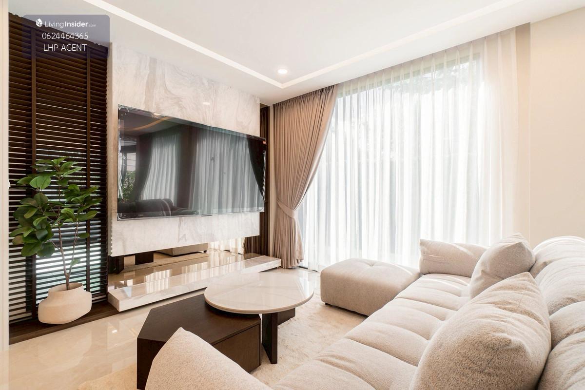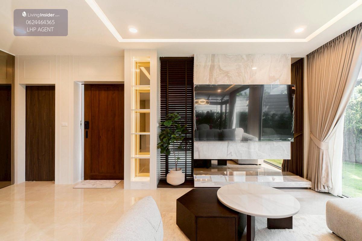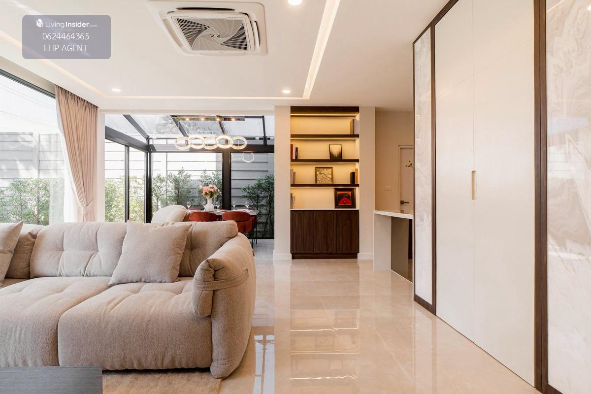 Baan Klang Muang The Edition Srinakarin - Suan Luang House area 57 sq m. - Usable area 240 sq m. - House facing south - 3-story twin house, width 9.8 meters - New house, just finished decorating, no one has ever lived in it - House at the end of the alley / House on the side where there is no light pole in front of the house - 2 bedrooms ( 1 Large bedroom, 1 medium sized bedroom - 1 private movie room with 100 inch projector screen (can be made into an additional bedroom) - 1 office room (can be made into a small bedroom) - 4 bathrooms - There is a side garden in the house - Can park 2 cars - The front door is electric + electric curtains Electrical appliances and complete furniture decorated with good materials 🎯 Nearby places - MRT Sri Udom 6.7 km. - Suvarnabhumi Airport (BKK) 11 km. - Mega Bangna 7.6 km. Tel. Contact number