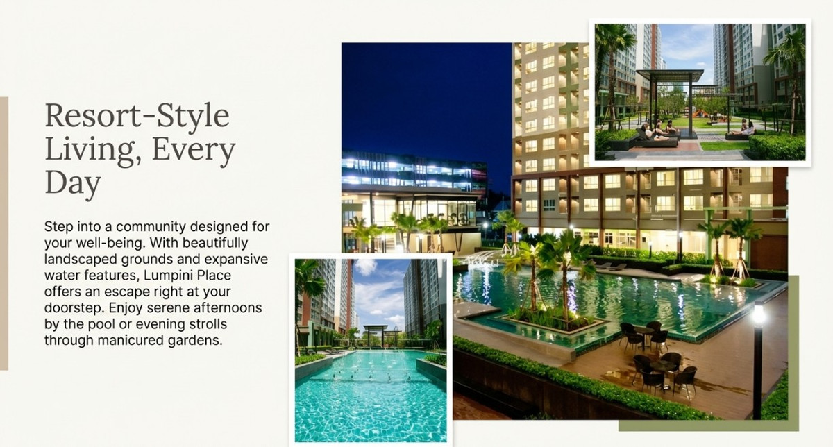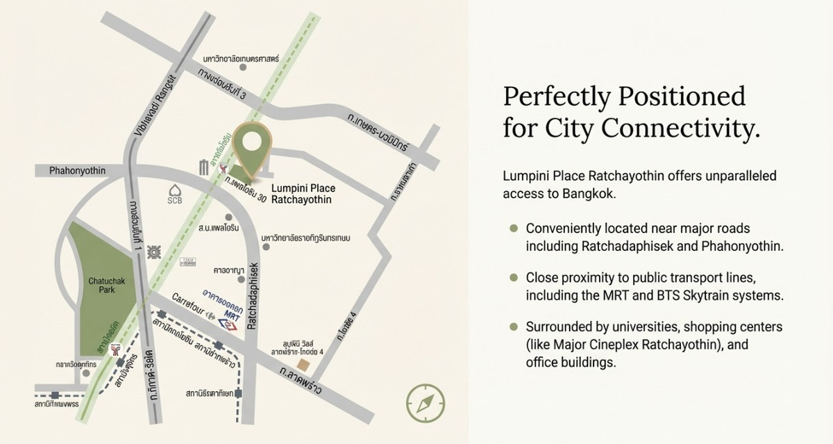 🌿 Condo for rent Lumpini Place Ratchayothin 15th floor | Garden view | Fully Furnished premium | Next to BTS Ratchayothin | Ready to move in 6 Jan. 2026 🏠 Room details Size 29 sq m. | 1 bedroom, 1 bat