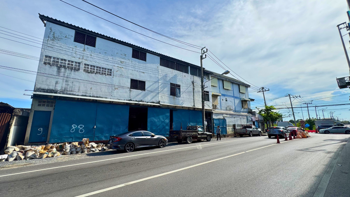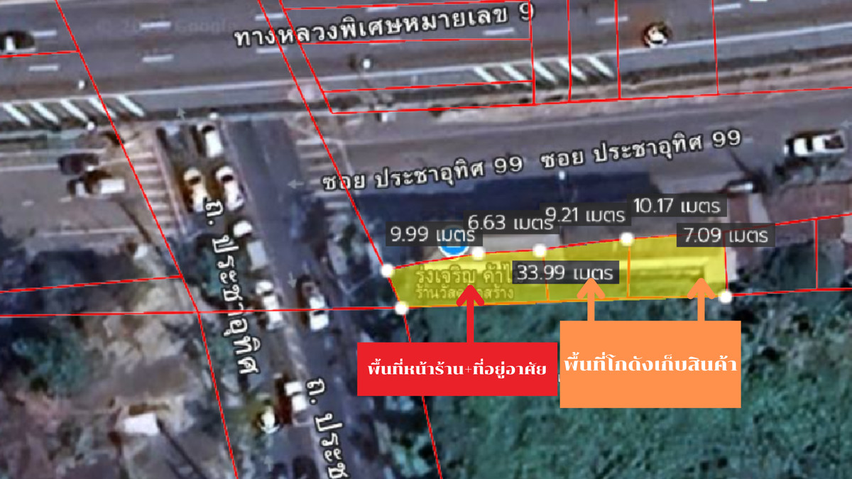 For sale/rent a 3-storey commercial building with a warehouse, area over 52.8 square wah, located at the corner of Pracha Uthit main road and Soi Pracha Uthit 99, road along the Kanchana Ring Expressway Property code: M2704 Property details 3-story commercial building with warehouse , total area 52.8 square wah (title deed includes 3 plots) In front of the building is a wood and construction materials store. 2nd and 3rd floors are residences, 3 bedrooms, 2 bathrooms . Behind the building is a warehouse. The usable area of the warehouse is approximately 208 square meters . You can park your car next to the building. Parking for about 6-7 cars Can sell the same type of products or be renovated into a residence and other businesses Special! The building has been purchased. The building has extra income from renting out advertising signs. (Currently has income from renting billboards 1x,xxx baht/month) Nearby places Near the Kanchanaphisek Expressway / Chalerm Mahanakhon Expressway / Industrial Ring Road Talad Thip Plaza Big C Suksawat Bang Pakok Hospital Sarasas Witaed Suksa School Coordinates https://maps.app.goo.gl/vZAzGW2Z4Eg6V9S79 Selling price 9,900,000 baht Rental price for all 3 units 130,000 baht/month Warehouse 30,000 per room Baht/month Interested in making an appointment to see the place? Ready to contact for free loans. Contact Kit Contact number ID Line : kritr1