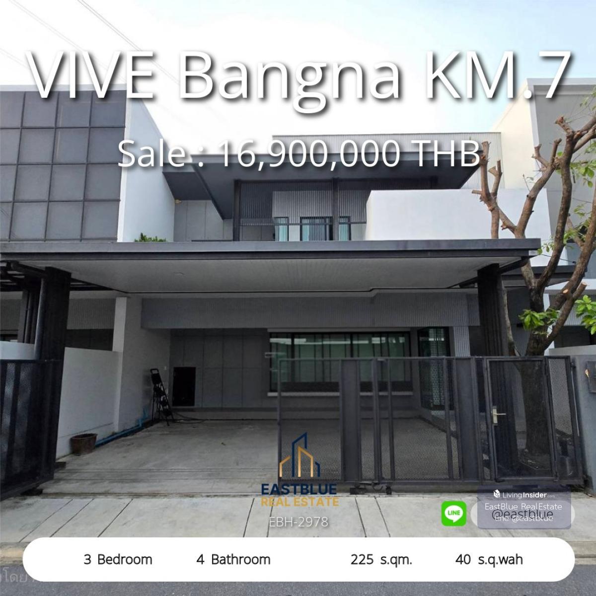 Project : VIVE Bangna KM.7 ID : EBH-2978 3 Bed 4 Baht House Area :225 sqm Land Area :40 sq.wah Rental Price : 85,000 THB per month Selling Price : 16,900,000 THB . ิติดต่อ Contact, Appointment for vie