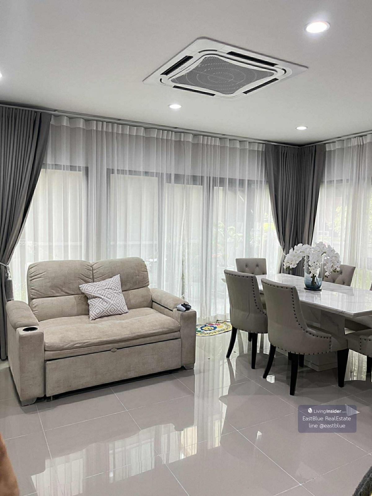 Project : THE EDITION RAMA 9-Krungthep kreetha ID : EBH-3733 4 Bed 4 Baht House Area :219 sqm Land Area :36.2 sq.wah Rental Price : 70,000 THB per month Selling Price : THB . Contact, Appointment for viewing. call: Contact number WhatsApp: Contact number - Eastblue, we are a team of professional real estate agents. that has been trusted with total sales worth several billion baht With a team of consultants who are experts in buying, selling and investing in real estate. . See more than 50,000 other properties, explore over 50,000 listings on our website: https://www.eastblueth.com ❗️❗️not accept co-agent❗️❗️ . THE EDITION RAMA 9-Krungthep kreetha 3-story semi-detached house, 4 bedrooms, 4 bathrooms, 2 parking spaces. Usable area 219 sq m., land size 36.2 sq m. House details • New house, good condition, ready to move in. • Located on the main road of the project, easy to enter and exit. • The front of the house is wide. Garage roof completed • The area around the house is spacious. Suitable for families Highlights of the project and house • Quiet project High privacy • Good location near Rama 9, Krungthep Kreetha, Ramkhamhaeng. • Krungthep Kreetha Zone Do not experience flooding problems • Home automation system controls lights, doors, automatic plant watering system. • Air pressure system on floors 1 and 2 helps purify and fill the air well. • Fully furnished, 55-inch TV, 6-foot bed, 4 air conditioners. • Built-in kitchen, 4-burner electric stove, range hood. • With washing machine/dryer included. Water filter, recliner sofa Nearby places • The Nine Rama 9, 7.5 km. away. • The Mall Bangkapi, 6.2 km. away. • Samitivej Srinakarin Hospital, 5.8 km. away. • NIST International School, 4.0 km away. • Suvarnabhumi Airport, 19 km. away. Rental price • 70,000 baht/month (1 year contract) • 80,000 baht/month (6 month contract) Good location house Complete with functions Answering the needs of family life and work in Rama 9 Krungthep Kreetha #House for rent #THEEDITIONRAMA9 #Semi-detached house #Rama 9