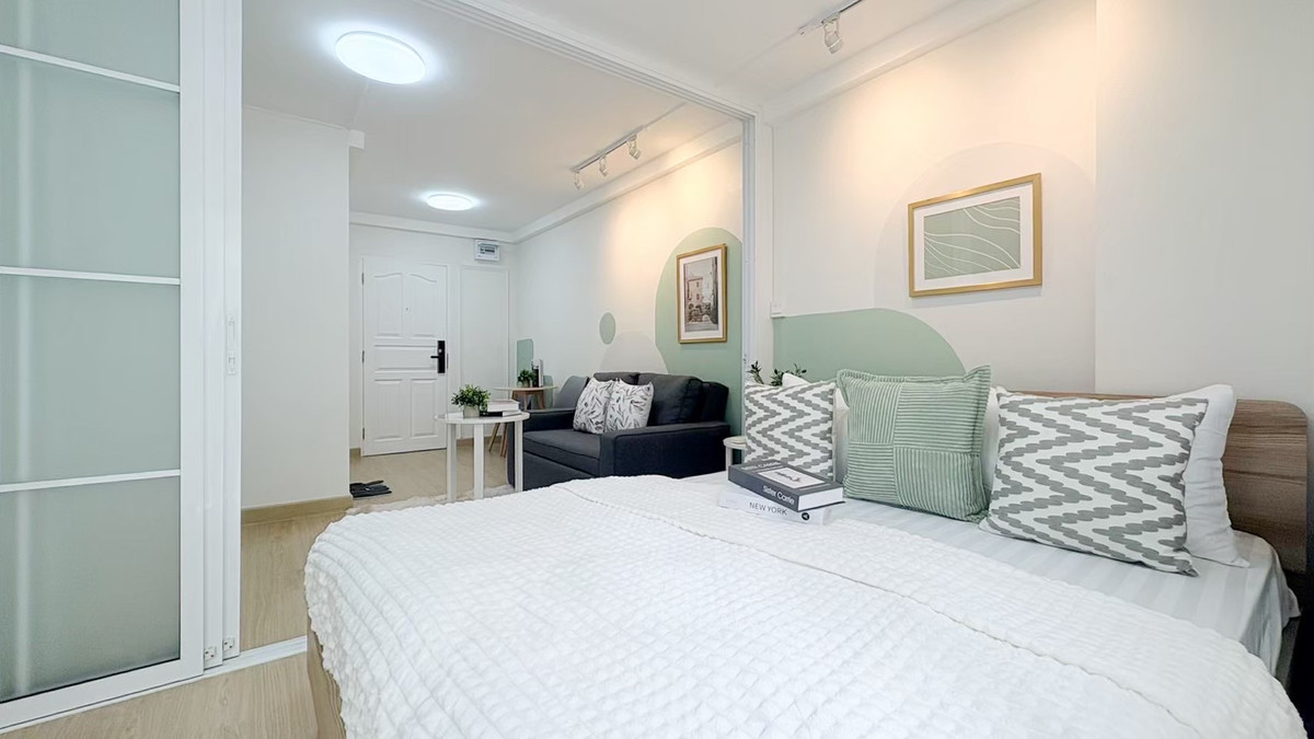 🏡 Condo ready to move in near you! Convenient travel Connect many routes Dont worry about traveling! 🎉 Start a good life, easy installments, only 5,xxx baht/month ✨ Beautiful room, fully decorated, furnished, ready to move in immediately! Project: Family Park Lat Phrao 48 (Family Park Lat Phrao 48) • Room type: 1 bedroom, 1 bathroom, 1 relaxation/living area • Size: 28 square meters • Common expenses: only 30 Baht/square meter • Highlights: The room is decorated in a minimalist style, beautiful and perfect, ready to move in with all functions • Location: The project is located in Soi Lat Phrao 48, easy to enter and exit 🛋️ Complete facilities in the project • Security system: 24-hour security guard • Entry-exit: Key Card System (Key Card Access) • Common areas: Swimming pool and exercise room (Fitness) • Convenience: Convenience store Within the project • Others: parking and elevator facilities.