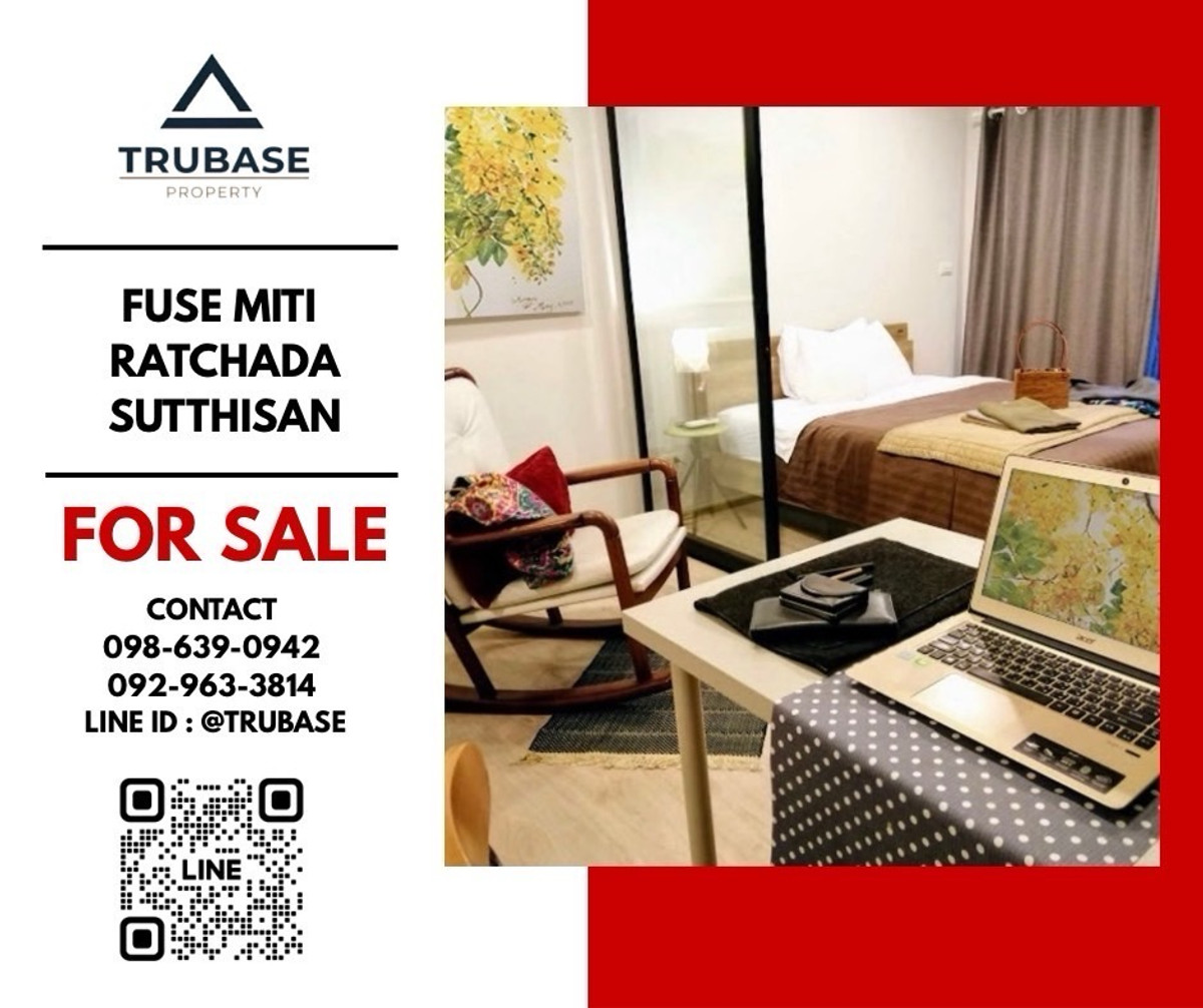 Property code: TBEL12 📍 Fuse Miti Ratchada-Sutthisan near MRT Sutthisan 🚆 Suitable for the new generation who likes unique condos. Use the center a lot. and like the liveliness of the Suthisan-Ratchada area ✨🏙️ Type: Studio | 1 bathroom Size: 29 sq m Floor: 5 🔥Special price only: 2,280,000 baht🔥 Ask for more information | Make an appointment to view the room ❇️ Contact us ❇️ 📱 Contact number / Contact number 💬 Line Official ID : @trubase 🔗 Line Official Link : https://line.me/R/home/profile?id=@trubase