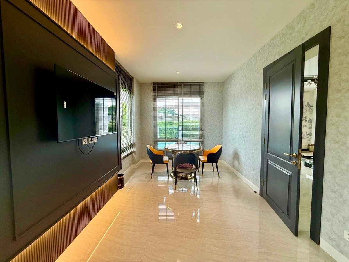 Perfect Masterpiece Rama 9 - Krungthep Kreetha is a Super Luxury single house project , suitable for those who want a large house. Elegant, modern design in a location with easy access to the city center 🚝 Near the Orange Line Rat Phatthana Station 🛣️ Near the expressway ✈️ Near Suvarnabhumi Airport 🛒 Near Big C Romklao Department Store 🏫 Near Wellington International School 🏫 Near Brighton International School PROPERTY CODE : POJ 664 :: House details :: 🔸2-story detached house 🔸Land size 202 sq m. 🔸Usable area 700 sq m. 🔸House facing south, beautiful corner plot 🔮 Designed according to Feng Shui principles ❤️ 🔸5 bedrooms | 6 bathrooms 🔸Living room 1 Room 🔸1 Dining room 🔸2 Kitchen rooms 🔸1 Office room 🔸Large maids room Maids bathroom 🔸Pantry room 🔸Large storage room 🔸Basketball court and English garden ⭐️ Built in + Furniture throughout the house ⭐️ @@@@@@@@@ 🩷🏠🩷 @@@@@@@@@ 🔥🔥🔥 Rent 650,000 baht/month 🔥🔥🔥 ✅ 1 month advance rent ✅ 2 month security deposit ✅ 1 year rental contract 🎯🎯🎯 In the case of "tenant" paying 1 year rent in advance ✅ Rent 600,000 baht/month 🎯🎯🎯 In the case where the "tenant" pays rent for 2 years in advance ✅ Rent 500,000 baht/month @@@@@@@@@ 🩷🏠🩷 @@@@@@@@@ :: Facilities in the project :: 📍Luxury clubhouse 📍Park 📍24 hrs security system 😊 Interested? Request an appointment to view this property. Please notify appointment 1 day in advance. Contact Mr. Nichanan / NiCHANAN TEL :: Contact number LiNE iD :: Jaiisaisai 💕🏠 NiCHANAN PROPERTY 🌇💕 🌟Accepting consignment for sale/rent. All types of real estate 🌟 Any customers interested in this property 🌟 Please screenshot PROPERTY CODE : POJ 664 of this property Please contact via Line