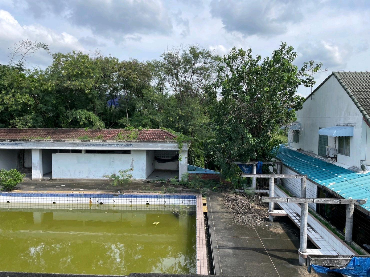 Sell ​​/ rent land with building New Theparak Road Watcharaphon-Phahonyothin Soi Phahonyothin 52, Theparak 45, Sai Mai District, Bangkok Land with 1 two-story building and one 1-story building with 1 50 meter swimming pool, 1 small swimming pool, building next to the road on both sides. Only 100 meters from the new Theparak Road near the newly built Makro, Theparak Road, 2 kilometers from the BTS Green Line, Sai Yut Station and Saphan Mai Station, Phahonyothin Road Area 631 square wah, behind the building there is a parking space of 200 square wah Rent only 60000 baht per month Sell for only 100000.- / square wah. If you need more space You can buy another area at the back, approximately 400 square meters In the future, the road is being turned over to expand the road. The land will be closer to Theparak Road. Now in the alley there are many real estate projects Contact Contact number