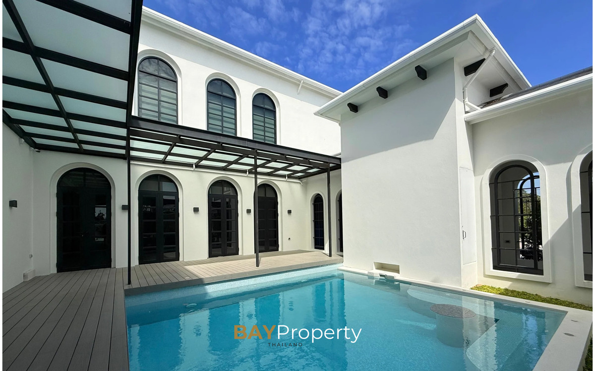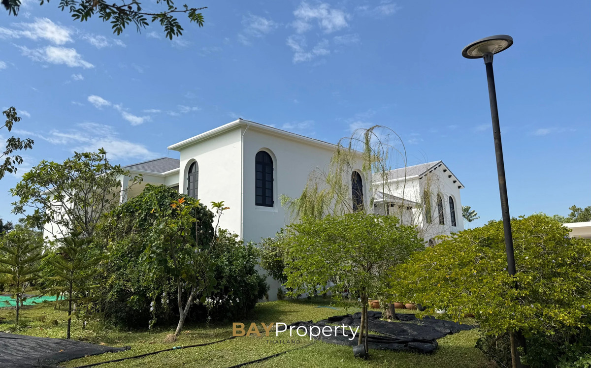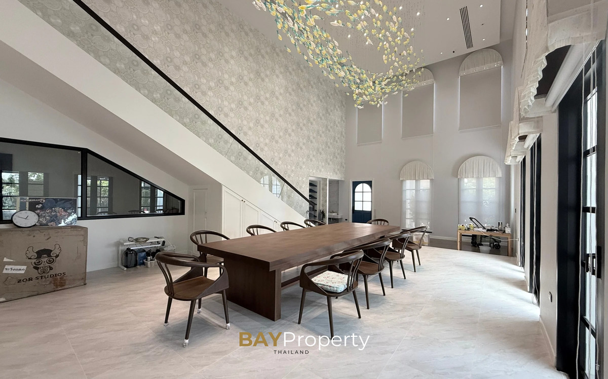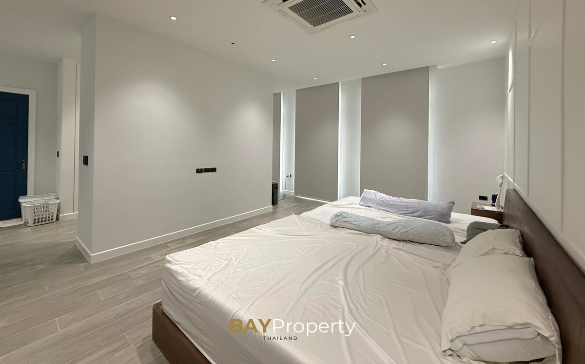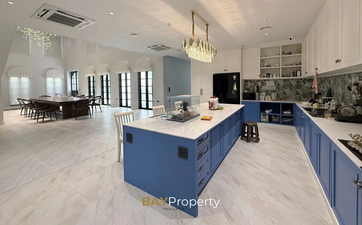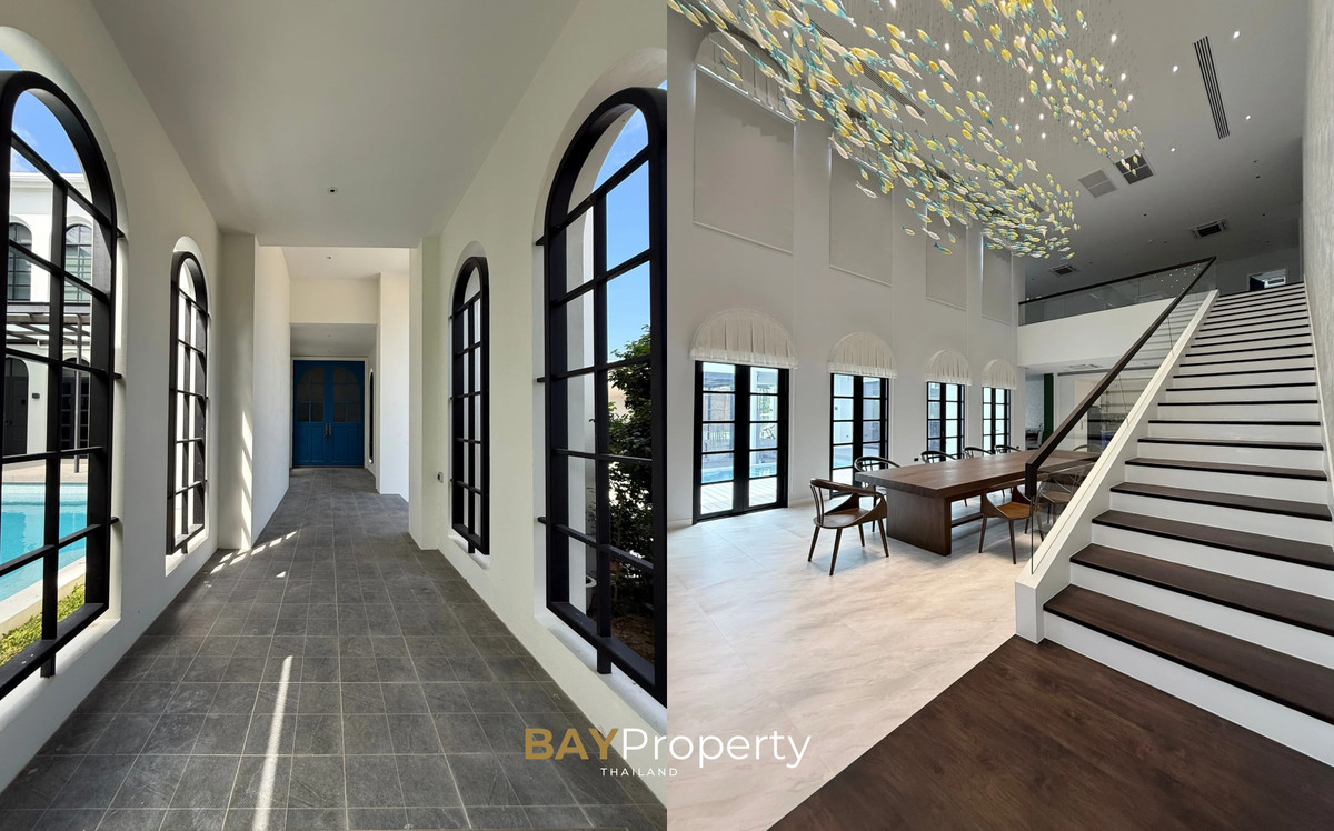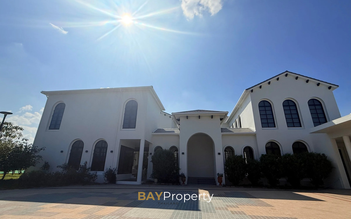 Luxury house for sale near Pattaya — Modern Italian Inspired on an area of over 6 rai 1 ngan 72 square wah. Special price: 109 million baht* A luxurious house inspired by the beauty of Italian architecture. Combining elegance and premium design. Convenient transportation, only 10 minutes from the motorway Upstairs 3 bedrooms | 3 bathrooms | 4 parking spaces + EV Charger This house comes with Premium built-in furniture and a wooden table in front of the house with specially made chairs. Value almost half a million baht Every piece of furniture and chandelier uses high quality materials. Shows the intention of the original owner of the residence House details: Facing northeast House area: 1,626 sq.m. Swimming pool: 38 sq.m. (salt system) Butlers house: 77 sq.m. Workshop area: approximately 38 sq.m. Modern Italian Inspired Style 3 bedrooms 3 bathrooms 1 dressing room walk-in closet 1 kitchen 1 large laundry room 1 Large living room 1 Large office 5–6 Multi-purpose room Parking for 4 cars Large garden Additional highlights: Complete water system including groundwater supply and private pond Beautiful garden around the house. Planting large trees, fruit trees, and fragrant flowering plants High security system with CCTV cameras around the house 24 hours a day Premium quality saltwater swimming pool Air conditioning in the whole house, built into the ceiling and central air conditioning. Energy saving Location: Pong Subdistrict, Bang Lamung District Chonburi Province Contact : BAY Property Thailand - Call : Contact number - Line : https://lin.ee/yqLHmvc - Whatsapp : Contact number