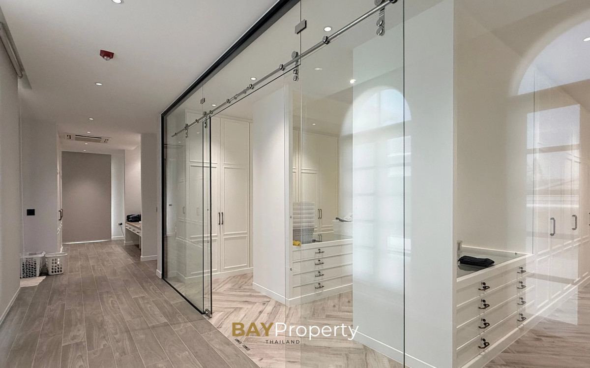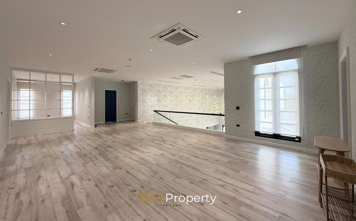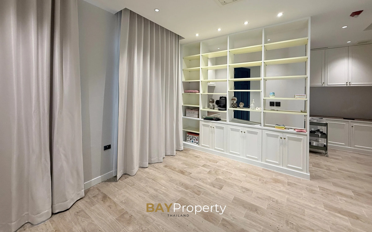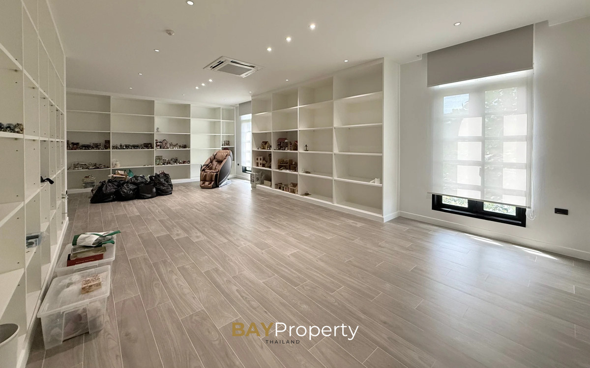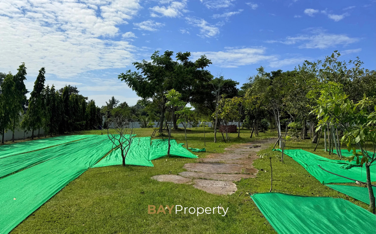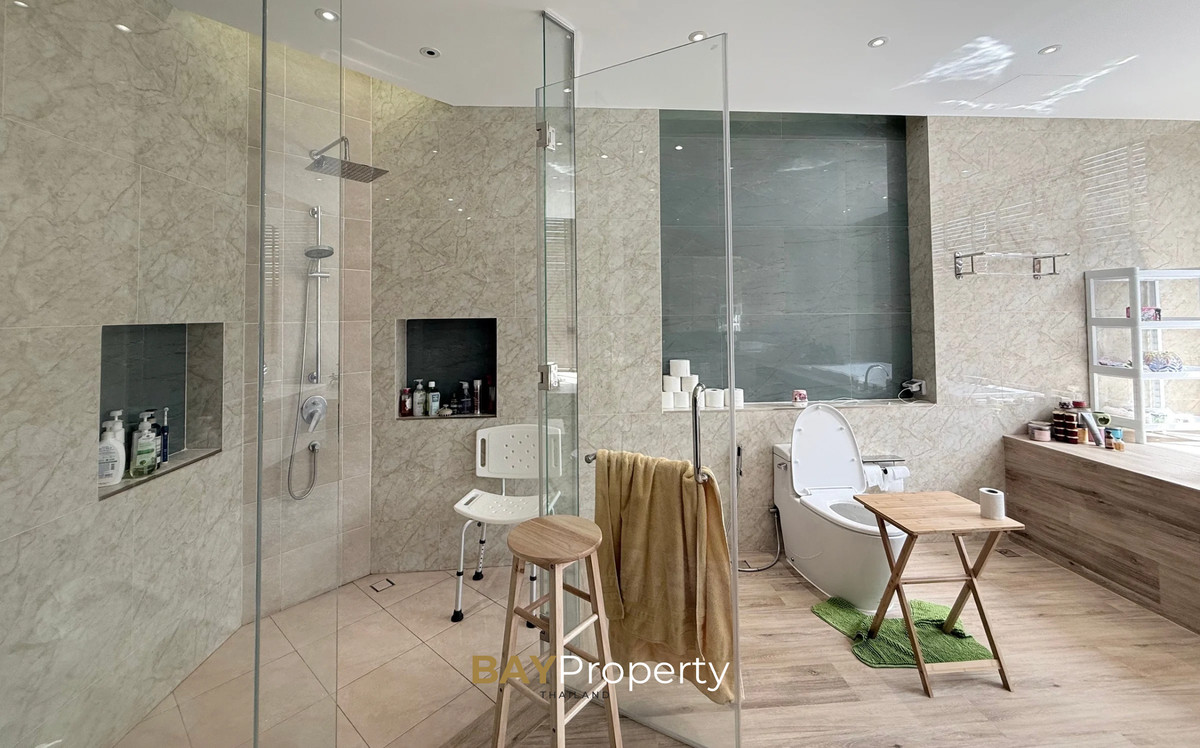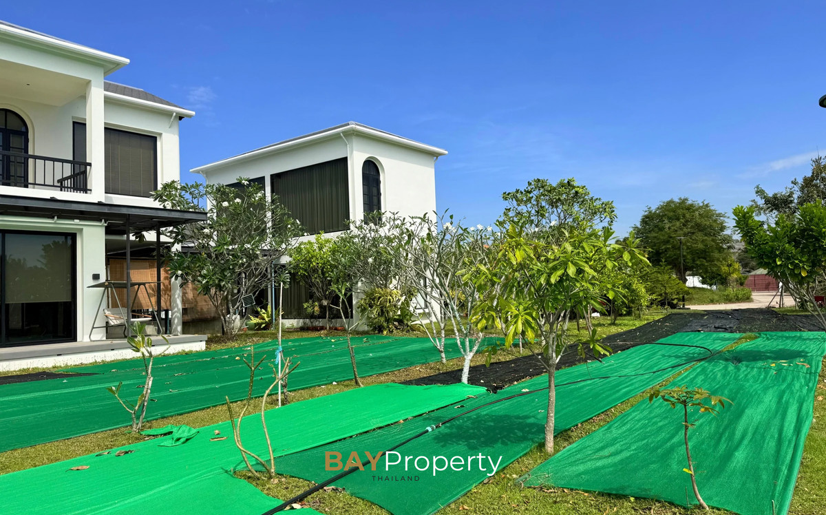 Luxury house for sale near Pattaya — Modern Italian Inspired on an area of over 6 rai 1 ngan 72 square wah. Special price: 109 million baht* A luxurious house inspired by the beauty of Italian architecture. Combining elegance and premium design. Convenient transportation, only 10 minutes from the motorway Upstairs 3 bedrooms | 3 bathrooms | 4 parking spaces + EV Charger This house comes with Premium built-in furniture and a wooden table in front of the house with specially made chairs. Value almost half a million baht Every piece of furniture and chandelier uses high quality materials. Shows the intention of the original owner of the residence House details: Facing northeast House area: 1,626 sq.m. Swimming pool: 38 sq.m. (salt system) Butlers house: 77 sq.m. Workshop area: approximately 38 sq.m. Modern Italian Inspired Style 3 bedrooms 3 bathrooms 1 dressing room walk-in closet 1 kitchen 1 large laundry room 1 Large living room 1 Large office 5–6 Multi-purpose room Parking for 4 cars Large garden Additional highlights: Complete water system including groundwater supply and private pond Beautiful garden around the house. Planting large trees, fruit trees, and fragrant flowering plants High security system with CCTV cameras around the house 24 hours a day Premium quality saltwater swimming pool Air conditioning in the whole house, built into the ceiling and central air conditioning. Energy saving Location: Pong Subdistrict, Bang Lamung District Chonburi Province Contact : BAY Property Thailand - Call : Contact number - Line : https://lin.ee/yqLHmvc - Whatsapp : Contact number