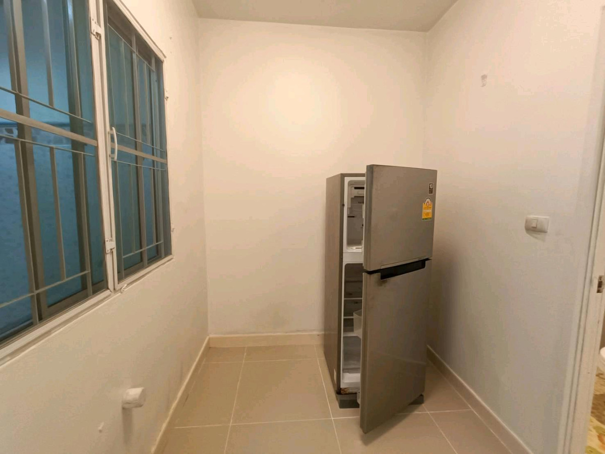 Townhome for rent, Pruksa Ville 56, next to Central Salaya , 2-story townhome, 20 sq m. , 3 bedrooms / 2 bathrooms / 1 kitchen / with large hall , parking lot. There is an awning roof with curtains al