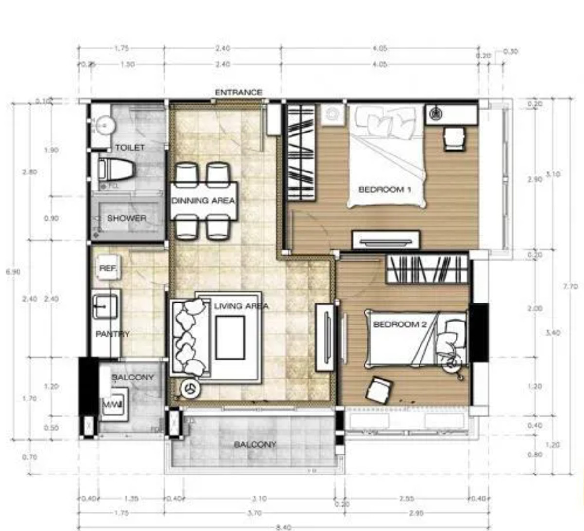 Floor Size 54 sq. m