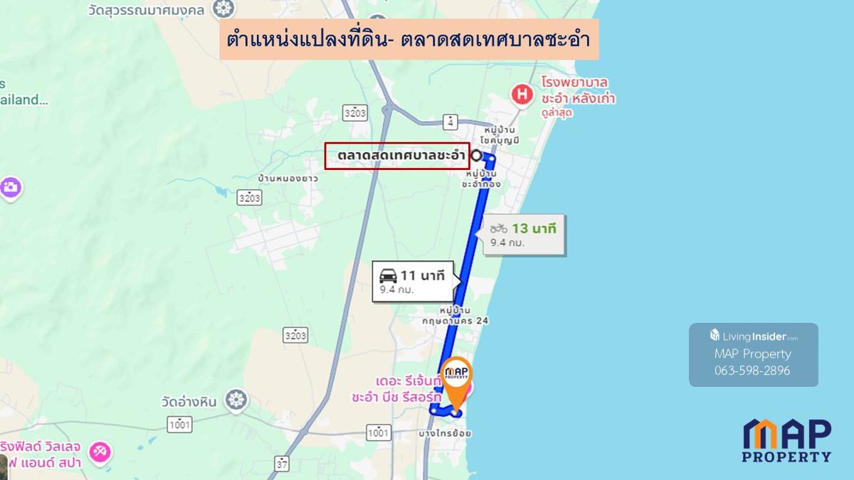 - Prime location in Cha-am, Soi Suk Samoe, known for its tranquility while maintaining convenient access to tourist attractions and restaurants. - Extremely close to the beach, just 220 meters away, allowing you to enjoy sea views and cool breezes every day. - Convenient access from multiple routes, only 800 meters from Phetkasem Road. - Ideal for building a private vacation home, small resort, pool villa, or homestay for rent. - A great investment opportunity as the beachfront location is expected to appreciate in value over time. - The land is located in a high-potential tourist area. - For more information, please contact 089.810.1282