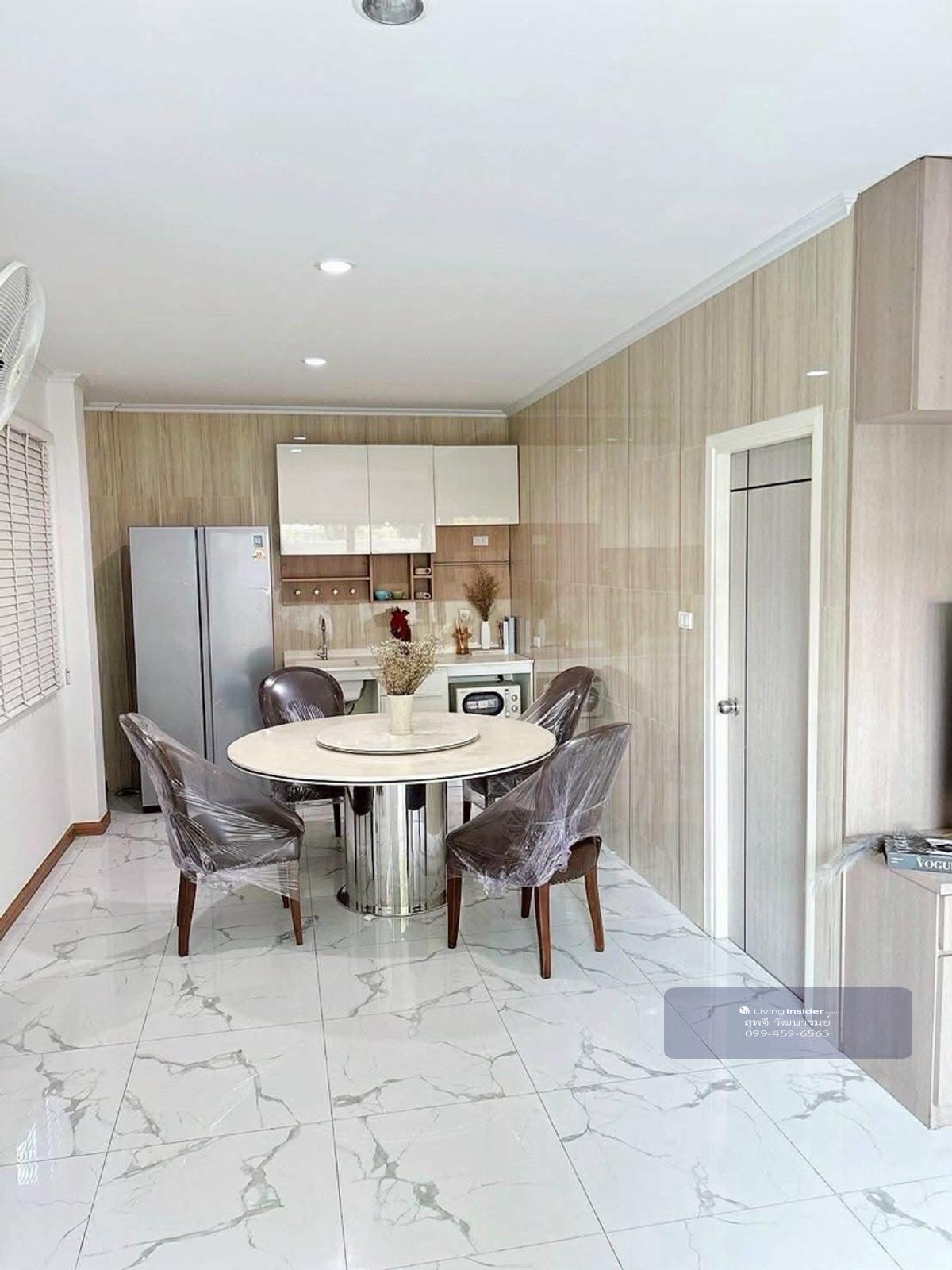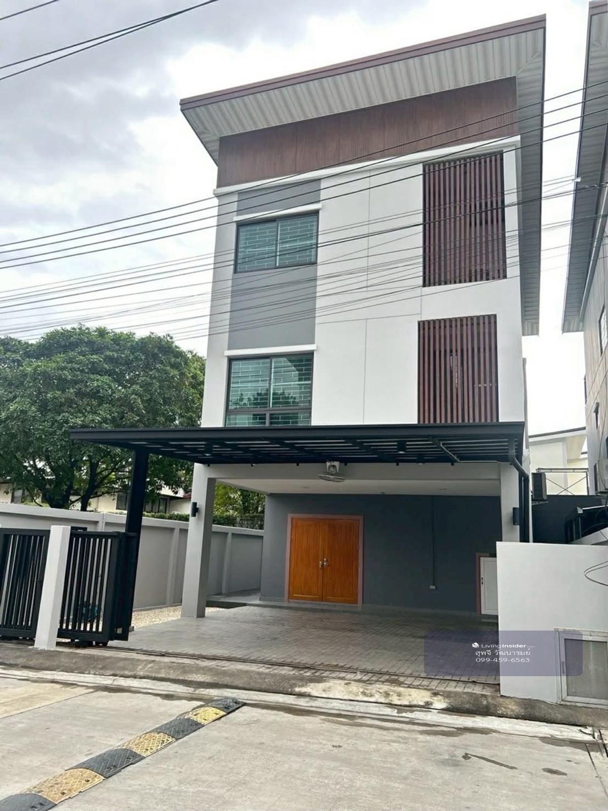 Pet-Friendly House for Rent, New Furniture at Siri House Ratchda 18 / Ladprao 80 Siri House 3-Story Detached House Land area 45 sq.wa., usable area 420 sq.m. 4 Bedrooms | 4 Bathrooms | 5 Air Conditioners 1 Living Room 1 Kitchen 1 Laundry Room 2 Parking Spaces Fully Furnished with Appliances Side yard space with a small front garden Beautiful view overlooking the swimming pool and garden Pets are allowed. Great location, convenient transportation: - Ladprao 80, Ratchada 18 - Near Ladprao 71 BTS station - Near Huai Khwang and Sutthisan MRT stations - Near Central Eastville, Central Rama 9, Central Ladprao, Lotus, HomePro, Makro, Big C - Ladprao Hospital, Vejthani Hospital, Rama 9 Hospital - Regent International School, SISB International School, and KIS International School Rent: 100,000 THB per month Contact: Kay Contact number WhatsApp: Contact number Line ID: @nextmovebangkok (with @ in front) or https://lin.ee/TLLmRq1