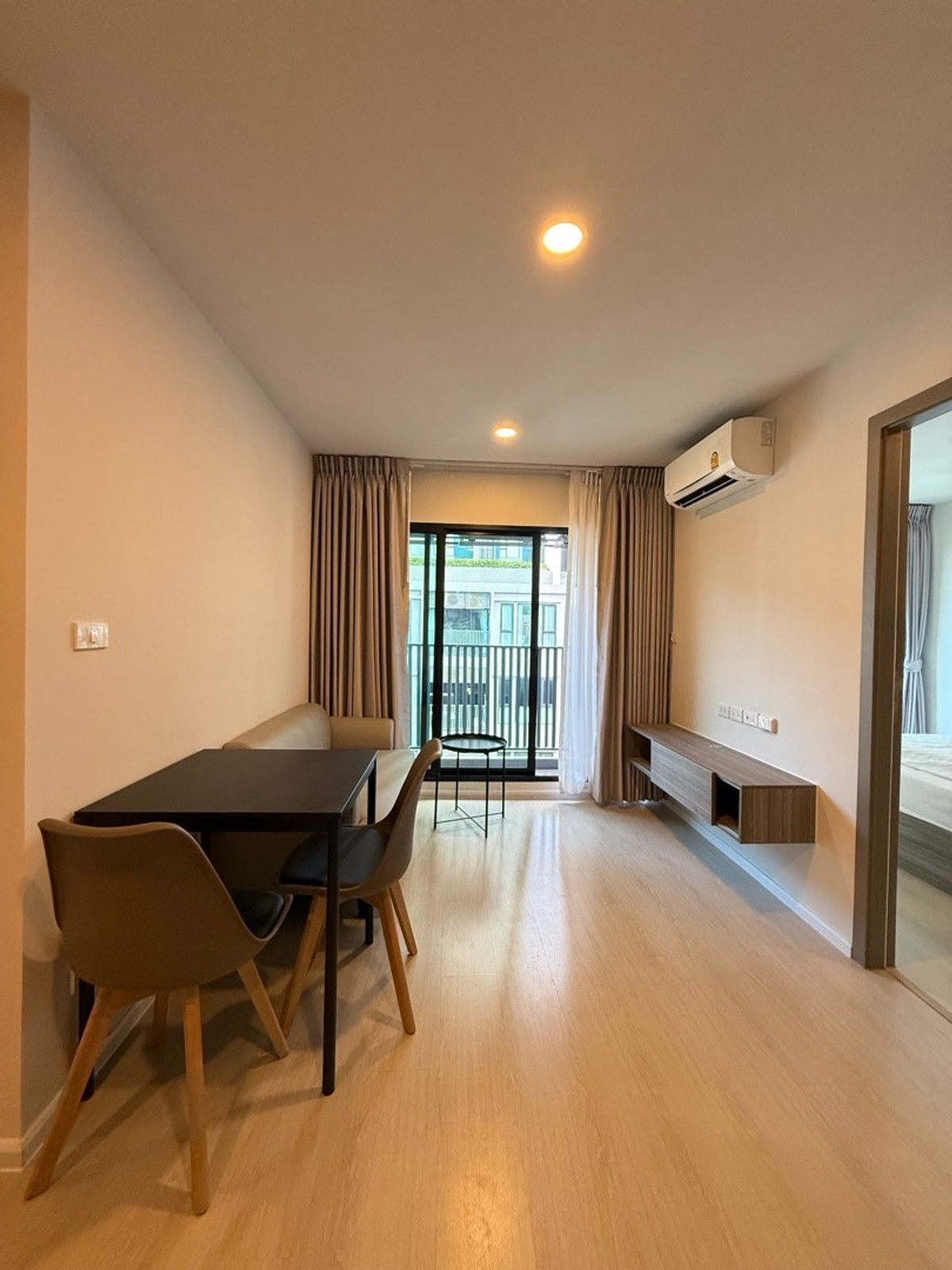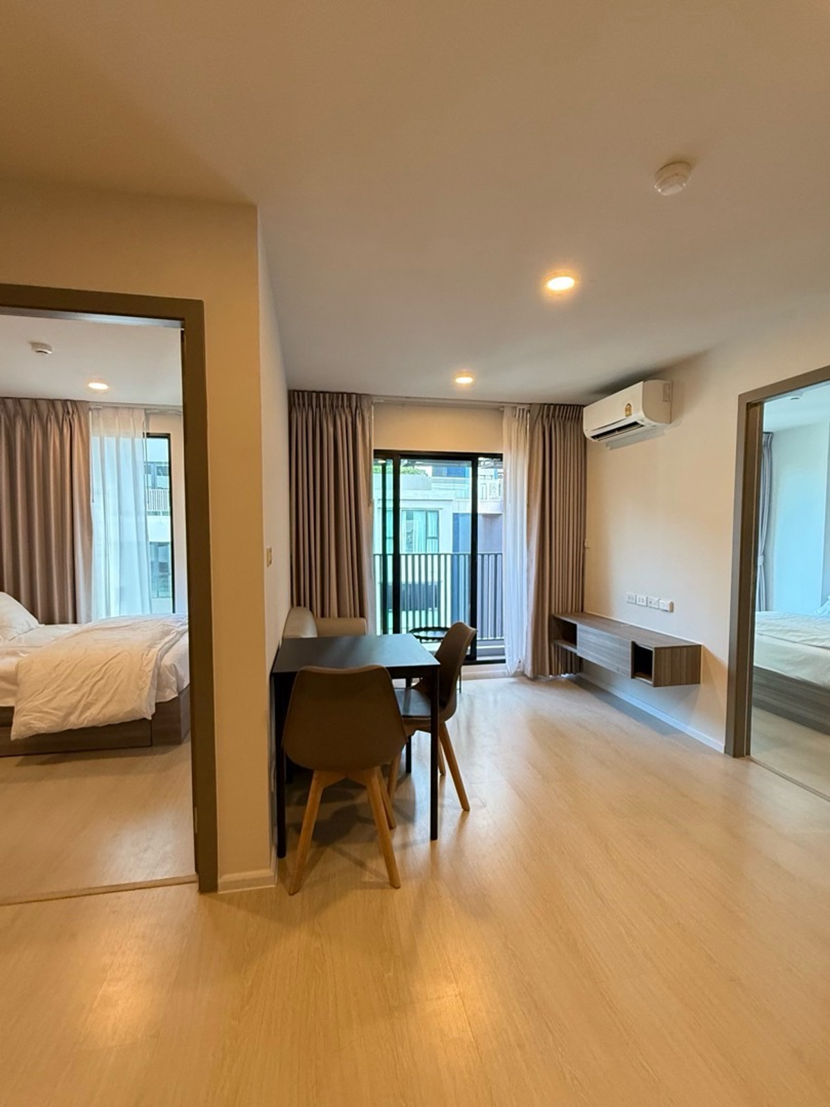 Last 2 Bedroom 2 Bath with FURNISHED Highest 8th floor with garden view in the project (8 FL)🌳 Open-Kitchen concept room, hard to find Separated bedroom with ensuite bathroom Decorated with basic furniture **Transfer within the end of the year. Free new electrical appliances, plus 5 items 📍The Origin Ramintra 83 Station Low-rise Style Resort Condo - Close to the BTS, just 70 meters, 3 minutes walk to, Ramintra Station Km. 9 - 1 station to travel to Fashion Island - Opposite Synphaet Hospital.