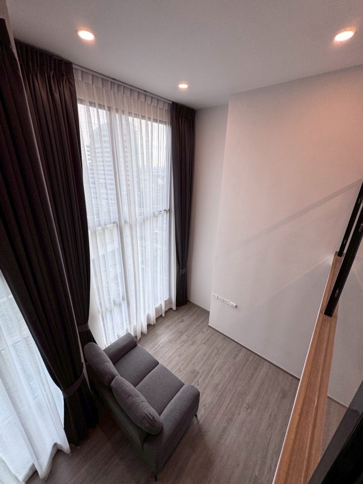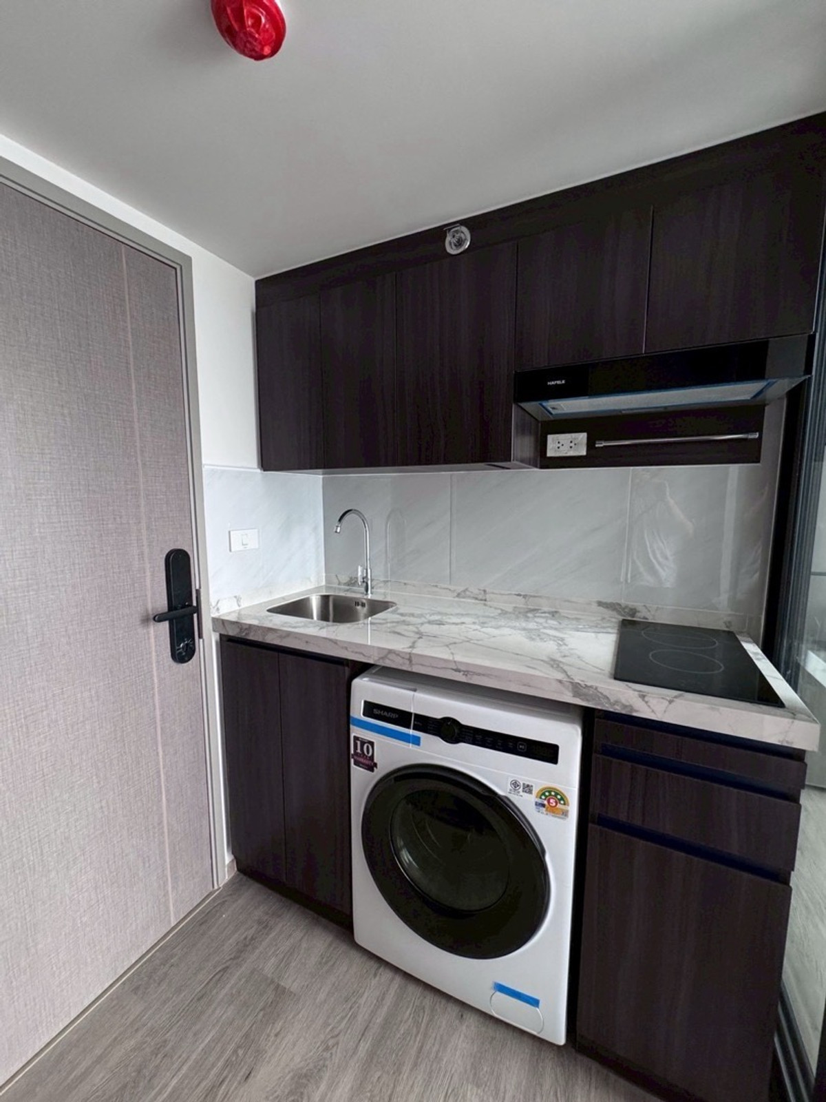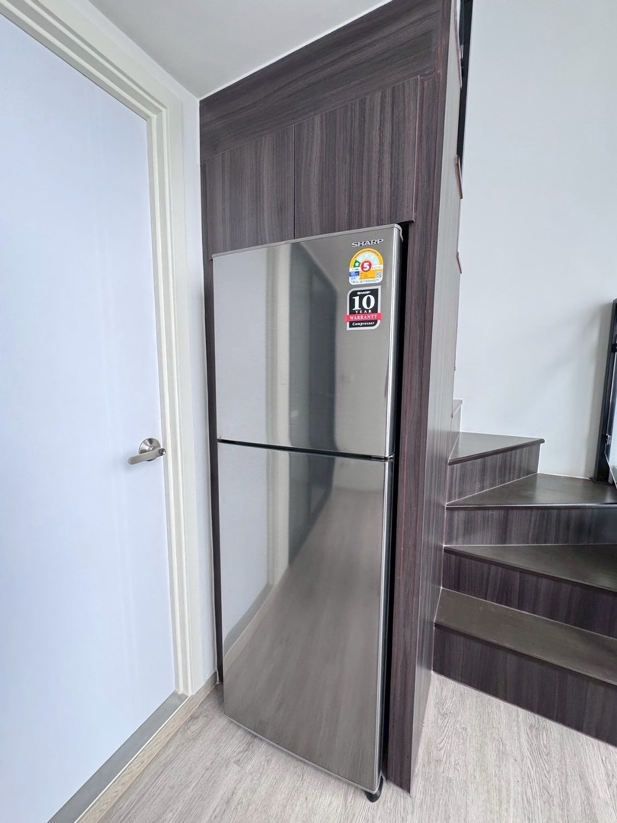New condo for sale! Ceiling height 4.2 m. DUO SPACE next to the BTS Pink Line Origin Plug & Play Ramintra Corner room, facing out, city view, Building A, 9th floor, area 21.67 sq m. Comes with another 10 sq m mezzanine, new original room. Ready to move in yourself and can be rented out With a good location - near 2 expressways, easy travel to the airport. Both Suvarnabhumi and Don Mueang - near Fashion Island Department Store - near Synphaet Hospital Ramintra - Near Mingmit Market, Ramintra KM.9 - Near The Alley Ramintra - Near KFC open 24 Hrs Ready to move in!! With various amenities - 29000BTU air conditioner - Refrigerator - Washing machine - Water heater - Microwave - Range hood - Electric stove - Kitchen apron wall - Curtain - Sofa - Table, chairs - TV shelf - 5 foot bed with 6 inch thick rubber mattress, Protective cover, 2 pillows