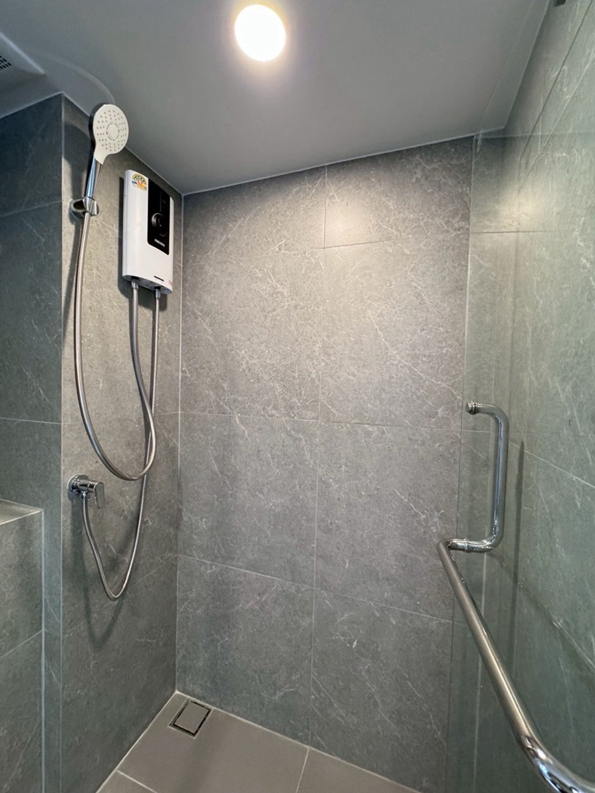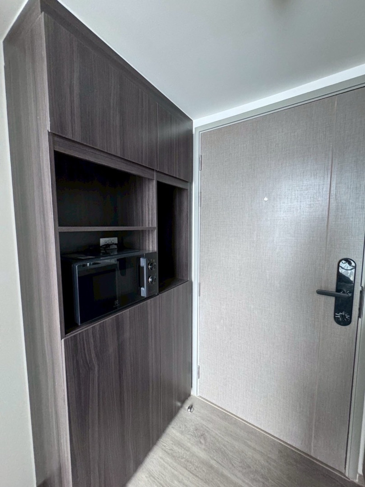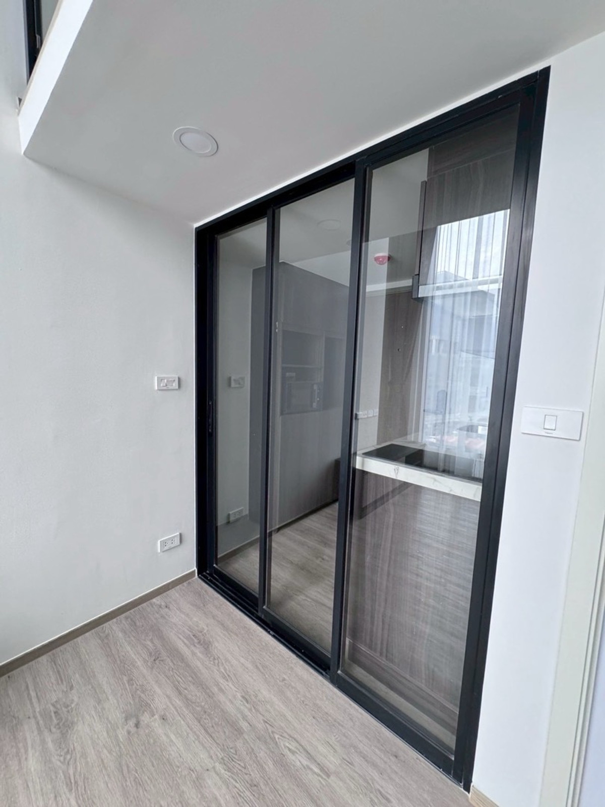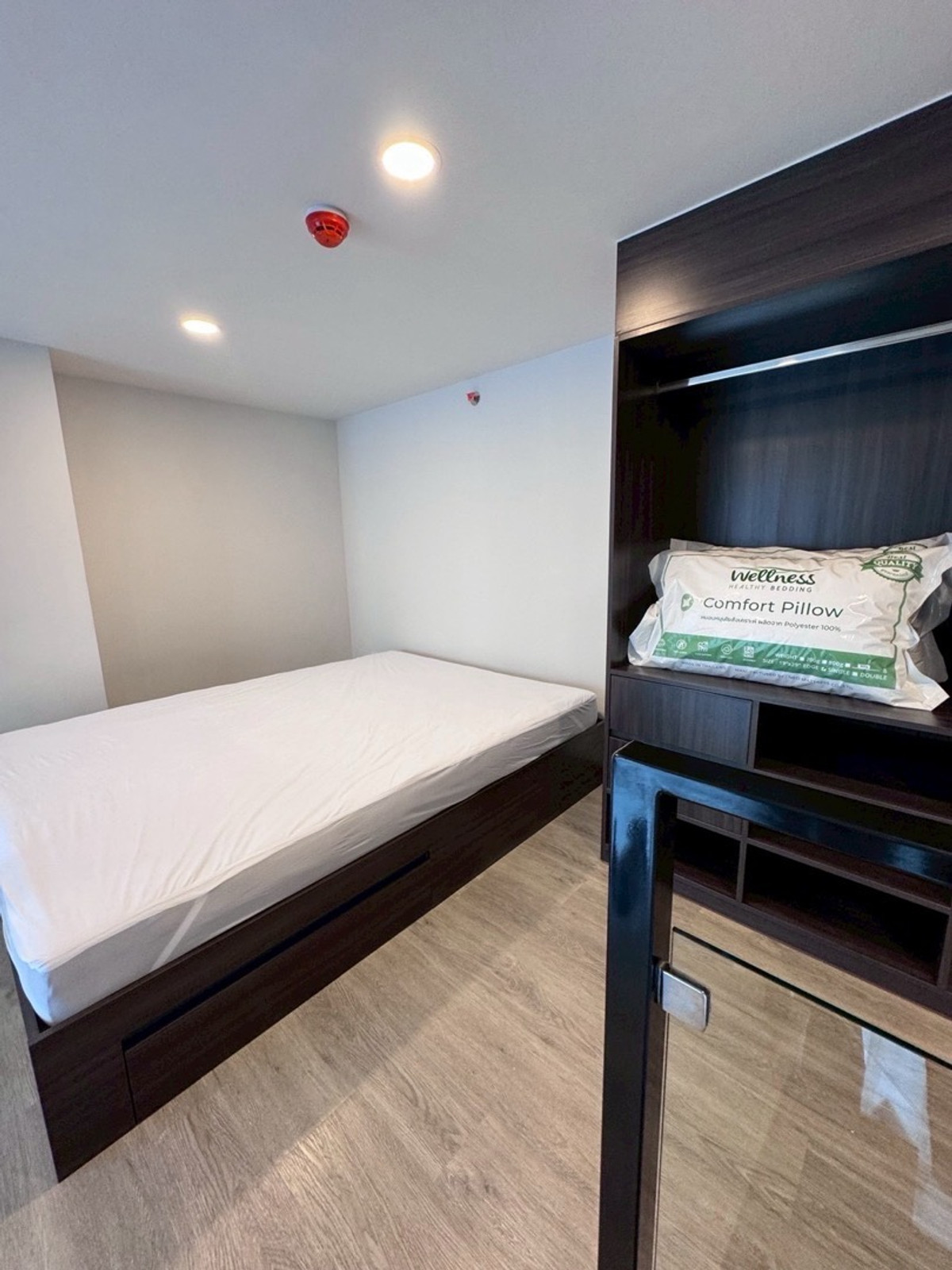 New condo for sale! Ceiling height 4.2 m. DUO SPACE next to the BTS Pink Line Origin Plug & Play Ramintra Corner room, facing out, city view, Building A, 9th floor, area 21.67 sq m. Comes with another 10 sq m mezzanine, new original room. Ready to move in yourself and can be rented out With a good location - near 2 expressways, easy travel to the airport. Both Suvarnabhumi and Don Mueang - near Fashion Island Department Store - near Synphaet Hospital Ramintra - Near Mingmit Market, Ramintra KM.9 - Near The Alley Ramintra - Near KFC open 24 Hrs Ready to move in!! With various amenities - 29000BTU air conditioner - Refrigerator - Washing machine - Water heater - Microwave - Range hood - Electric stove - Kitchen apron wall - Curtain - Sofa - Table, chairs - TV shelf - 5 foot bed with 6 inch thick rubber mattress, Protective cover, 2 pillows
