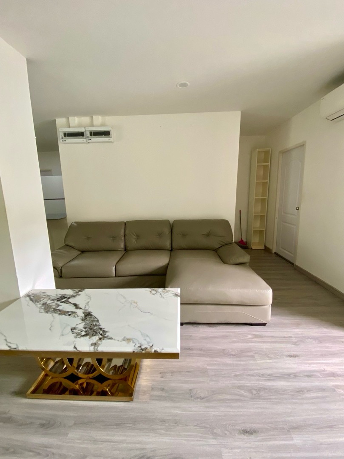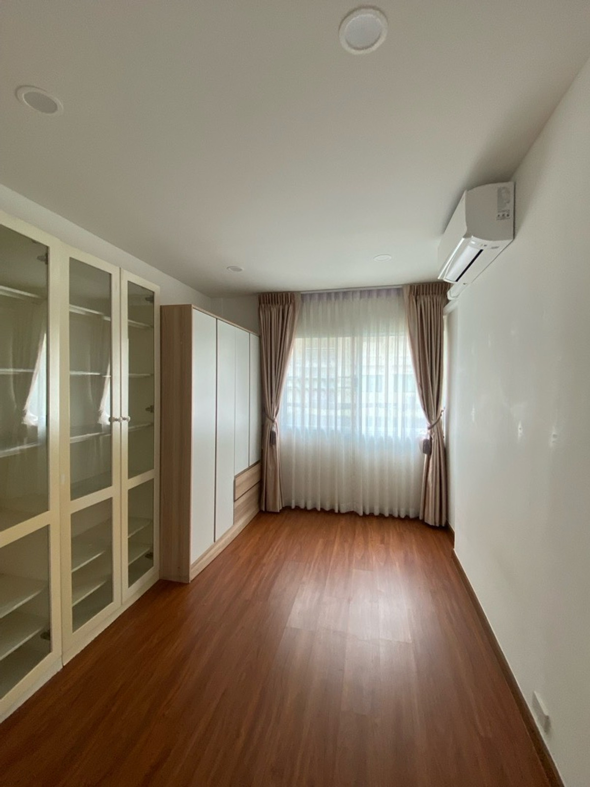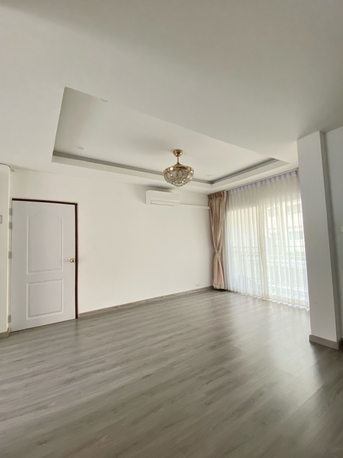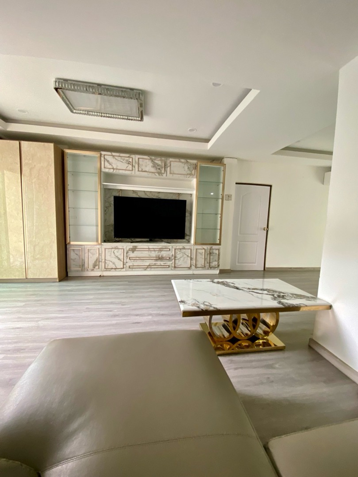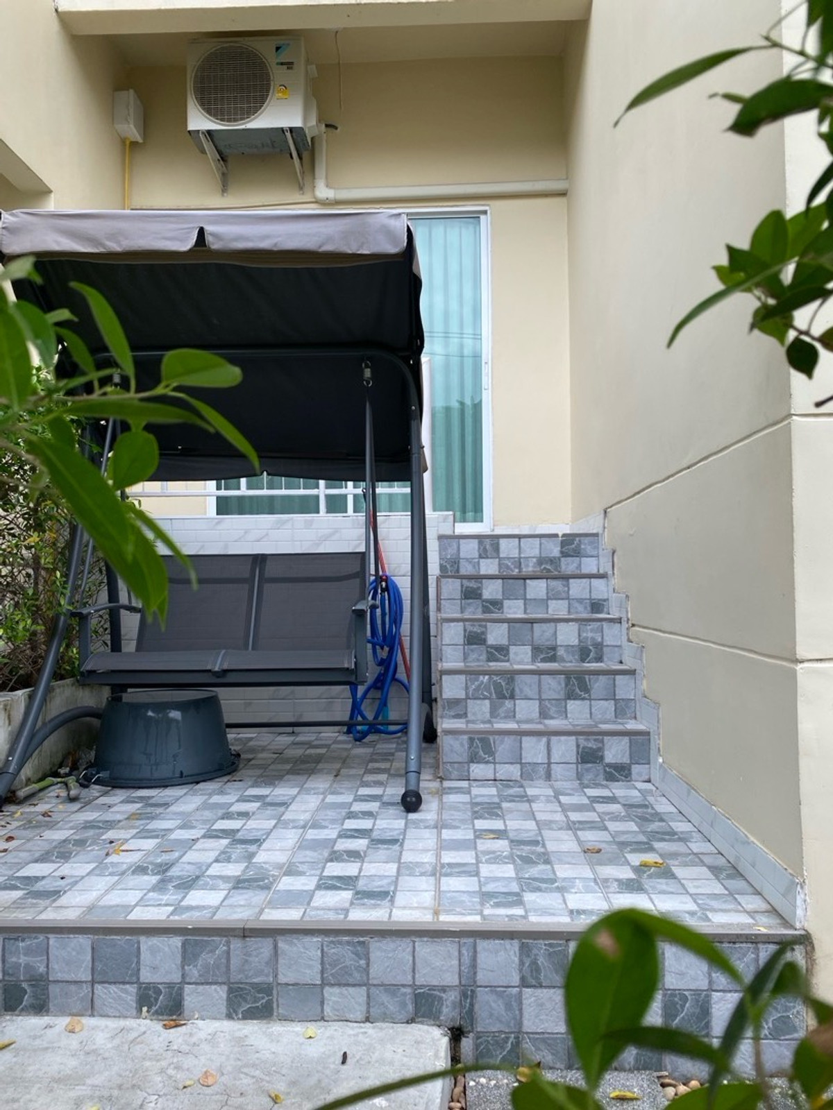 120 sq m condo near a shopping mall, 20 minutes from Suvarnabhumi Airport. Details: First floor condo with 3 bedrooms, 2 bathrooms, balcony and garden, and EV charging support. furniture included. Master bedroom bed and mattress Sofa Wardrobe 60-inch TV Washing machine and dryer system. Kitchen with stove and hood Refrigerator Air conditioning in all rooms Water heater Bathroom: Master bedroom has bathtub and shower Second bathroom with shower Pets friendly 4 parking is included