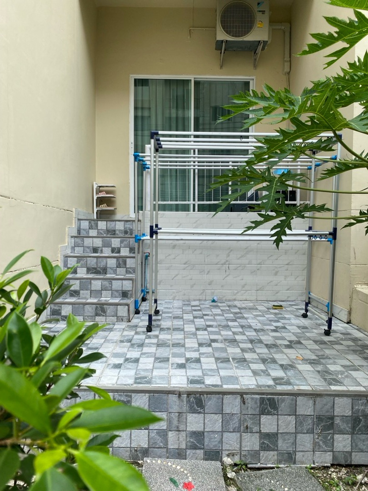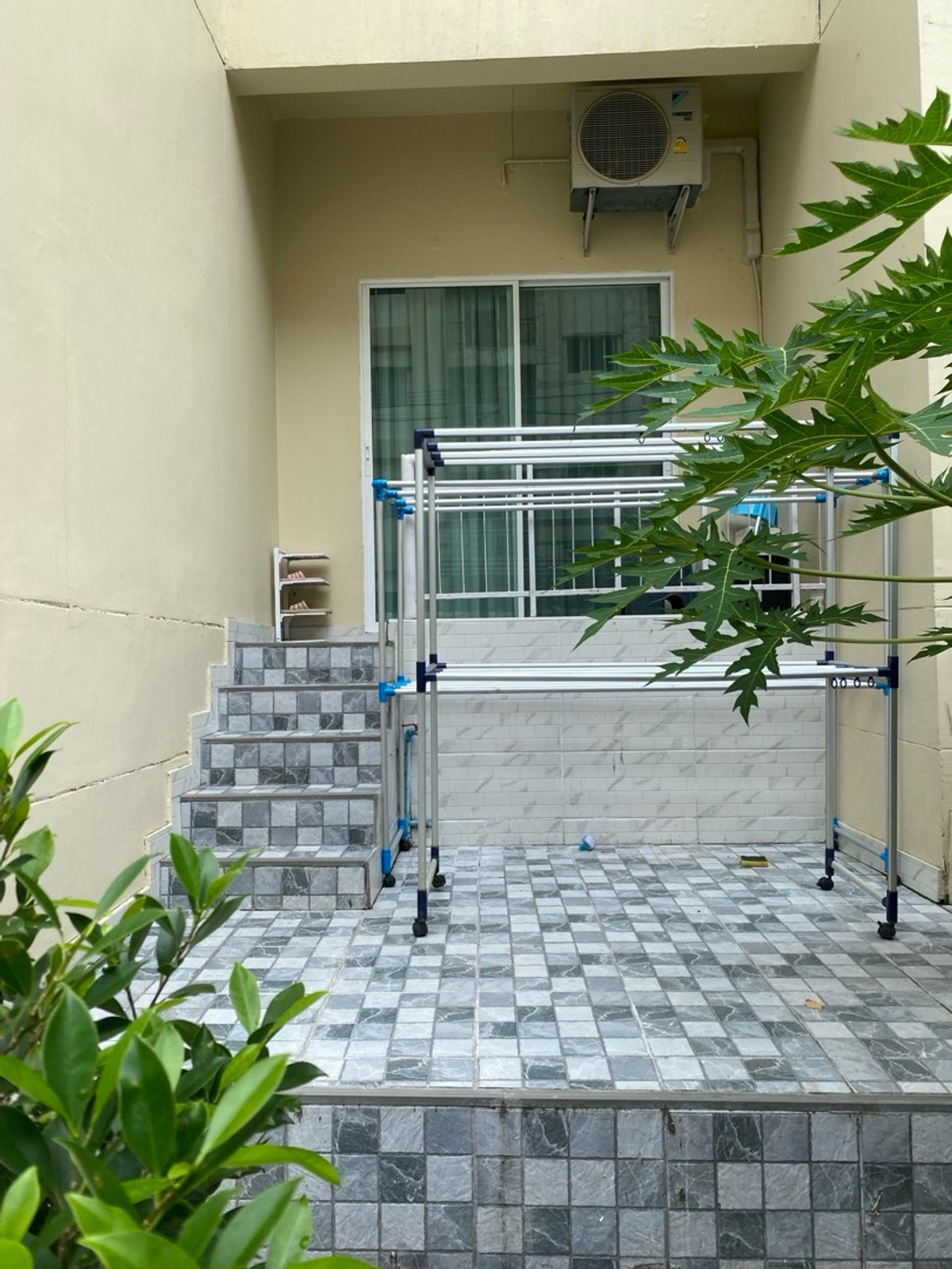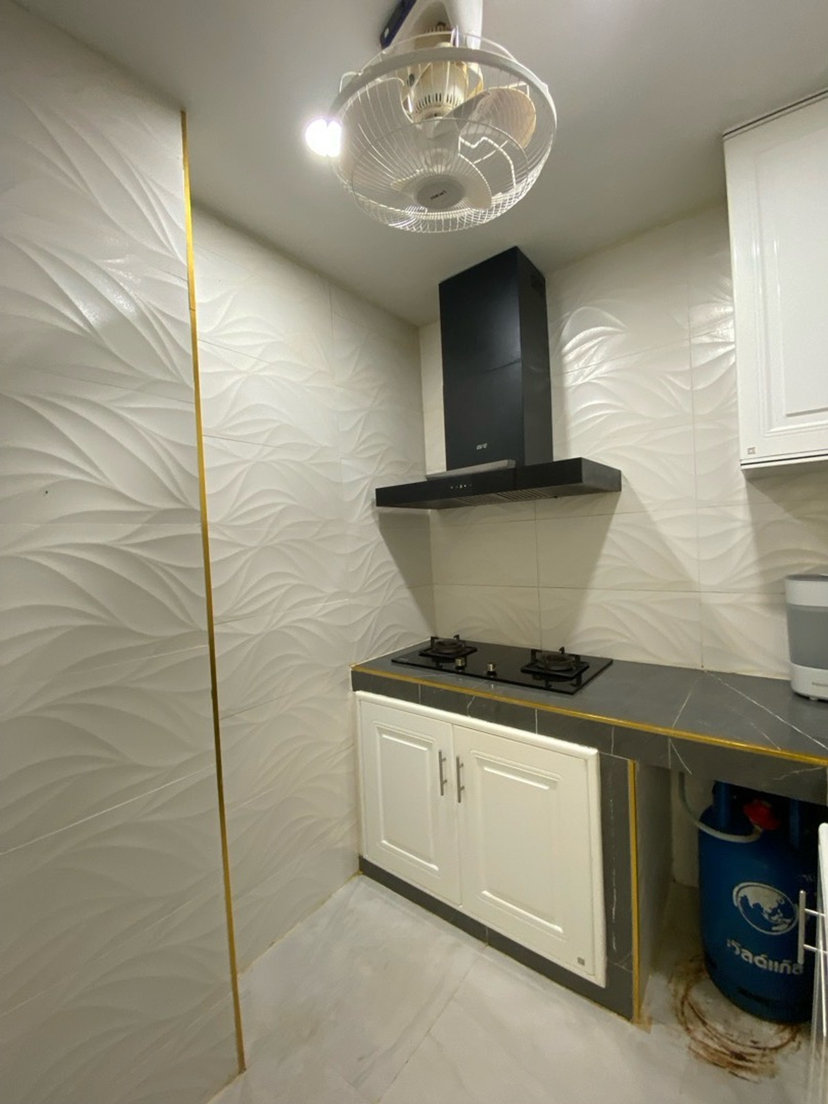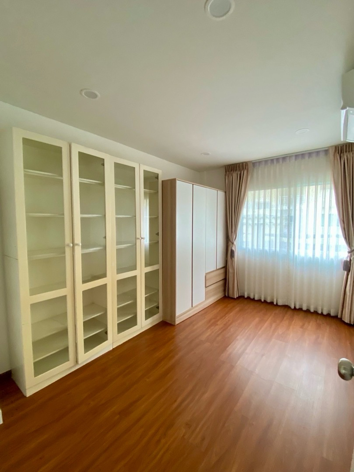 120 sq m condo near a shopping mall, 20 minutes from Suvarnabhumi Airport. Details: First floor condo with 3 bedrooms, 2 bathrooms, balcony and garden, and EV charging support. furniture included. Master bedroom bed and mattress Sofa Wardrobe 60-inch TV Washing machine and dryer system. Kitchen with stove and hood Refrigerator Air conditioning in all rooms Water heater Bathroom: Master bedroom has bathtub and shower Second bathroom with shower Pets friendly 4 parking is included