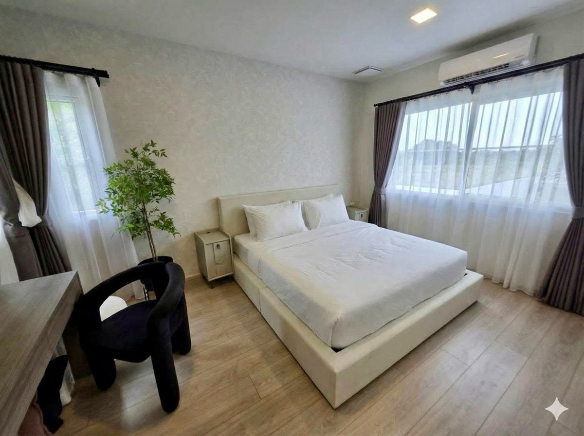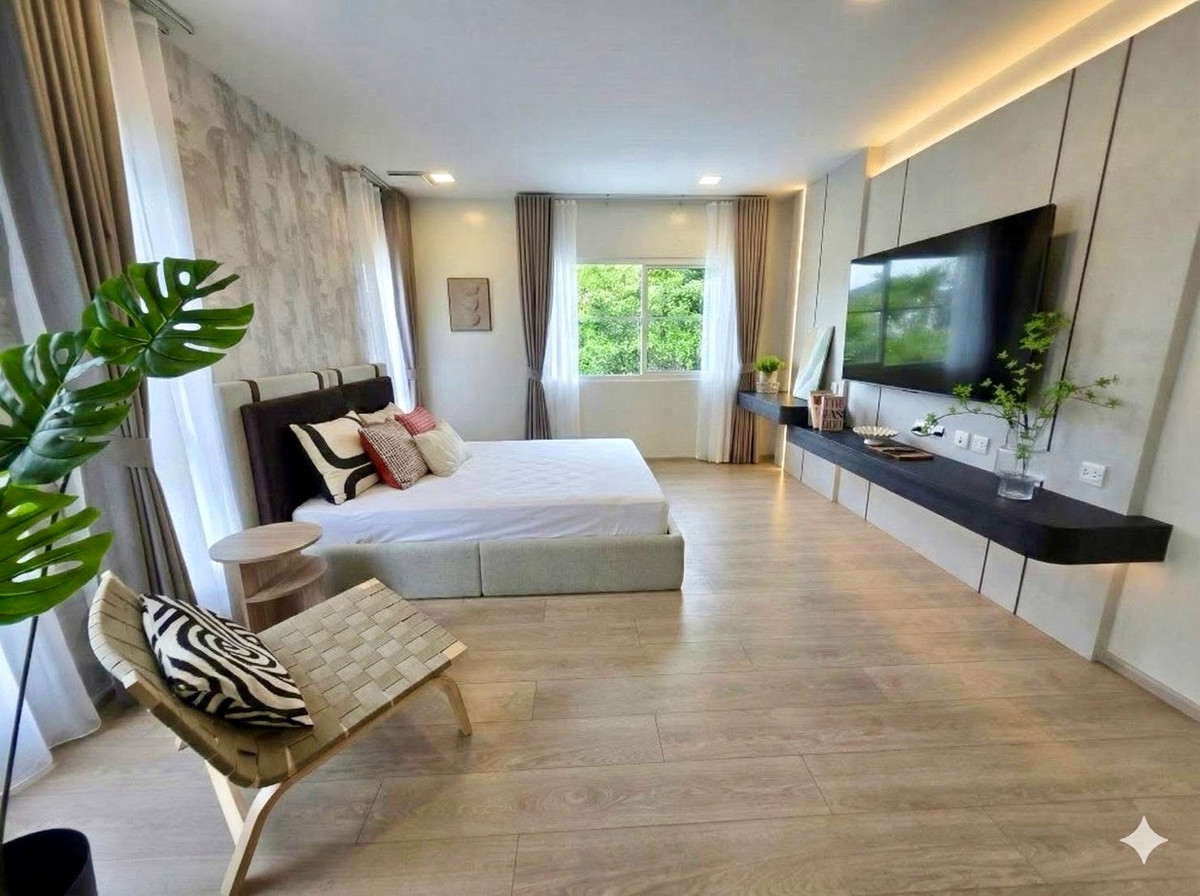 ✨For Rent: Detached House at Villaggio 3 Srinakarin–Bangna. Two storey featuring 5 bedrooms and 3 bathrooms. Prime Lakeside Corner Residence. Experience refined living in this exclusive two-storey detached residence, ideally positioned on a private corner plot in Phase 1, directly beside the lake. This is one of the largest units in the project, offering tranquil lake and garden views from the living room, home office, and master bedroom. Designed for comfort and privacy, the home features a north-facing orientation, ensuring a naturally cool ambiance throughout the day. The property is fully furnished with elegant, high-end décor and equipped with modern technology, making it perfectly suited for expatriates, executives, or international families seeking a premium lifestyle close to Mega Bangna. 🏡 Property Details • Two-storey detached house | North-facing • Prime lakeside corner unit (private) • Land area: 75.5 sq.w. • Usable area: 180 sq.m. (including maid’s room extension) • 5 bedrooms|3 bathrooms • Maid’s room with en-suite bathroom • Spacious open-plan living & dining area • Fully equipped kitchen • Shoe cabinet & storage area • Digital door lock • EV charger installed • Electric gate • Parking for 2 cars ✅ Fully Furnished with Premium Interior & Appliances • 2 Smart TVs (65" x 2) • 6 Air-conditioning units (installed in every room) • 3 Water heaters • Microwave | Oven | Electric stove | Dishwasher • Refrigerator • Washing machine & Dryer 🏊♂️ 🏋️ Facilities • Clubhouse | Fitness | Swimming pool | Garden | 24-hour security 📌Nearby Landmarks • Mega Bangna & IKEA Bangna •Concordian International School • Easy access to Srinakarin Road & Bangna–Trat Road •The Glass Market Bangna 💼 Rental Conditions Rental Fee : 95,000 THB/month (Including common area fee, garden maintenance, and air-conditioner cleaning twice a year) ✅ 2-month security deposit+ 1 month advance rental fee ✅ Minimum 1-year contract 📞For viewing & inquiries: D-Living (Agent) Tel: Contact number Line ID: Dlivingproperty 👉Click to add us on Line https://line.me/ti/p/ZL-t96Ar4K
