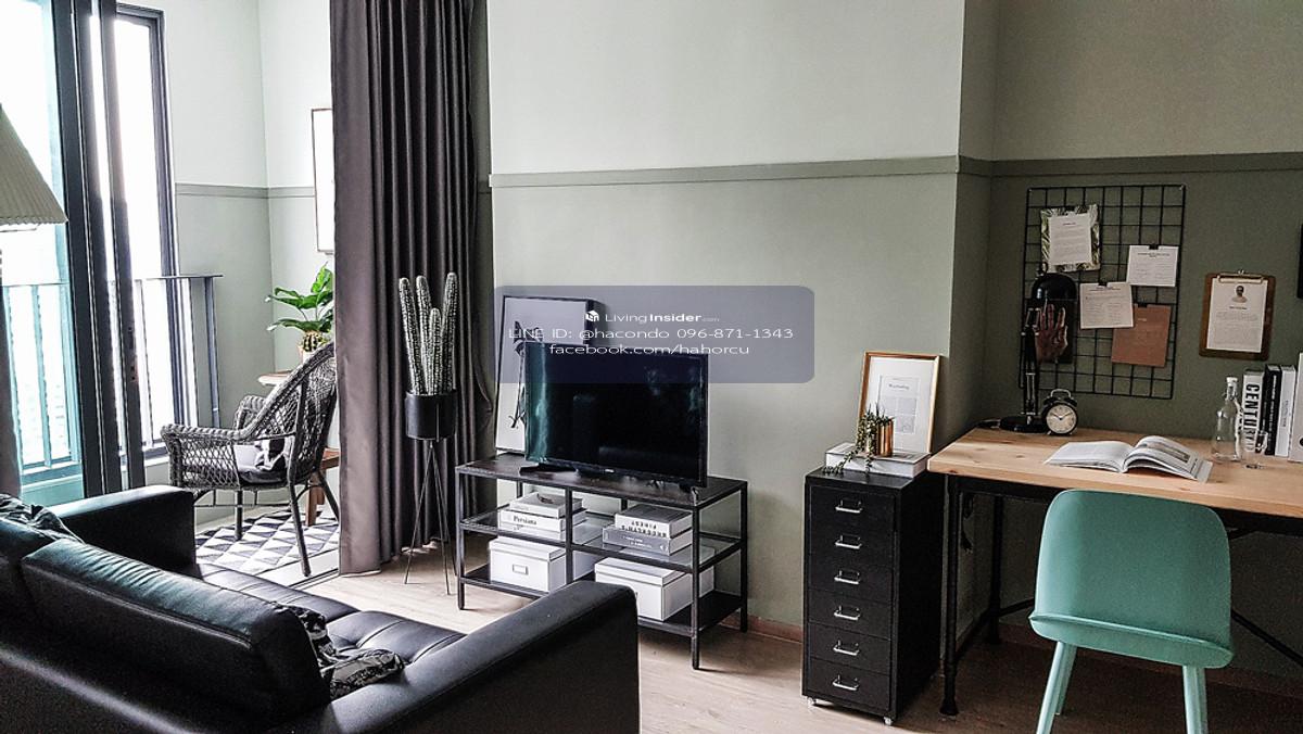 Ideo Q Chula Samyan【𝐑𝐄𝐍𝐓】🔥A minimalist-style room with a clean, sharp design and perfectly placed built-in furniture, creating a tidy and comfortable atmosphere.🔥 Contact Line ID: @hacondo